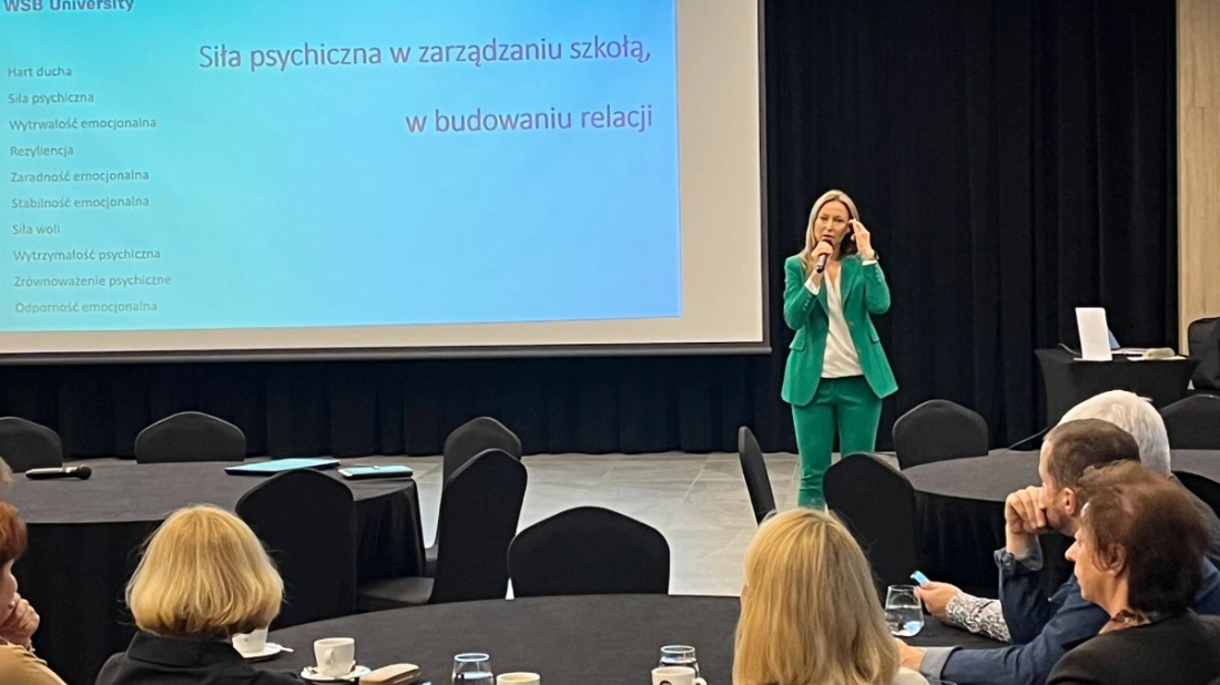 Podczas swojego wystąpienia dr Edyta Nowak-Zółty zaprezentowała wykład pt. „Budowanie relacji i siła psychiczna w codziennym kierowaniu szkołą: praktyczne wsparcie dla liderów edukacji”. Prelekcja spotkała się z dużym zainteresowaniem uczestników, a poruszane zagadnienia odpowiadały na aktualne potrzeby środowiska oświatowego.