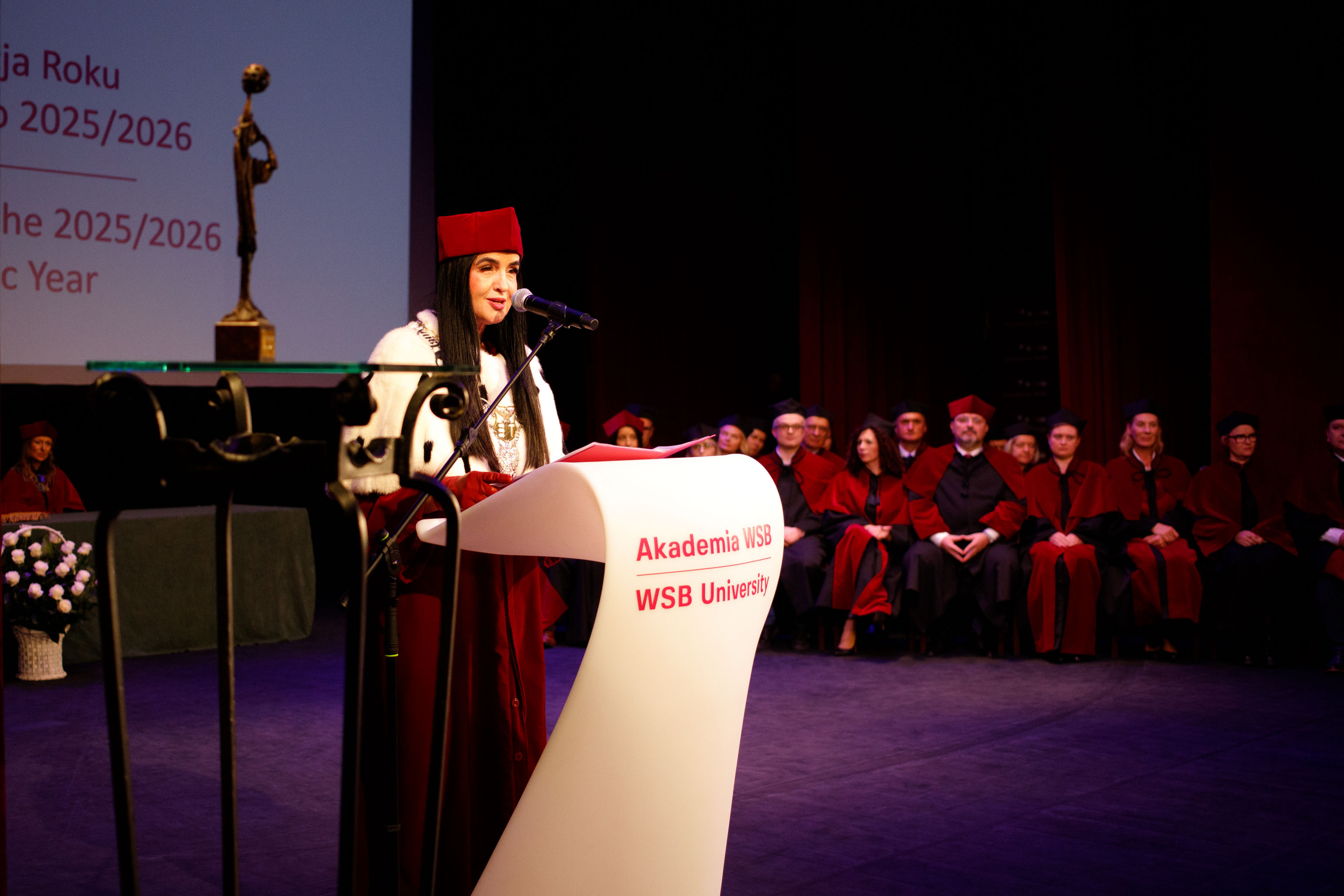 Inauguracja w Cieszynie to nie tylko akademicki rytuał, ale także święto wspólnoty tworzonej przez studentów, wykładowców i partnerów Akademii WSB. Uroczystość rozpoczęła się od wykonania hymnu – „Gaudeamus Igitur” i wystąpienia inauguracyjnego Jej Magnificencji Rektor Prof. Zdzisławy Dacko-Pikiewicz, która w swoim przemówieniu inauguracyjnym podkreśliła znaczenie kształcenia opartego na wartościach, otwartości i innowacyjności. Wskazała także, że Akademia WSB – dzięki współpracy z partnerami samorządowymi, naukowymi i biznesowymi – konsekwentnie buduje przestrzeń do rozwoju studentów i całego regionu.