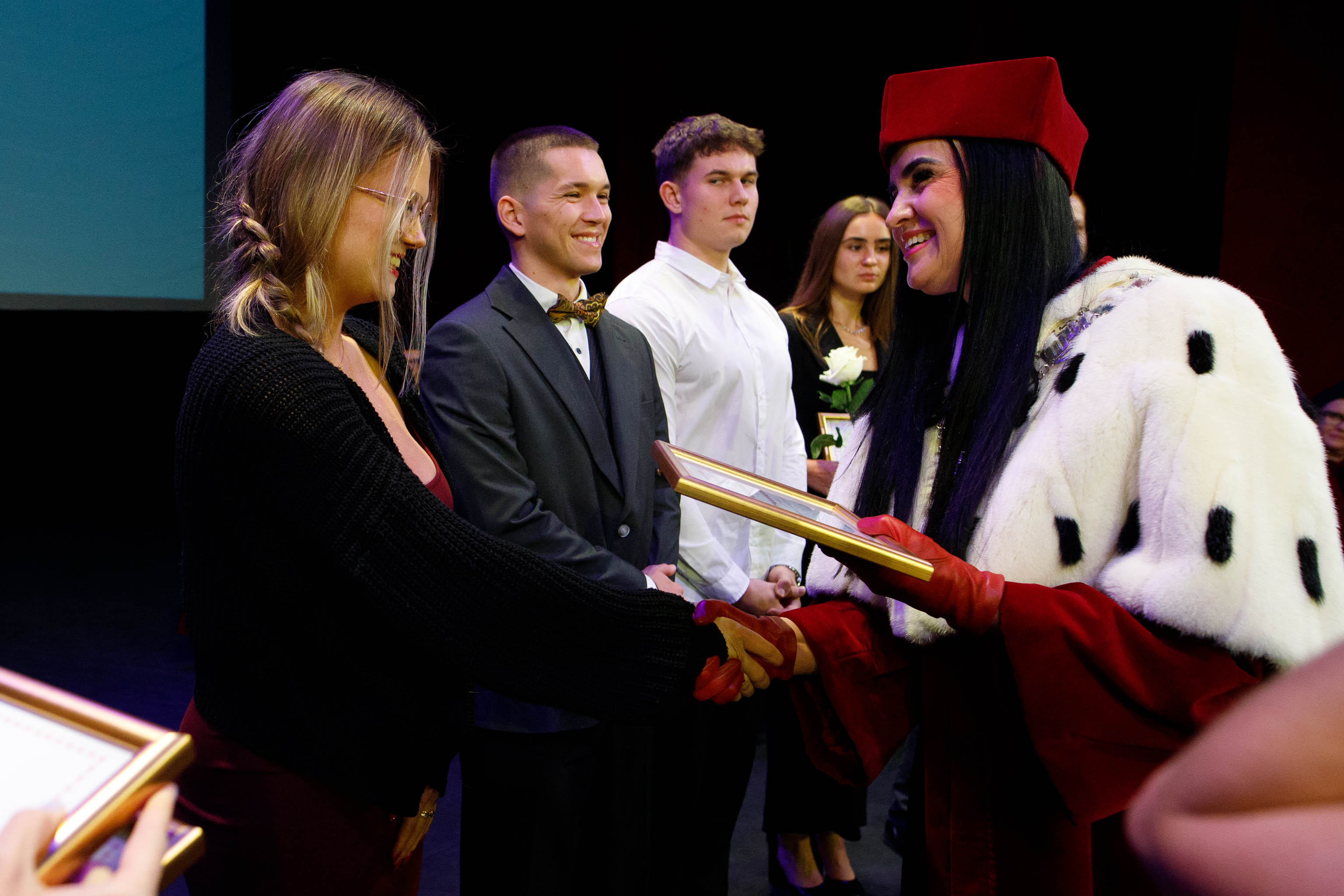 Podczas inauguracji wręczono liczne nagrody i wyróżnienia, którymi uhonorowano osoby szczególnie zaangażowane w życie naukowe, dydaktyczne i organizacyjne Akademii WSB.