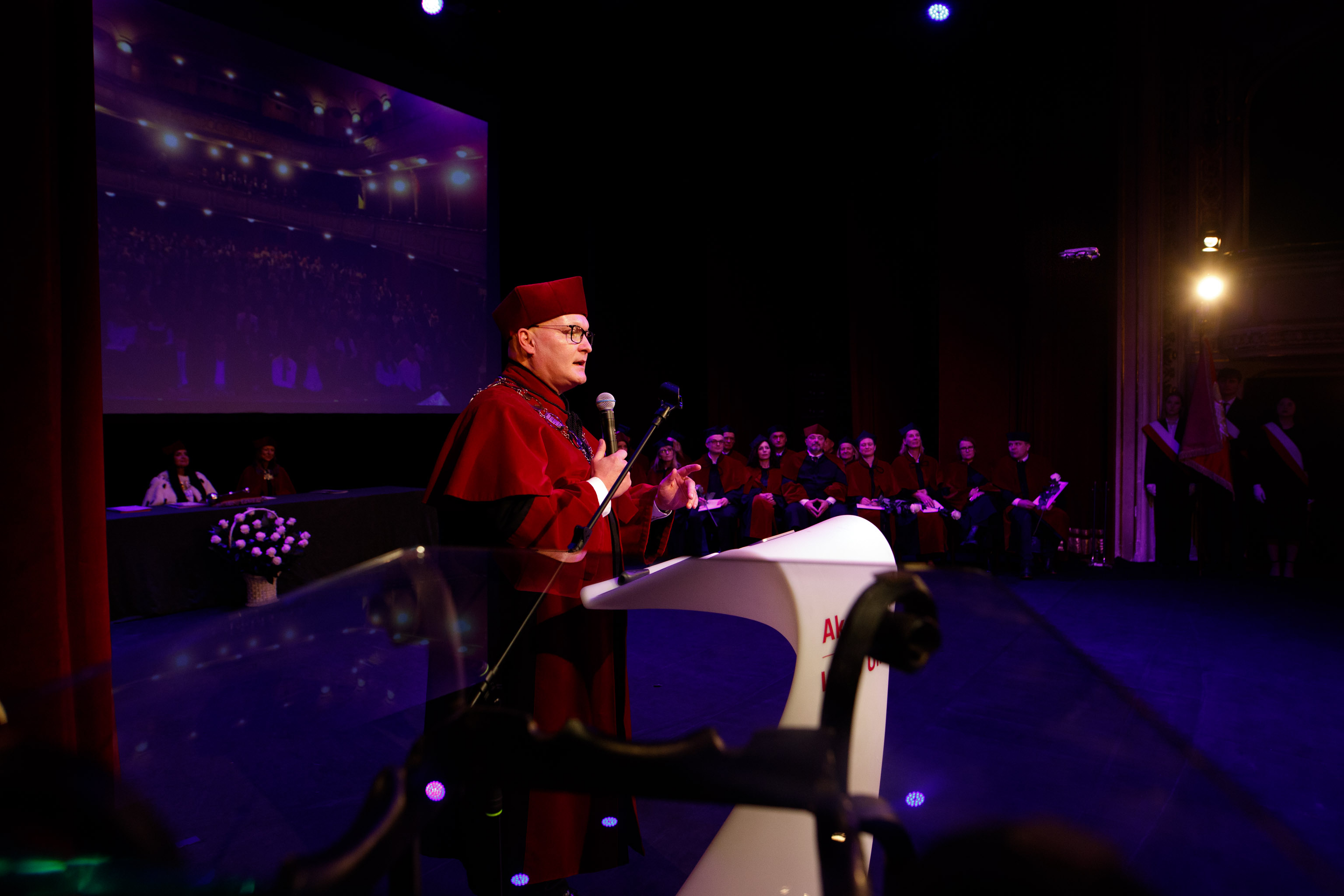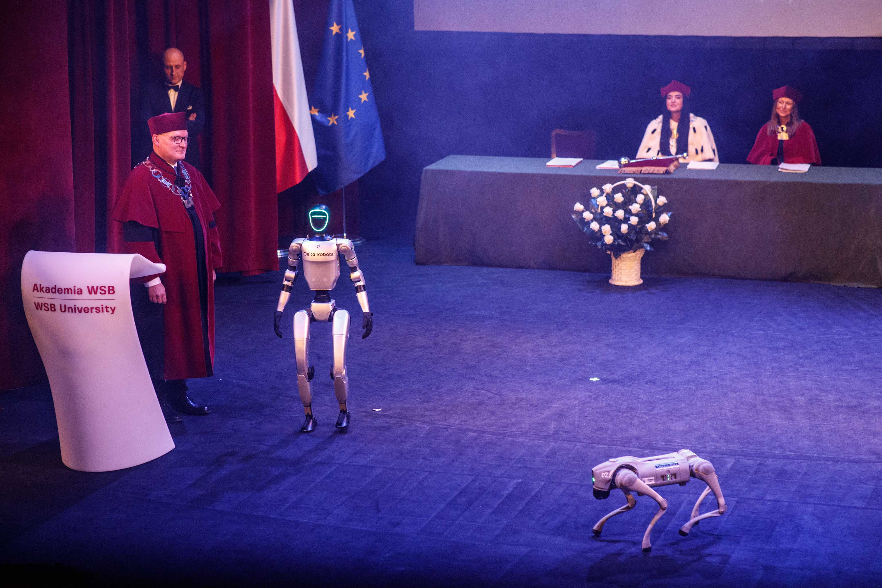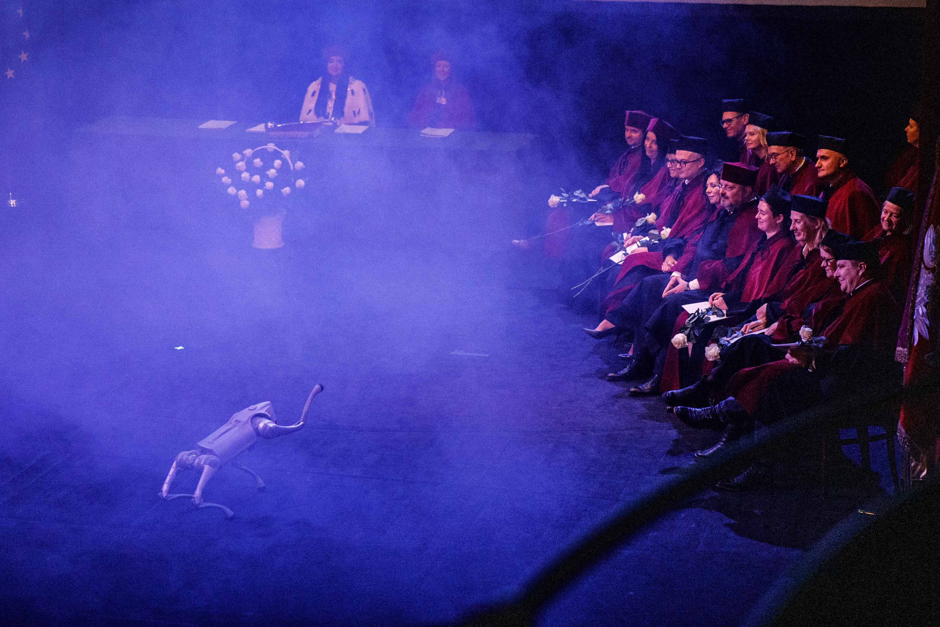 Uroczystość zwieńczył spektakularny wykład inauguracyjny prof. Marcina Lisa pt. „Fascynujący świat sztucznej inteligencji”, który przybliżył słuchaczom wyzwania i szanse, jakie niesie rozwój technologii AI w kontekście edukacji i przyszłości rynku pracy. Uczestnicy na własne oczy poznali możliwości robotów i technologii dronowych a wyjątkowa oprawa wykładu z pewnością zapadnie uczestnikom uroczystości w pamięć