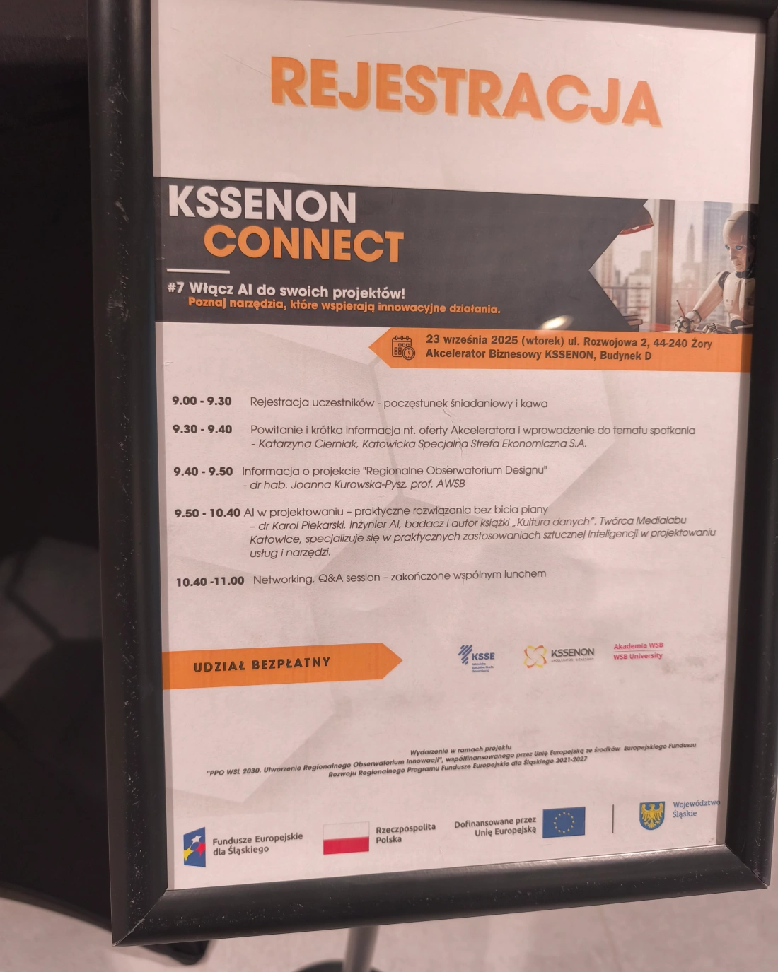 W drugiej części spotkania odbył się warsztat ekspercki pt. „AI w projektowaniu – praktyczne rozwiązania bez bicia piany”, który przeprowadził dr Karol Piekarski - niezależny badacz, inżynier AI i analityk danych.