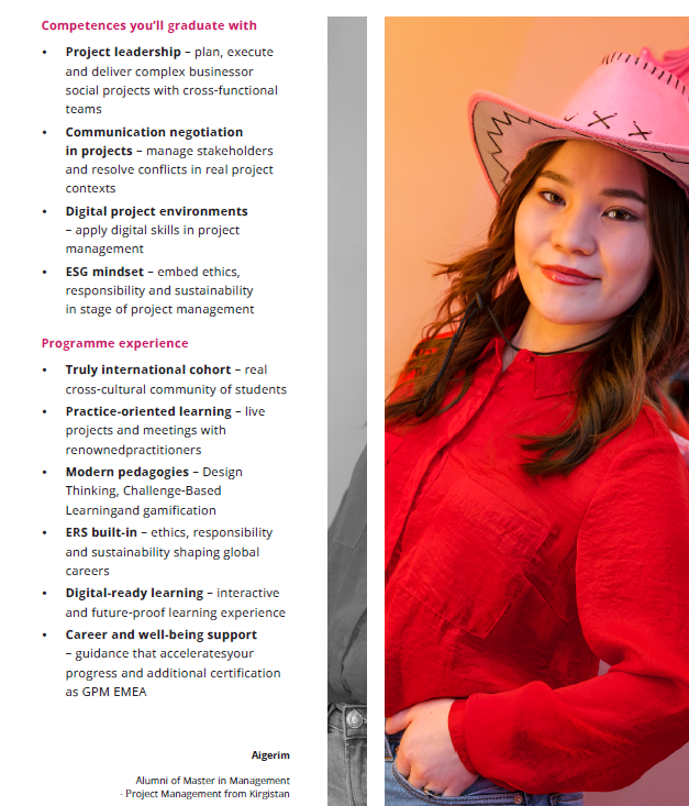 Content within specialization: project planning and organizing, communication and negotiations in project management, IT support for project management, project management methodologies and models, project economic analysis, risk management in project.