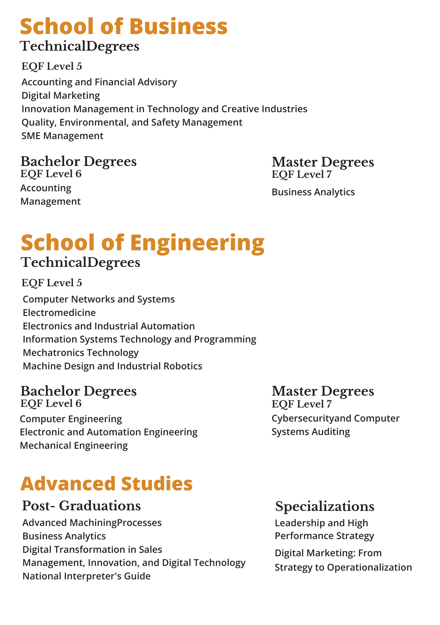 - Industrial Careers: Managing Industrial Production (pending accreditation)