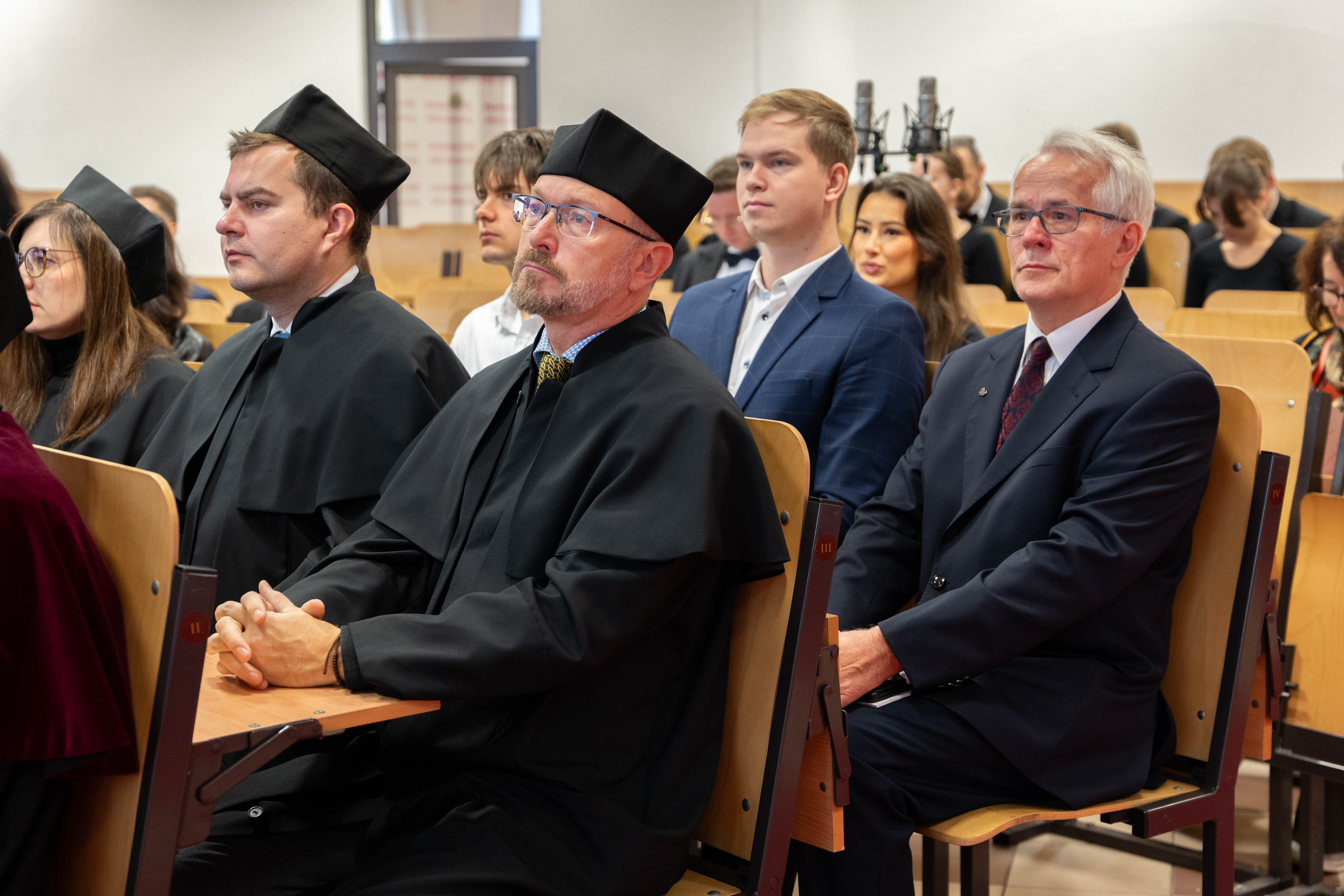 The ceremony was opened by Prof. Łukasz Sułkowski, President of the WSB University, who welcomed Professor Fisher and his wife, as well as the assembled guests. The diploma text was read and the diploma was presented by Prof. Katarzyna Szczepańska-Woszczyna, Vice-Rector for Science and Education at the WSB University. During the ceremony, the audience listened to laudations and reviews highlighting Prof. Fisher’s scientific achievements and his profound impact on the advancement of modern medicine.