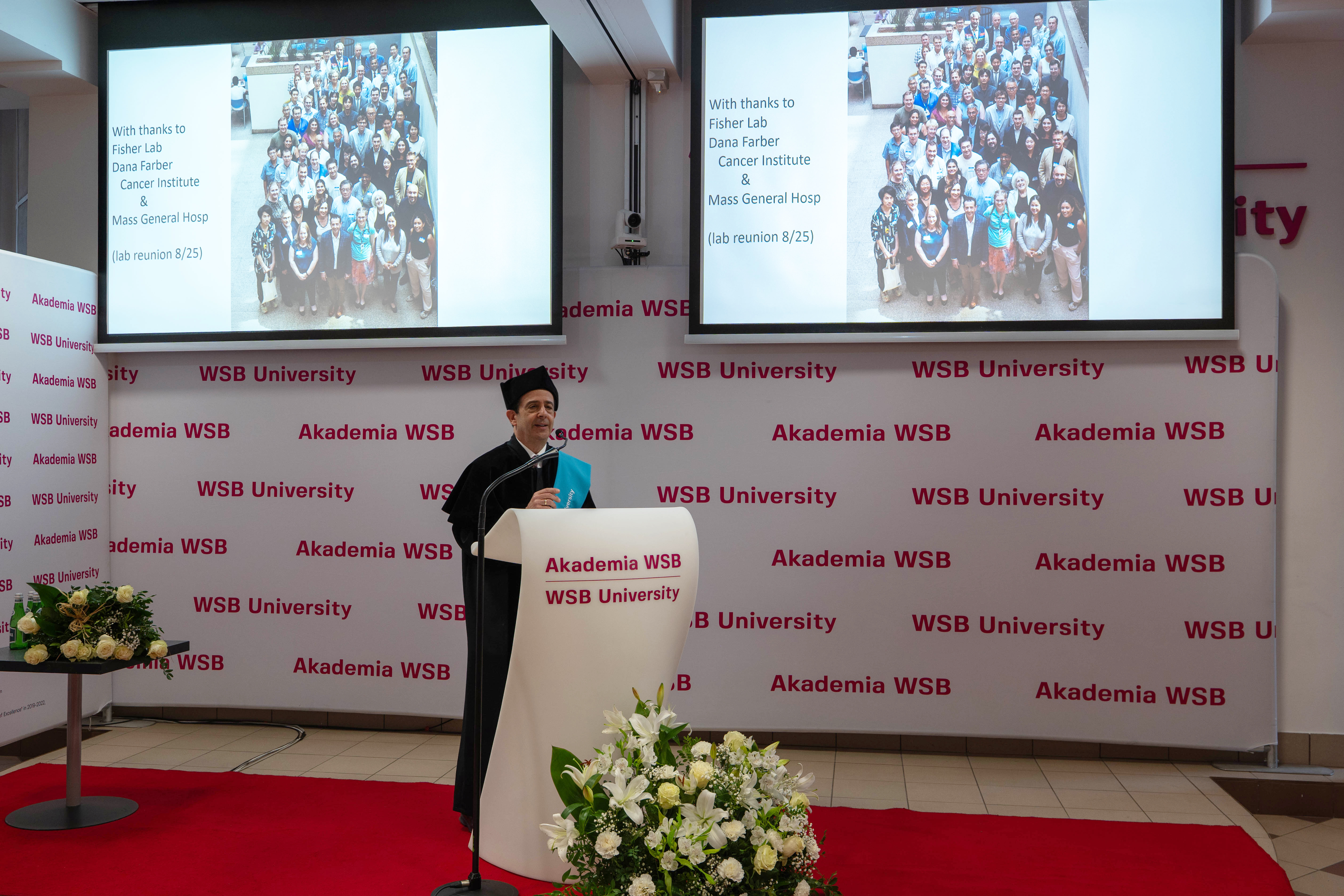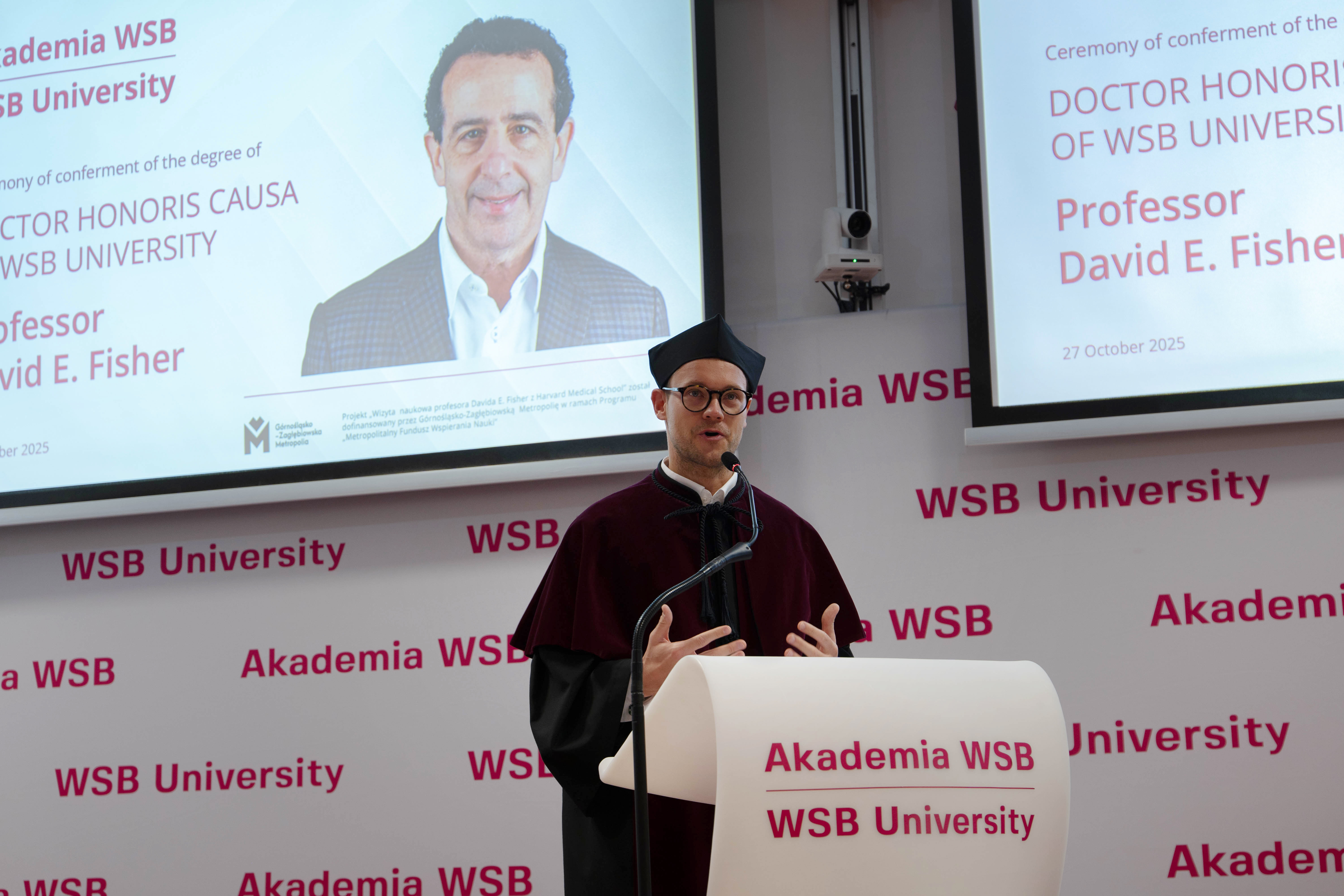 A ceremony was held at the WSB University to confer the title of Doctor Honoris Causa of the WSB University upon Professor David E. Fisher of Harvard Medical School – a distinguished scholar, physician, and researcher of international renown.
