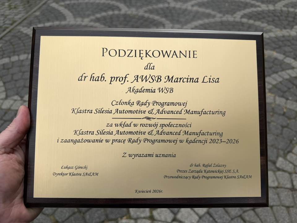 Prof. Marcin Lis, Prorektor ds. Studenckich i Współpracy z Otoczeniem Akademia WSB, został wybrany do Rady Programowej Klastra Silesia Automotive & Advanced Manufacturing na lata 2026–2029. To kontynuacja jego zaangażowania w rozwój jednego z najważniejszych środowisk współpracy przemysłowej w Polsce.