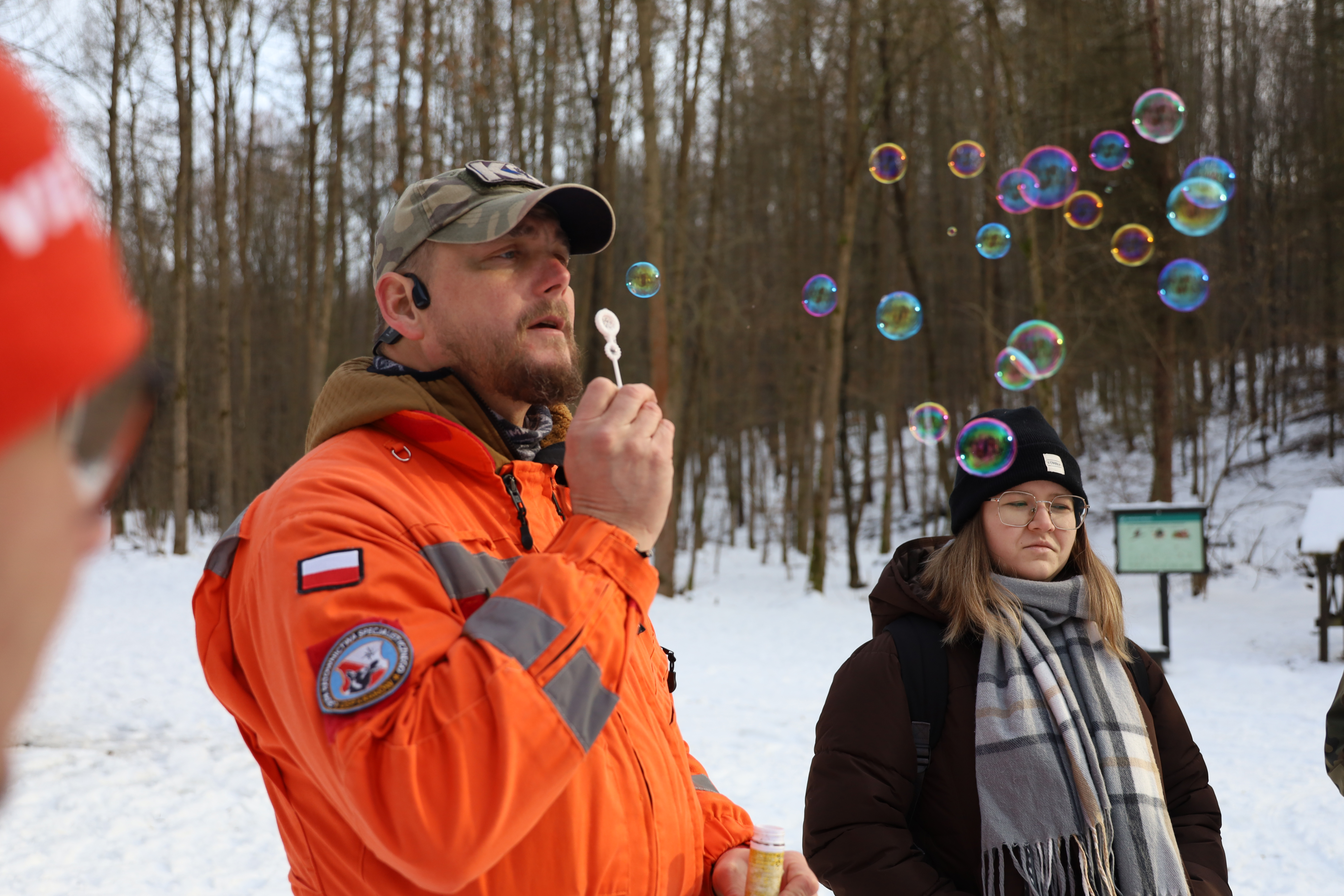 Za część praktyczną związaną bezpośrednio z poszukiwaniami osób zaginionych odpowiadał Paweł Kremer, który wraz z zaprzyjaźnionymi przedstawicielami OSP GRS Kraków, w tym przewodnikiem psów poszukiwawczych, przeprowadził realistyczną symulację działań w terenie otwartym.