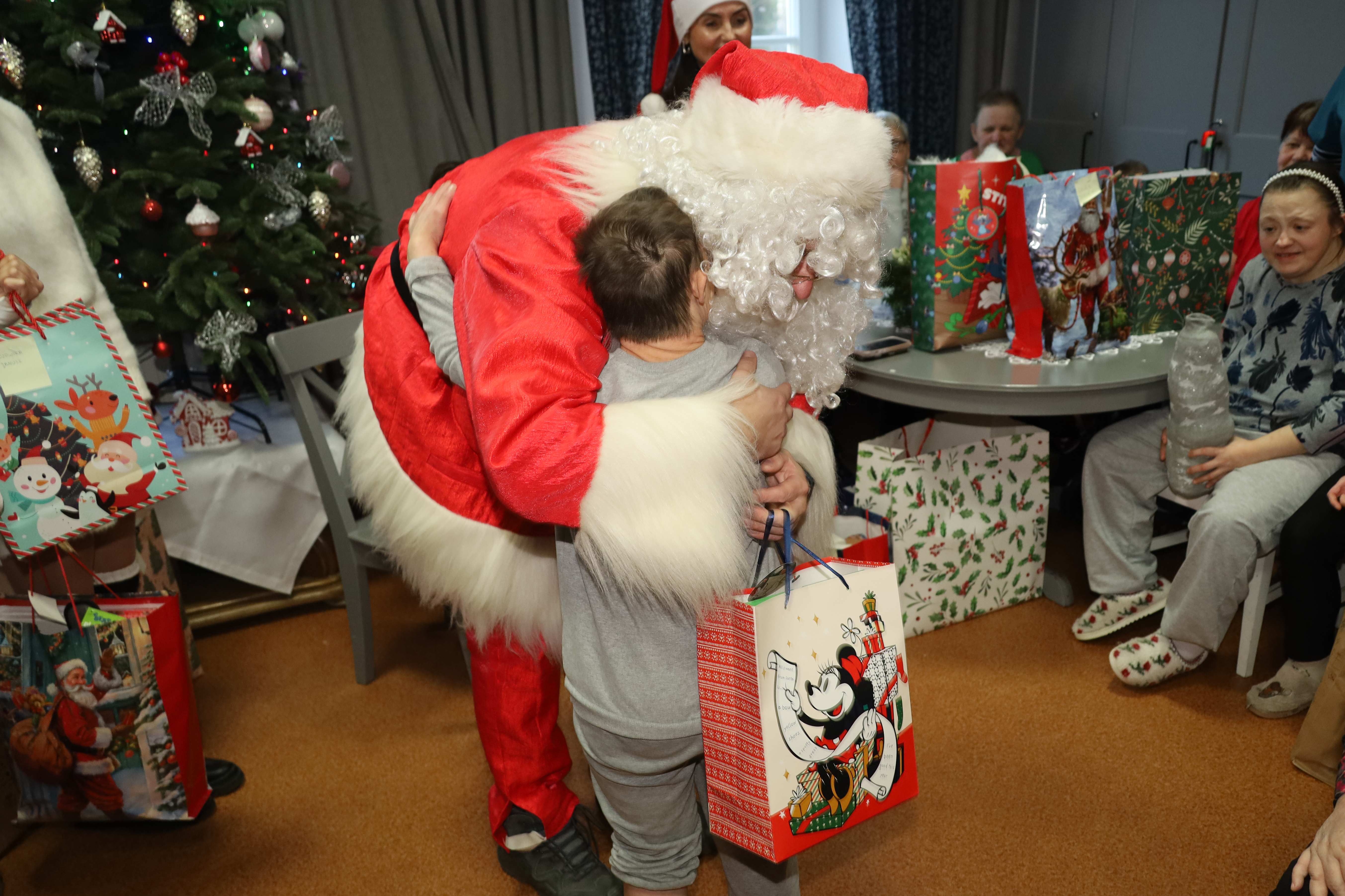 Centralną postacią wydarzenia był Święty Mikołaj wraz ze swoimi pomocnikami – aniołami i elfami. Ich obecność wywoływała u mieszkańców wiele radości i wzruszeń. Odwiedzając kolejne sale i przemierzając korytarze placówek, wręczaliśmy prezenty, rozmawialiśmy z pensjonariuszami oraz przekazywaliśmy im serdeczne, świąteczne życzenia, tworząc atmosferę ciepła, bliskości i życzliwości.