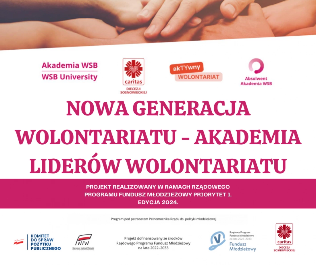 Projekt „Nowa Generacja Wolontariatu – Akademia Liderów Wolontariatu” to kompleksowa inicjatywa realizowana przez Stowarzyszenie Absolwentów i Studentów Akademii WSB we współpracy z Caritas Diecezji Sosnowieckiej , której celem jest rozwój postaw wolontariackich, społecznych i liderskich wśród młodych ludzi.