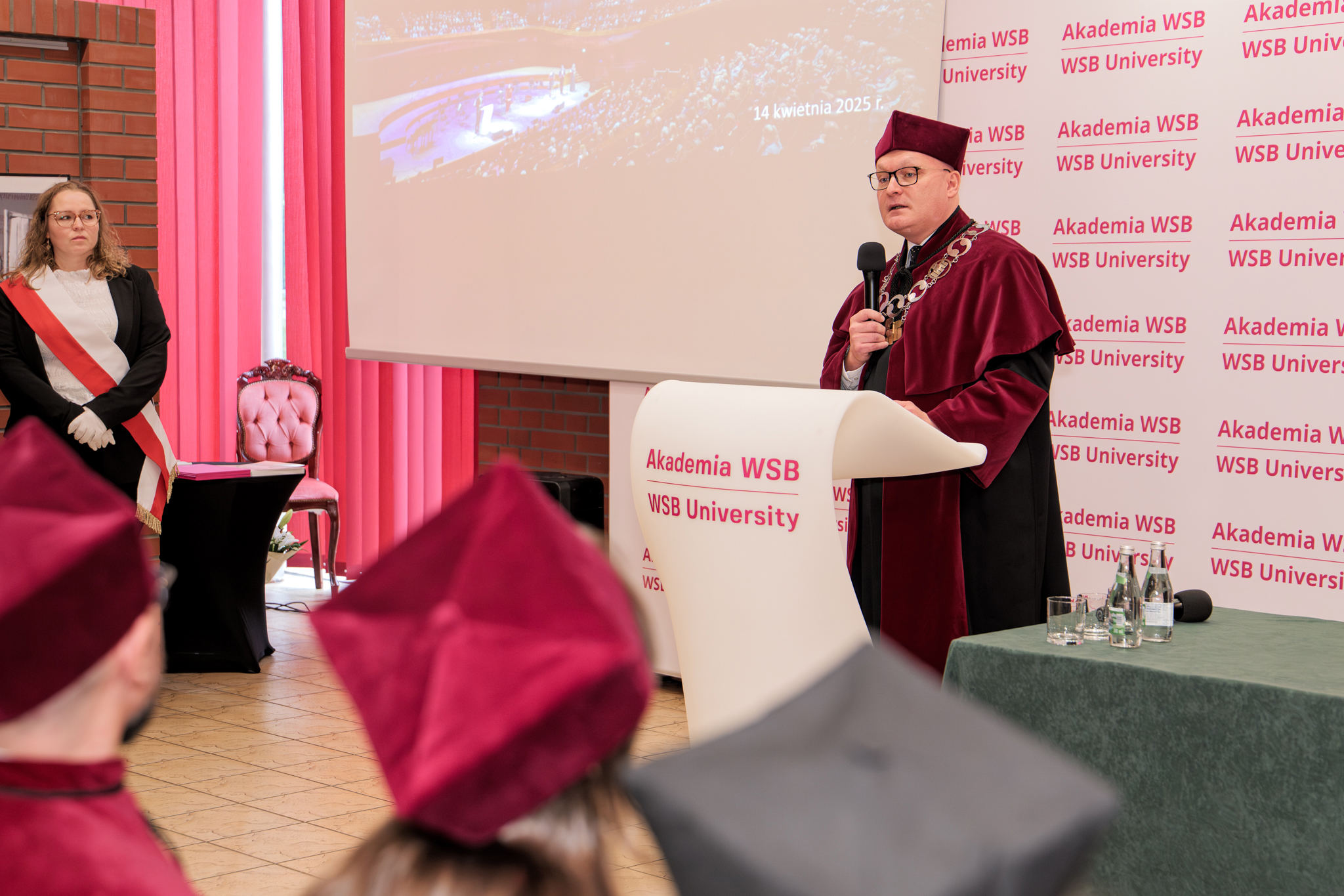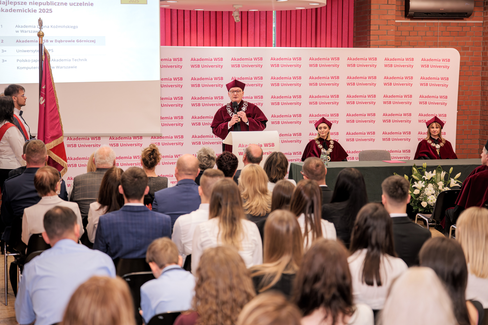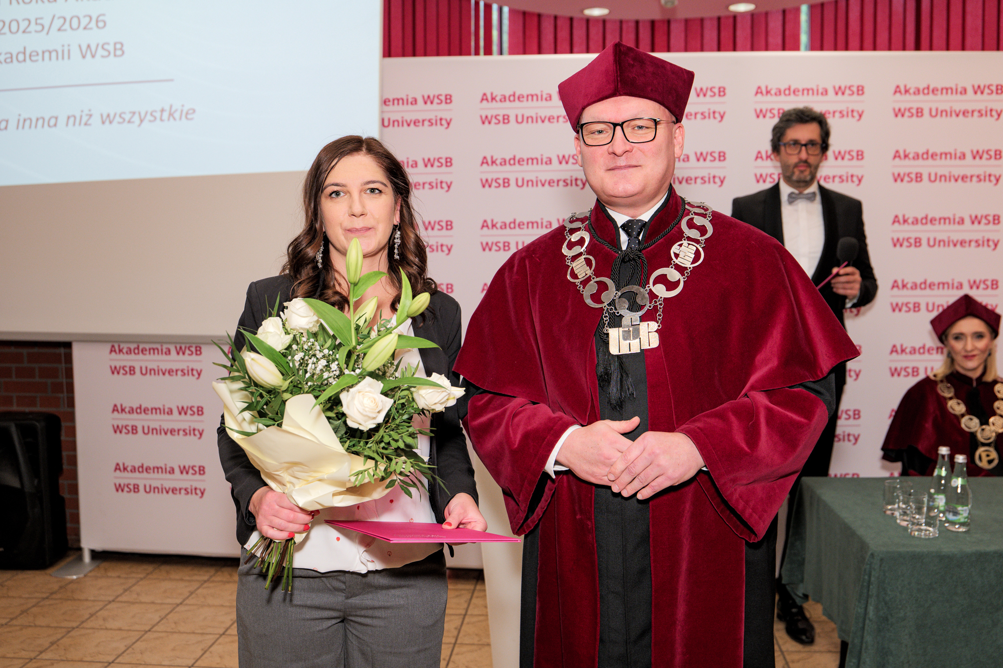 Zwieńczeniem uroczystości był wykład inauguracyjny prof. dr hab. Moniki Bąk-Sosnowskiej, Dyrektor Centrum Psychosomatyki i Profilaktyki Zdrowotnej Akademii WSB, pt. „Mistrzostwo osobiste: fundament lidera XXI wieku. Jak zarządzać sobą, by skutecznie przewodzić innym i osiągać to, co naprawdę ważne”. Inspirujące wystąpienie spotkało się z dużym zainteresowaniem uczestników i stanowiło wartościowe zakończenie uroczystości.