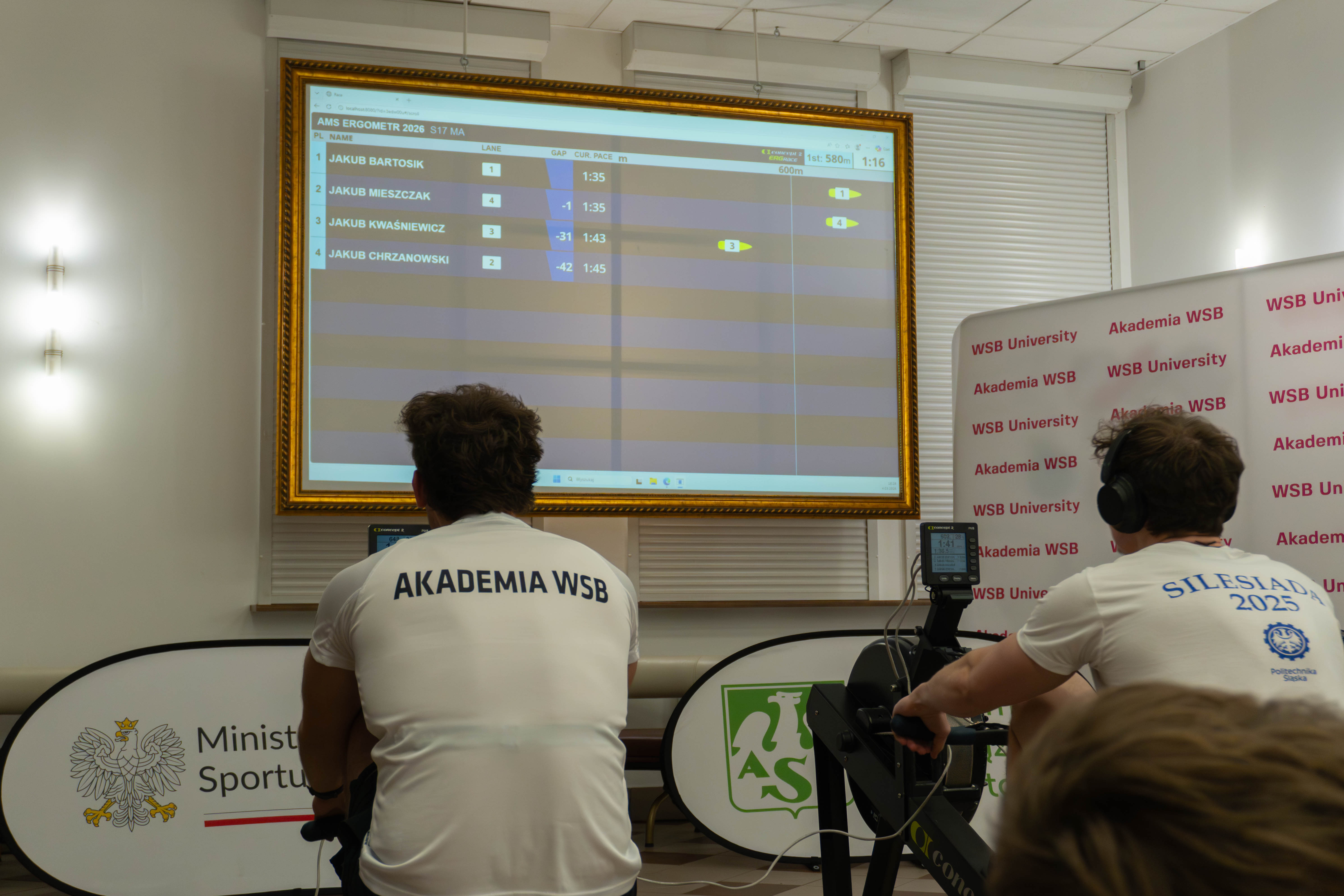 W dniu 04.03.2026r. w Akademii WSB odbyły się zawody Akademickich Mistrzostw Śląska w ergometrze wioślarskim.