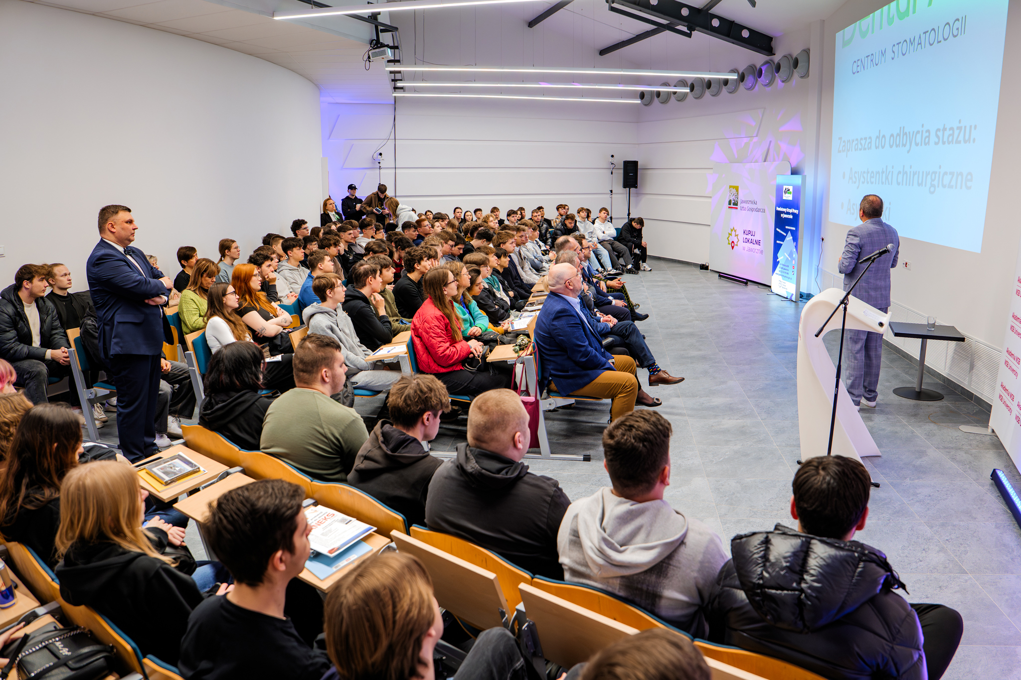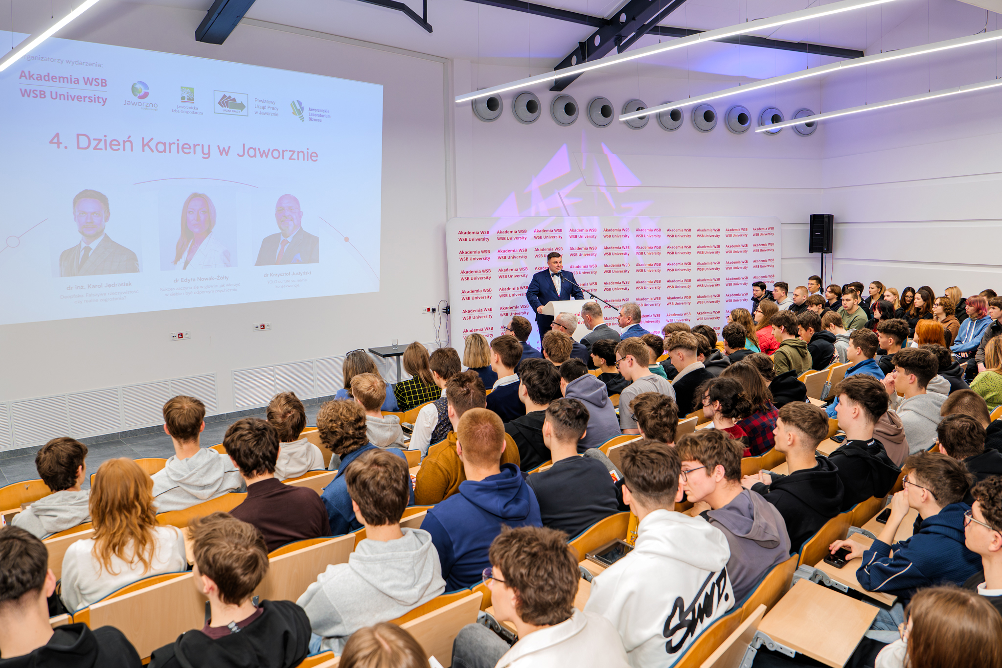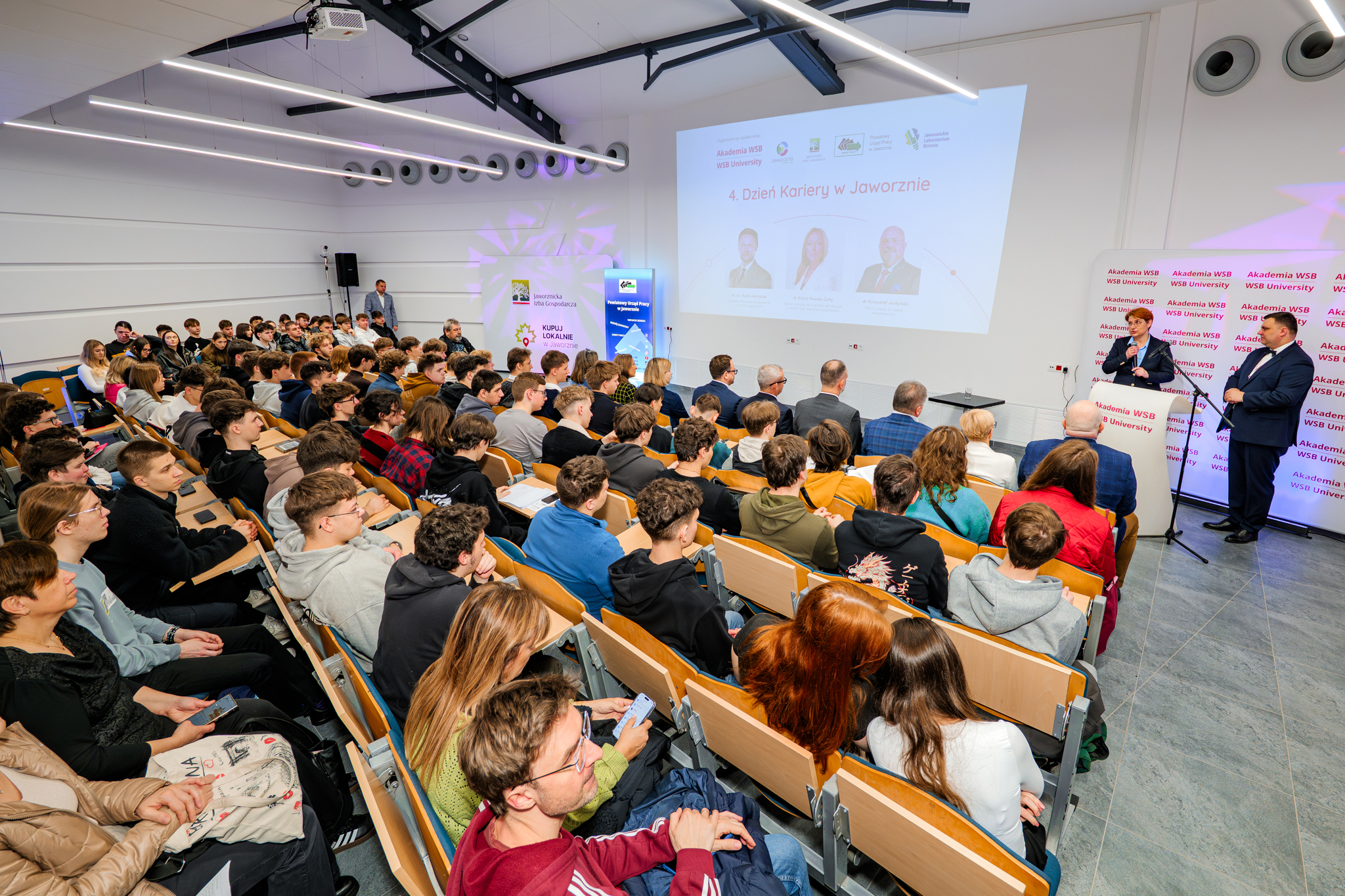 Uroczystość zainagurowali przedstawiciele Akademii WSB oraz zaproszeni goście. Wśród nich znaleźli się: Bożena Garbocz i Dominik Penar – Prodziekani ds. Rozwoju Akademii WSB, Łukasz Kolarczyk - Zastępca Prezydenta Miasta Jaworzna, Łukasz Curyło - Dyrektor Powiatowego Urzędu Pracy w Jaworznie oraz Mateusz Łętowski - Prezes Jaworznickiej Izby Gospodarczej.