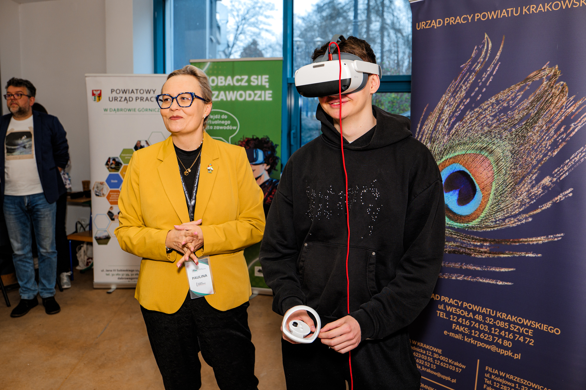 Szczególnym zainteresowaniem cieszyła się strefa VR przygotowana przez Powiatowy Urząd Pracy w Jaworznie we współpracy z partnerami z Dąbrowy Górniczej i powiatu krakowskiego. Dzięki goglom VR uczestnicy mogli „wejść” w różne role zawodowe i sprawdzić, które z nich są im najbliższe.