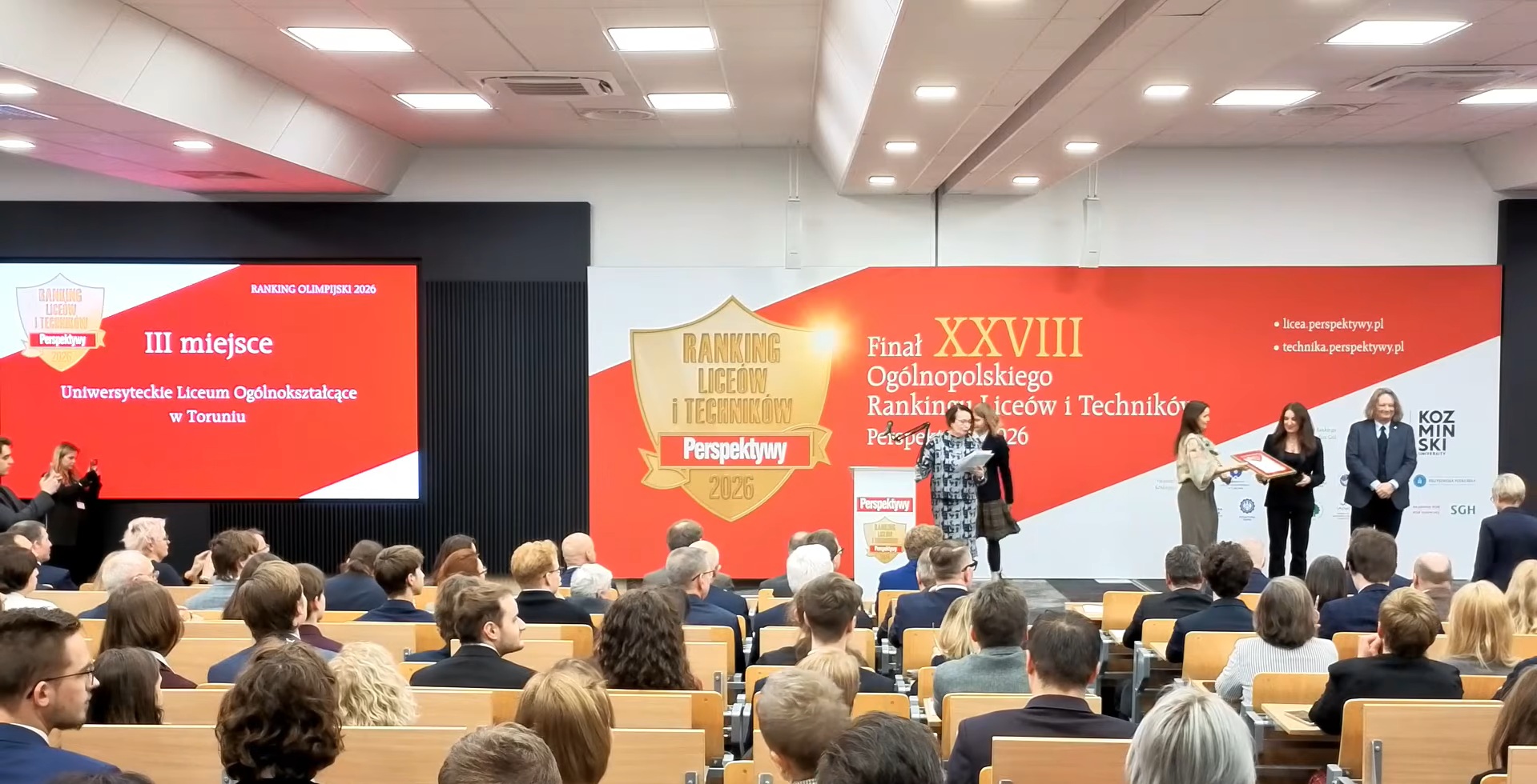 Naszą uczelnię reprezentowała dr hab. Katarzyna Szczepańska-Woszczyna, prof. AWSB, Prorektor ds. Nauki i Kształcenia, która jako przedstawicielka partnera rankingu olimpijskiego pogratulowała najlepszym szkołom w Polsce oraz zaprosiła ich absolwentów do kontynuowania edukacji w Akademii WSB.