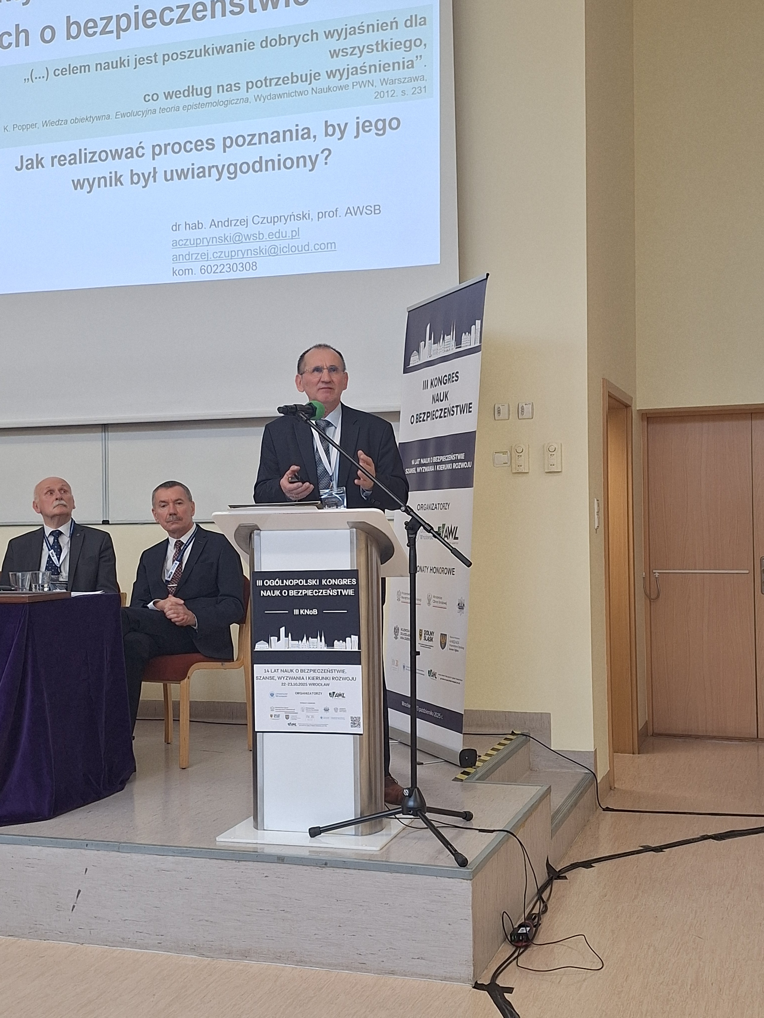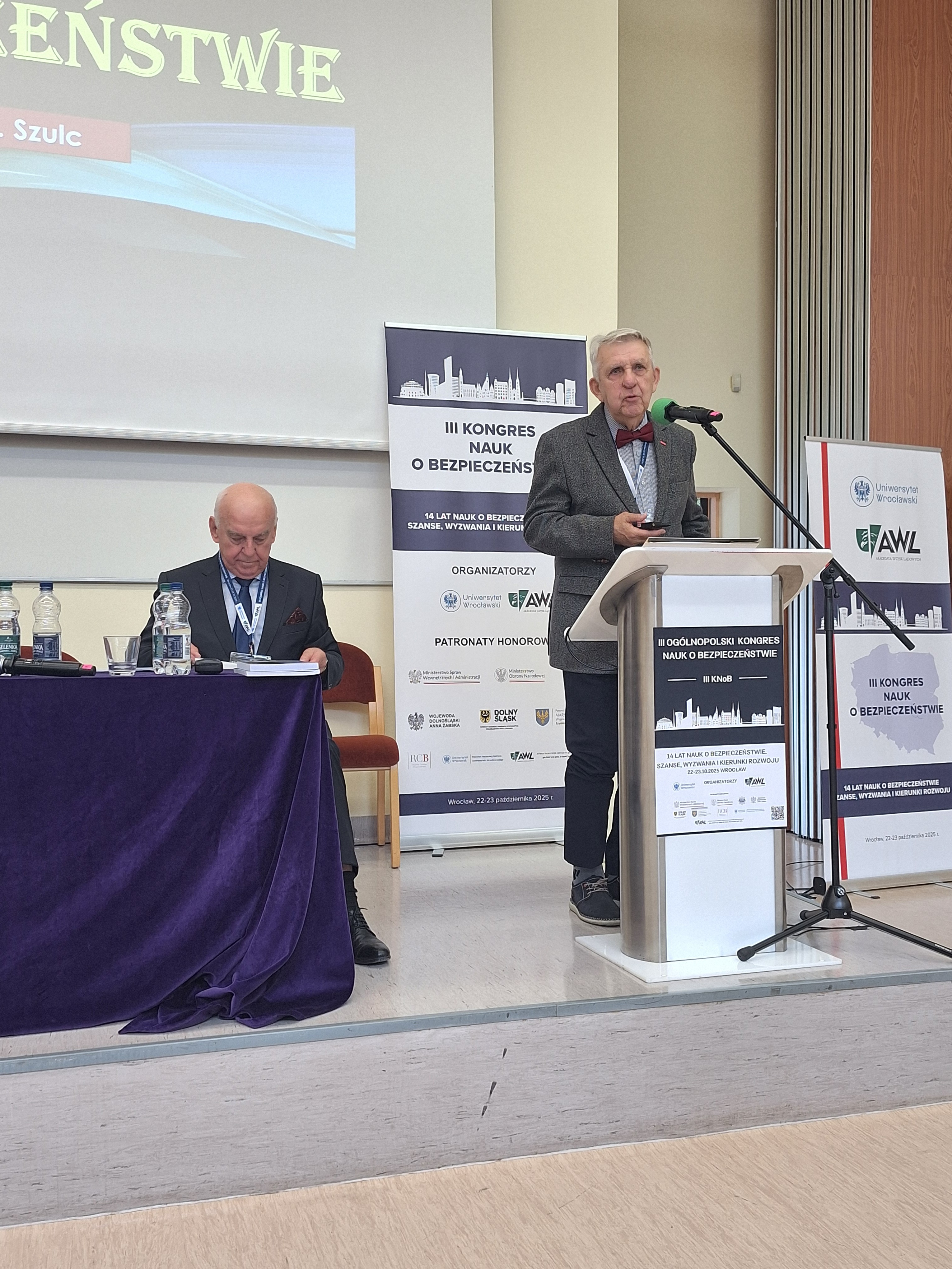 Podczas Kongresu przedstawiciele Akademii WSB, w imieniu Rektor – dr hab. Zdzisławy Dacko-Pikiewicz, prof. AWSB – wręczyli statuetkę „Edukator dla bezpieczeństwa 2025” prof. dr. hab. Jackowi Pawłowskiemu. Wyróżnienie to przyznano za wybitne osiągnięcia w badaniach nad bezpieczeństwem oraz za działania upowszechniające wiedzę naukową w tym obszarze.
