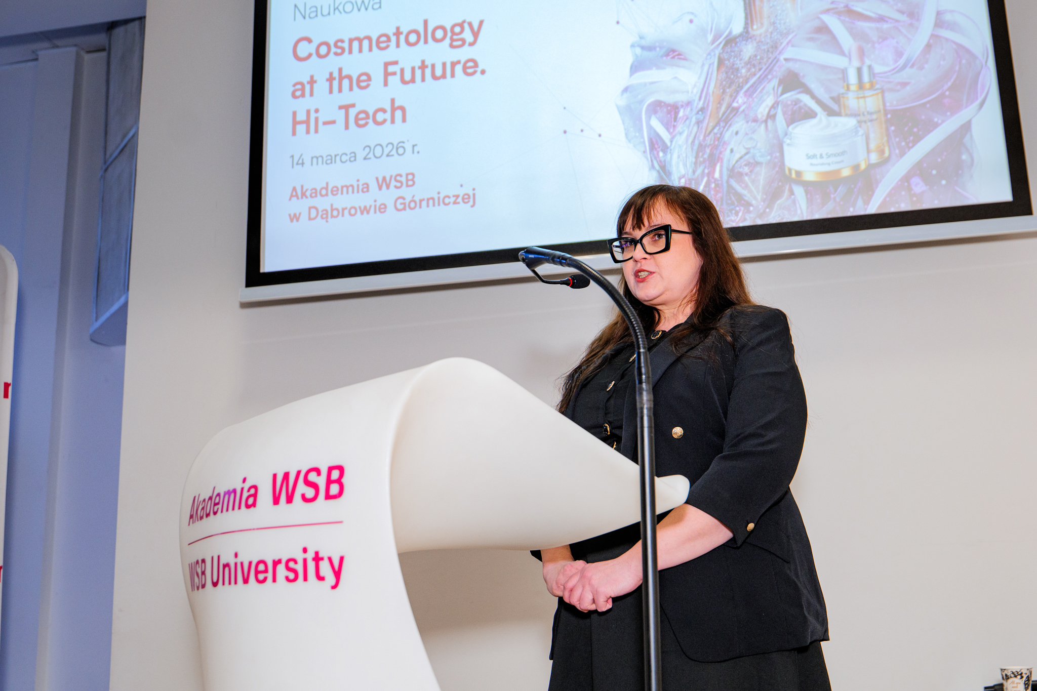 W dniu 14 marca br. w Akademii WSB odbyła się V Konferencja Naukowa „Cosmetology of the Future. Hi-Tech”, poświęcona najnowszym trendom, technologiom oraz wyzwaniom współczesnej kosmetologii. Wydarzenie zgromadziło ekspertów, praktyków branży beauty, przedstawicieli środowiska naukowego, studentów oraz osoby zainteresowane rozwojem nowoczesnych metod terapii skóry.