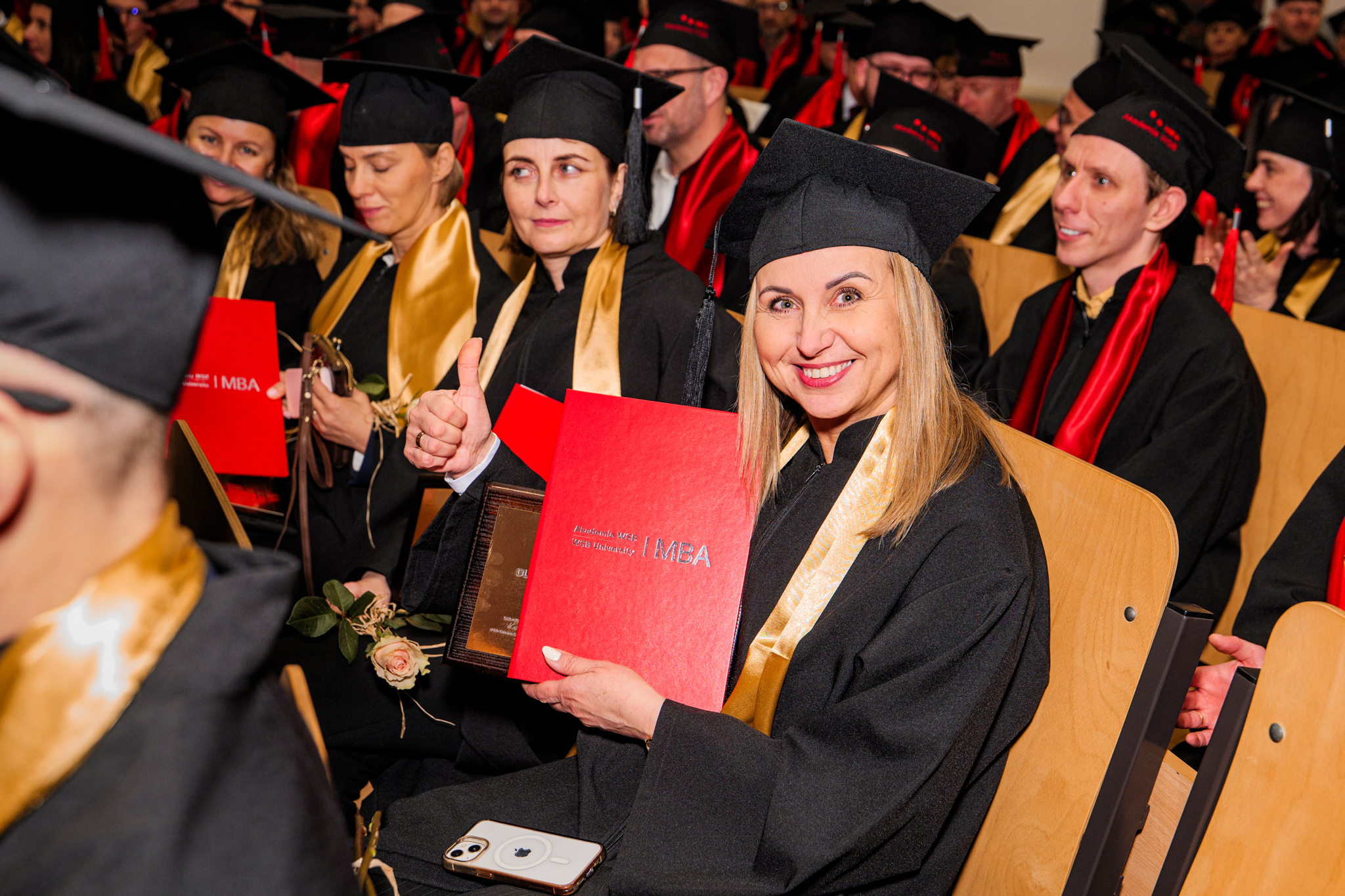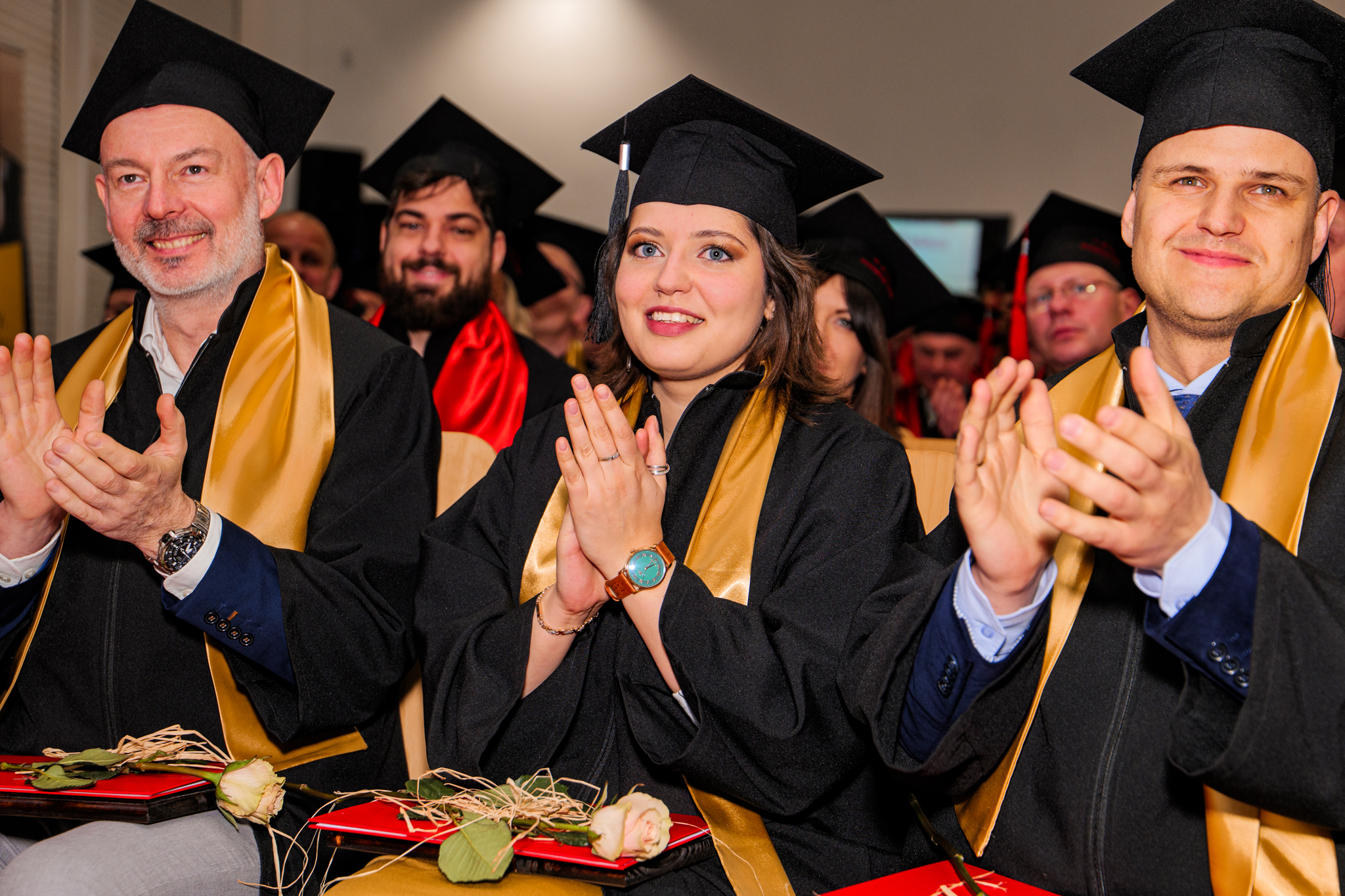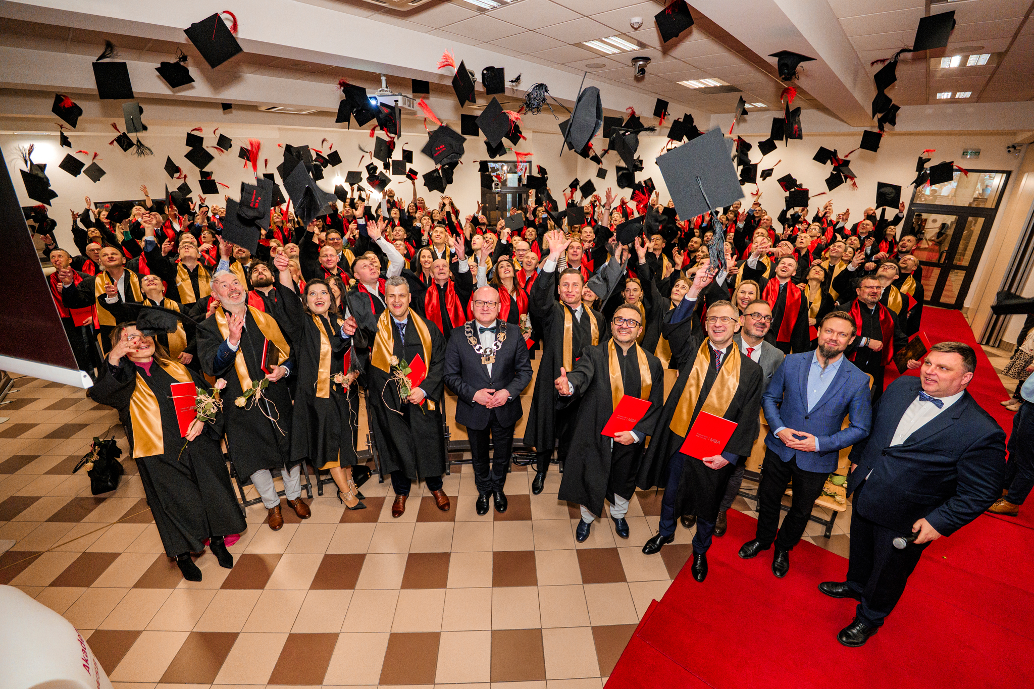 Uroczystość zgromadziła Absolwentów, wykładowców, partnerów biznesowych oraz bliskich, tworząc wyjątkową przestrzeń do wspólnego świętowania zakończenia studiów i podsumowania intensywnej drogi rozwoju.