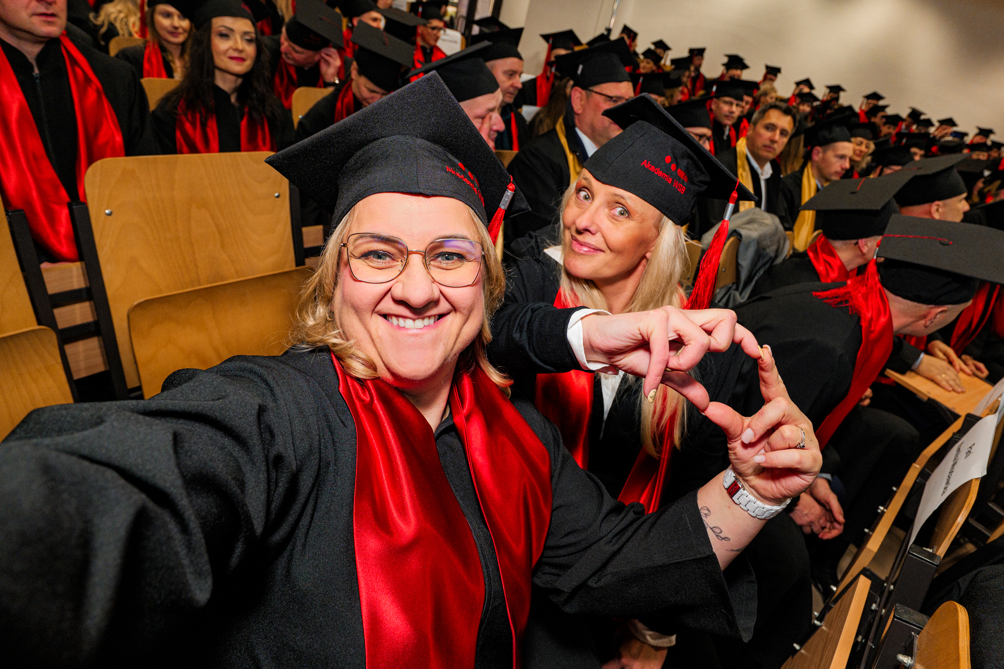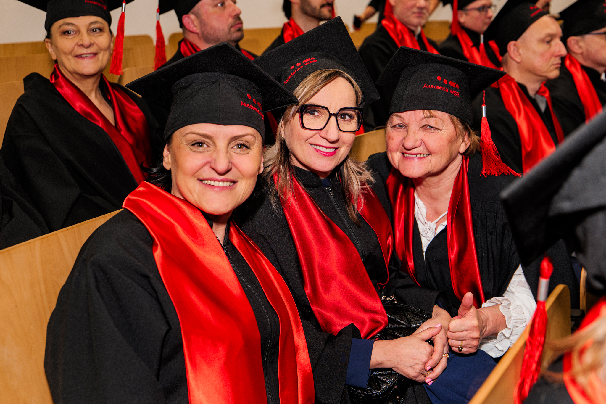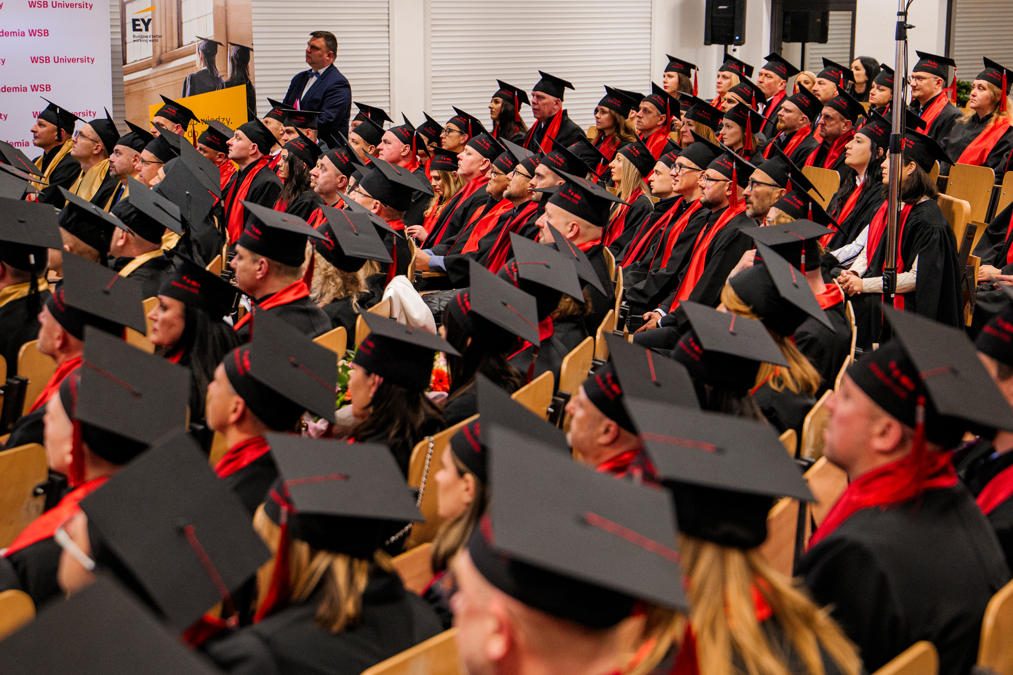 Uroczystość zgromadziła Absolwentów, wykładowców, partnerów biznesowych oraz bliskich, tworząc wyjątkową przestrzeń do wspólnego świętowania zakończenia studiów i podsumowania intensywnej drogi rozwoju.