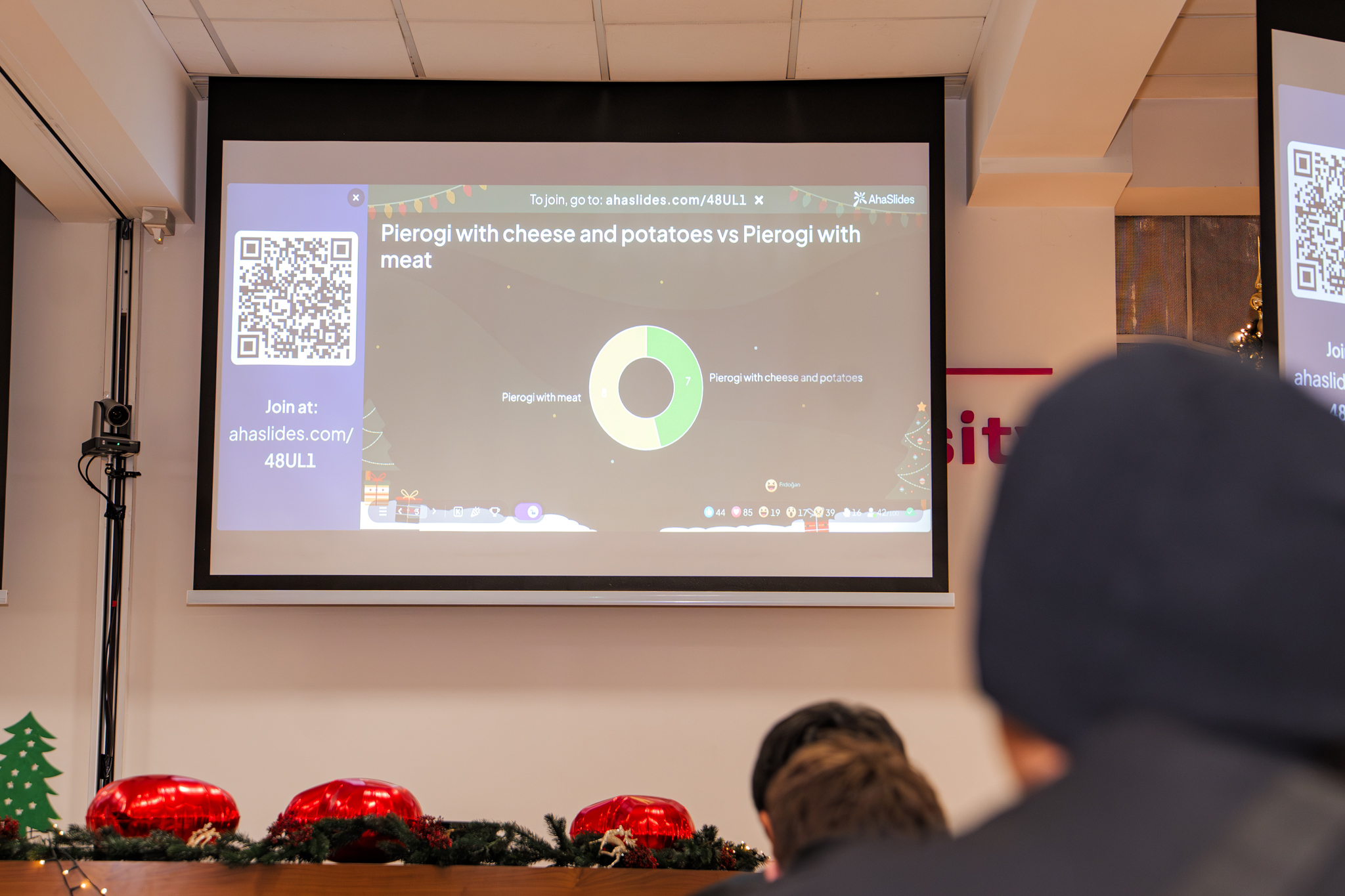 Po części artystycznej uczestnicy mogli spróbować świątecznych potraw z różnych krajów oraz tradycyjnych smakołyków. Program dopełniały dodatkowe atrakcje, m.in. świąteczny quiz z nagrodami oraz fotobudka, w której można było zrobić pamiątkowe zdjęcia ze znajomymi.