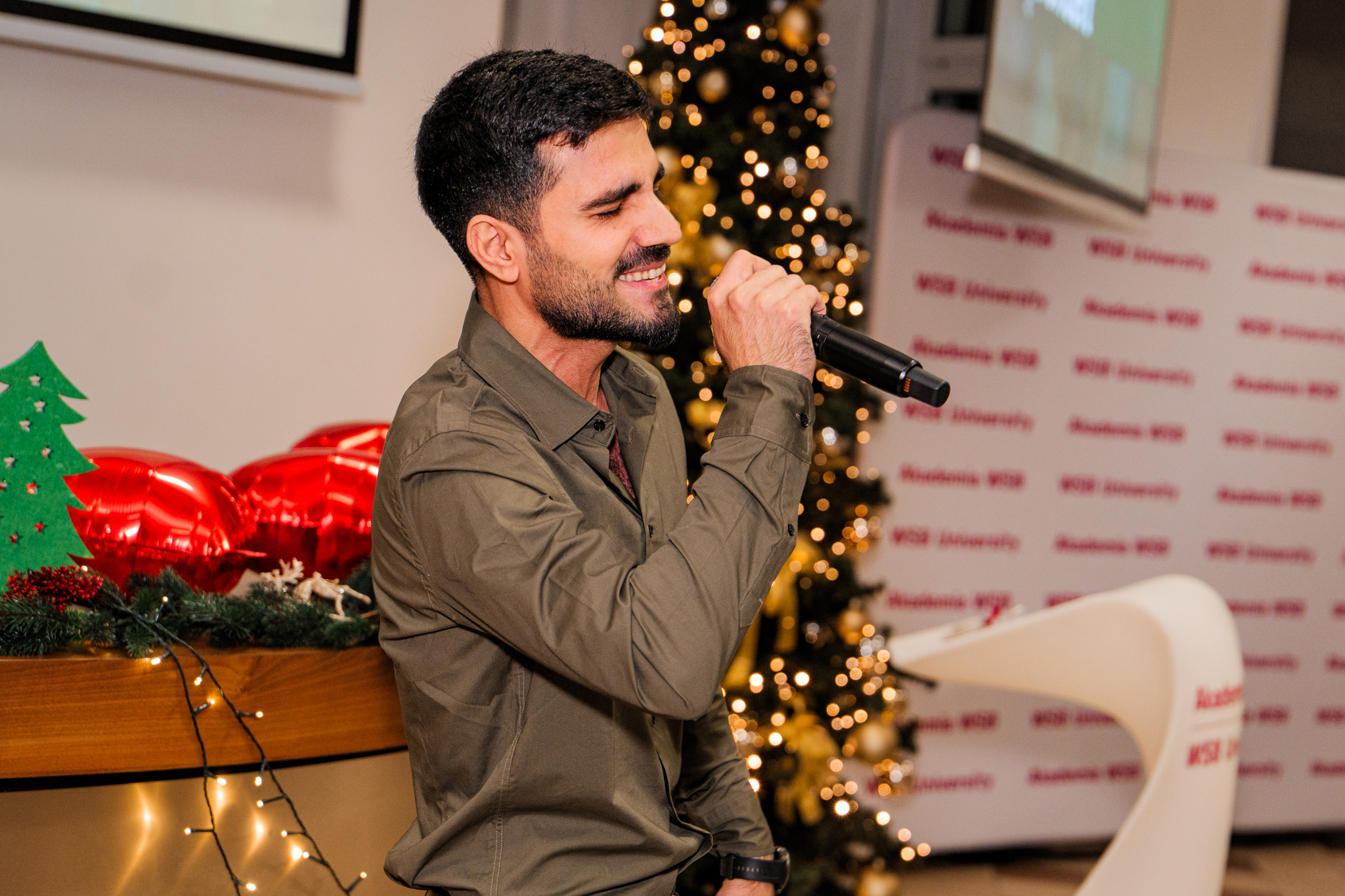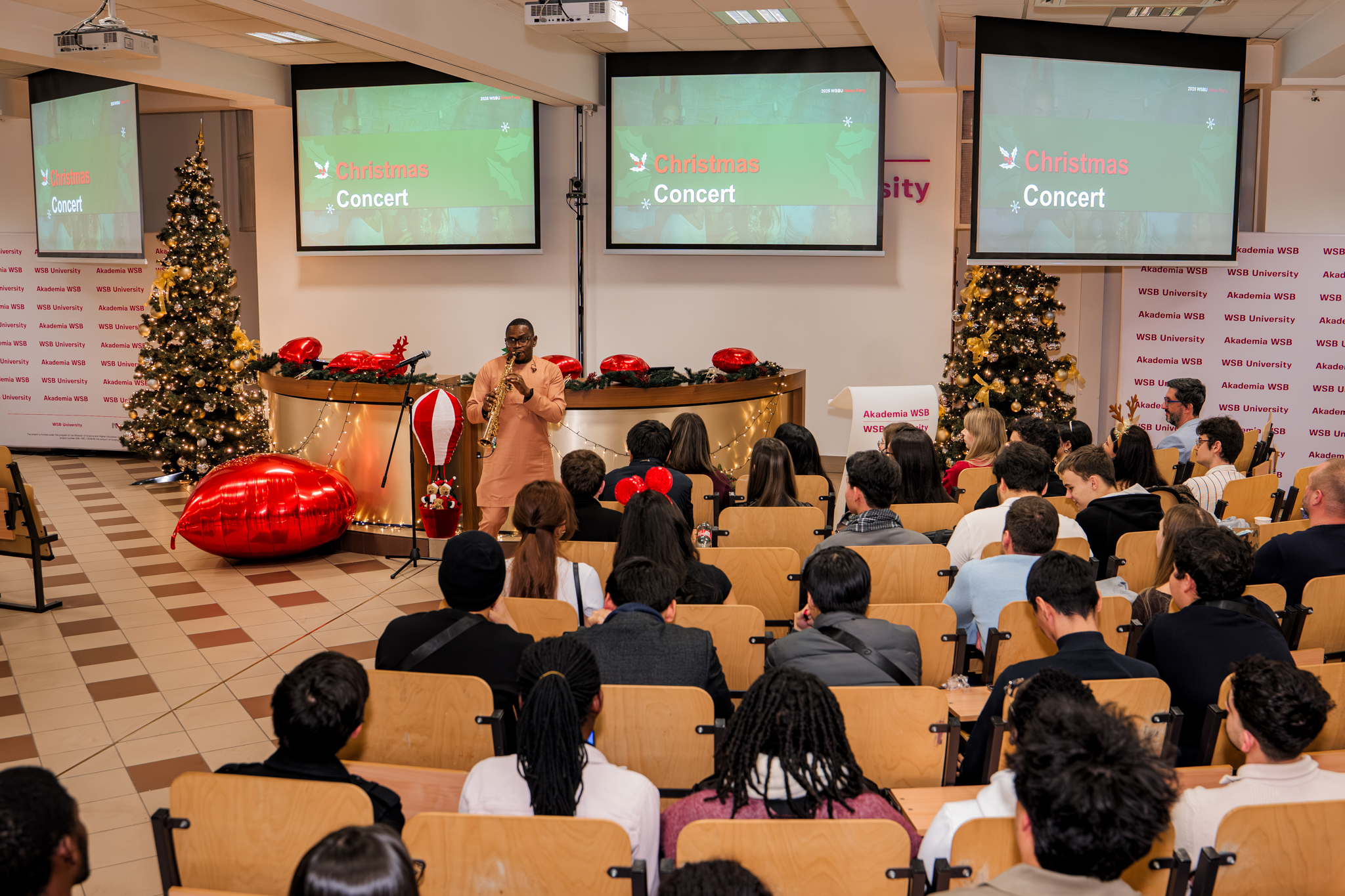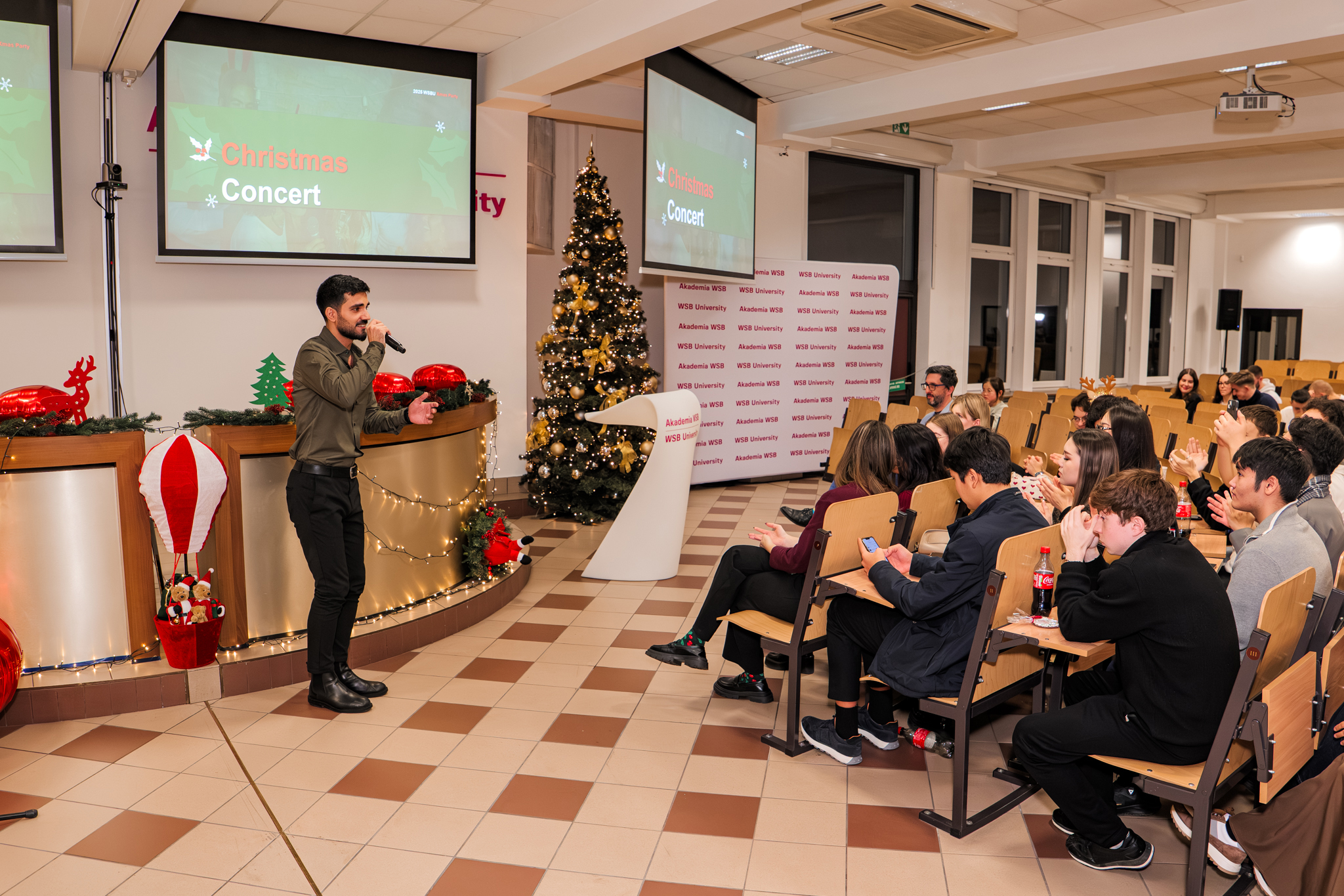 Wydarzenie zgromadziło pracowników i studentów z wielu krajów, dzięki czemu wieczór nabrał prawdziwie międzynarodowego charakteru. Była to doskonała okazja do integracji, rozmów i lepszego poznania świątecznych tradycji z różnych części świata. Szczególnym zainteresowaniem cieszył się koncert na żywo – na scenie wystąpili studenci z zagranicy oraz pracownicy Akademii WSB, prezentując swoje muzyczne talenty i wprowadzając wszystkich w świąteczny nastrój.