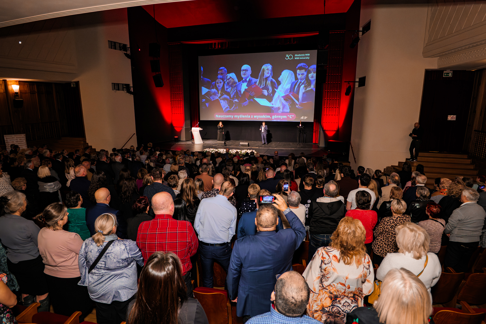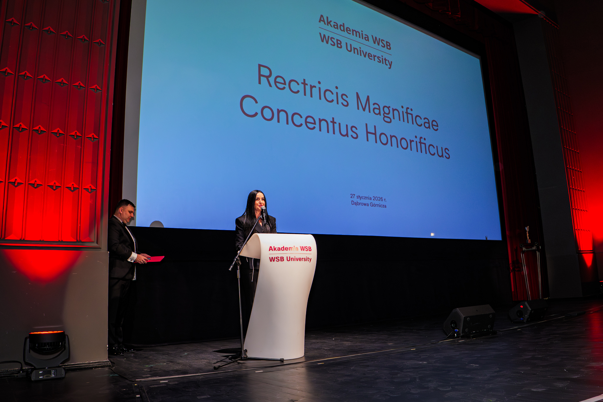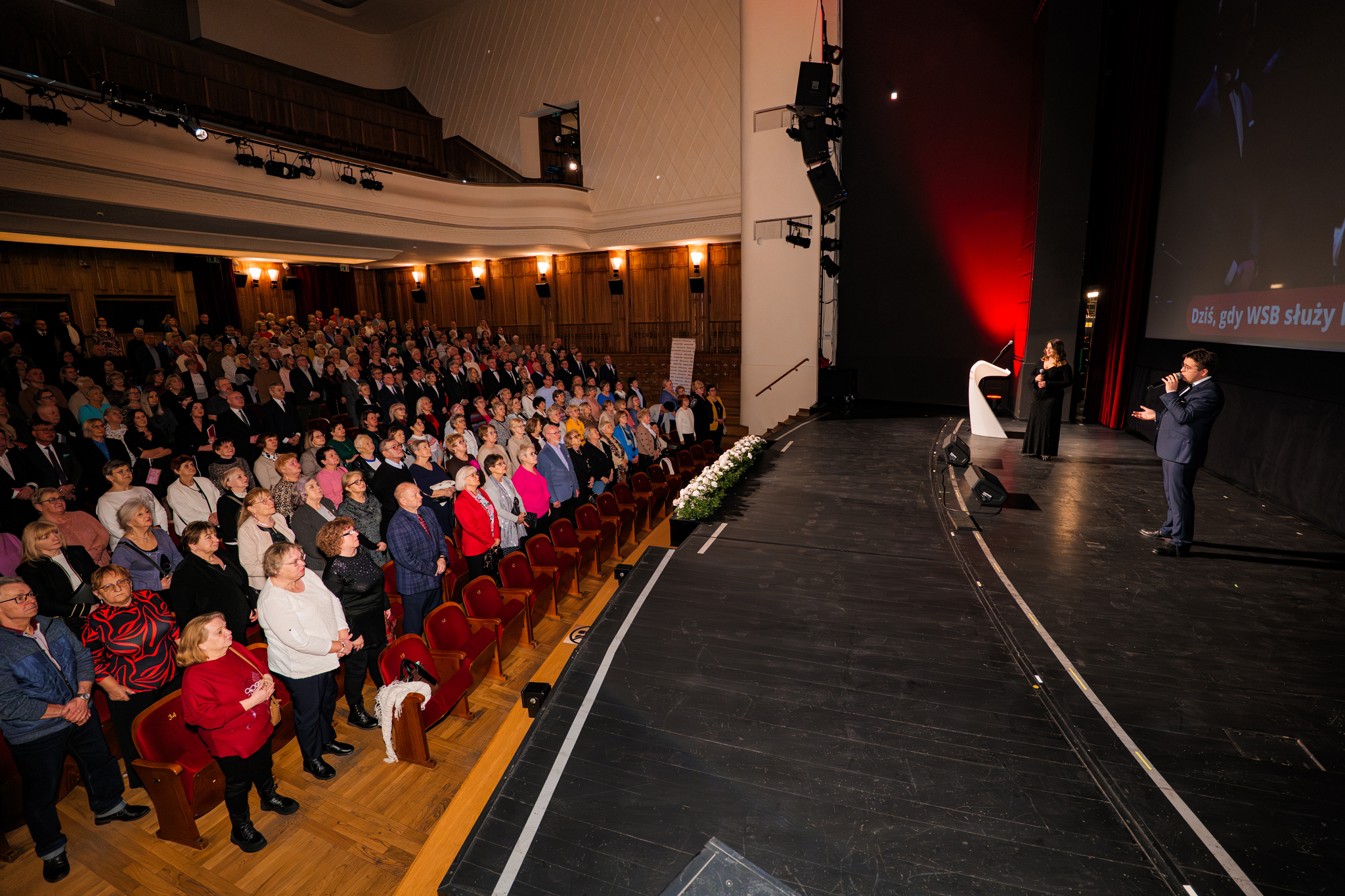 Ważnym momentem uroczystości było wspólne wykonanie Hymnu Akademii WSB z udziałem studentów Uczelni – Pauliny Stęchły i Krystiana Stucznia.