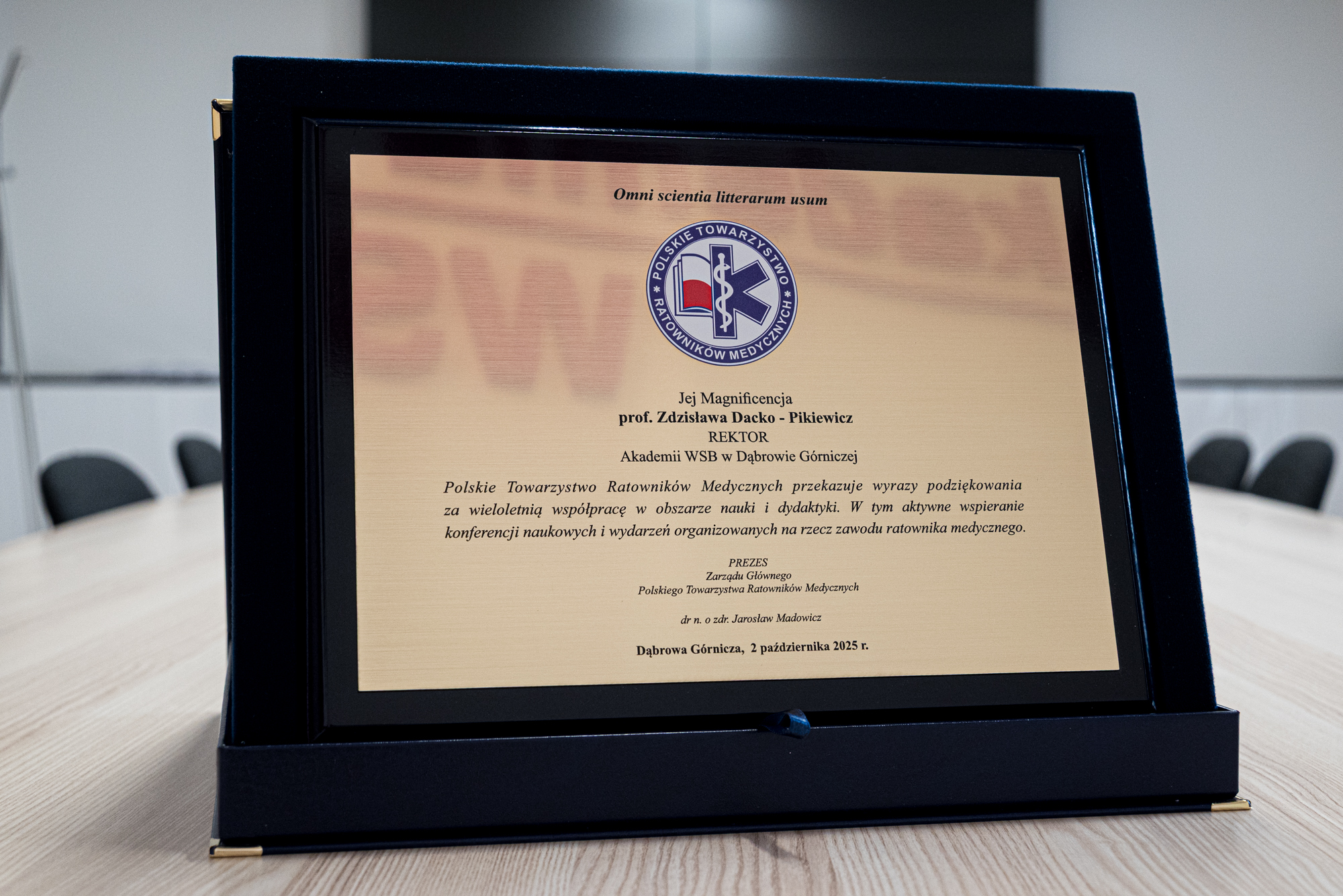 W uroczystym podpisaniu umowy wzięli także udział Ordynatorzy nowo powołanych Oddziałów Klinicznych dr n. med. Janusz Kowalski, dr n. med. Krzysztof Dąbrowski oraz lek. med. Bartosz Poloczek. Uroczystość stała się też okazją do wręczenia podziękowań prof. Zdzisławie Dacko-Pikiewicz za wieloletnią współpracę w obszarze nauki i dydaktyki od Polskiego Towarzystwa Ratowników Medycznych. Podziękowania na ręce Rektor złożył dr n. med. Jarosław Madowicz Prezes Polskiego Towarzystwa Ratowników Medycznych.
