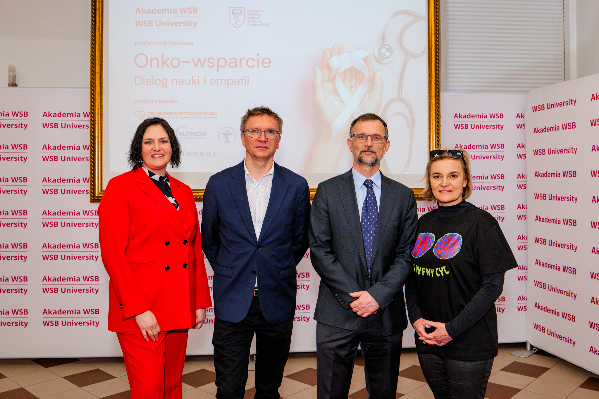 W dniu 6 marca br. Akademii WSB w Dąbrowie Górniczej odbyła się konferencja naukowa „Onko-wsparcie. Dialog nauki i empatii”, poświęcona zagadnieniom związanym z profilaktyką, leczeniem oraz kompleksowym wsparciem pacjentów onkologicznych. Wydarzenie zgromadziło specjalistów z obszaru medycyny i nauk o zdrowiu, a także osoby zainteresowane tematyką zdrowia i profilaktyki.