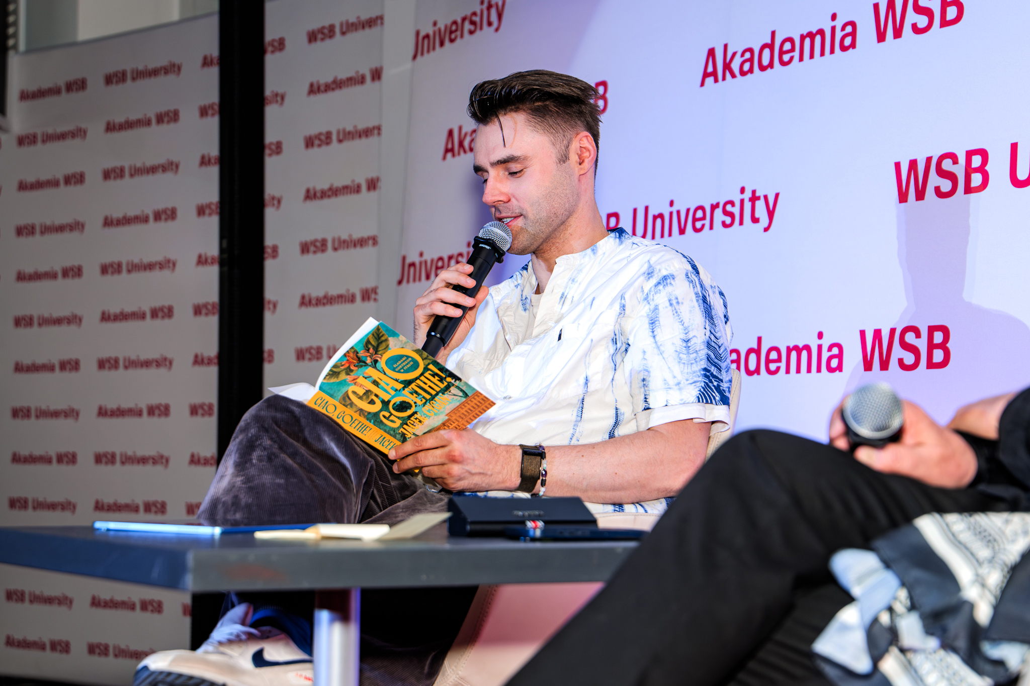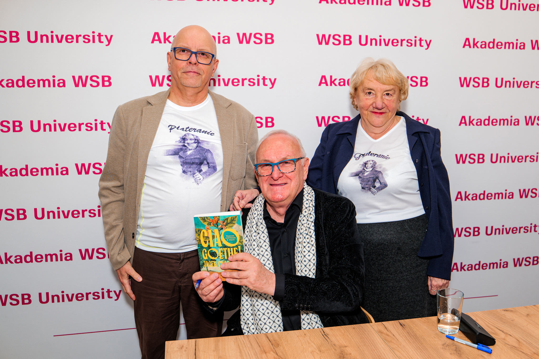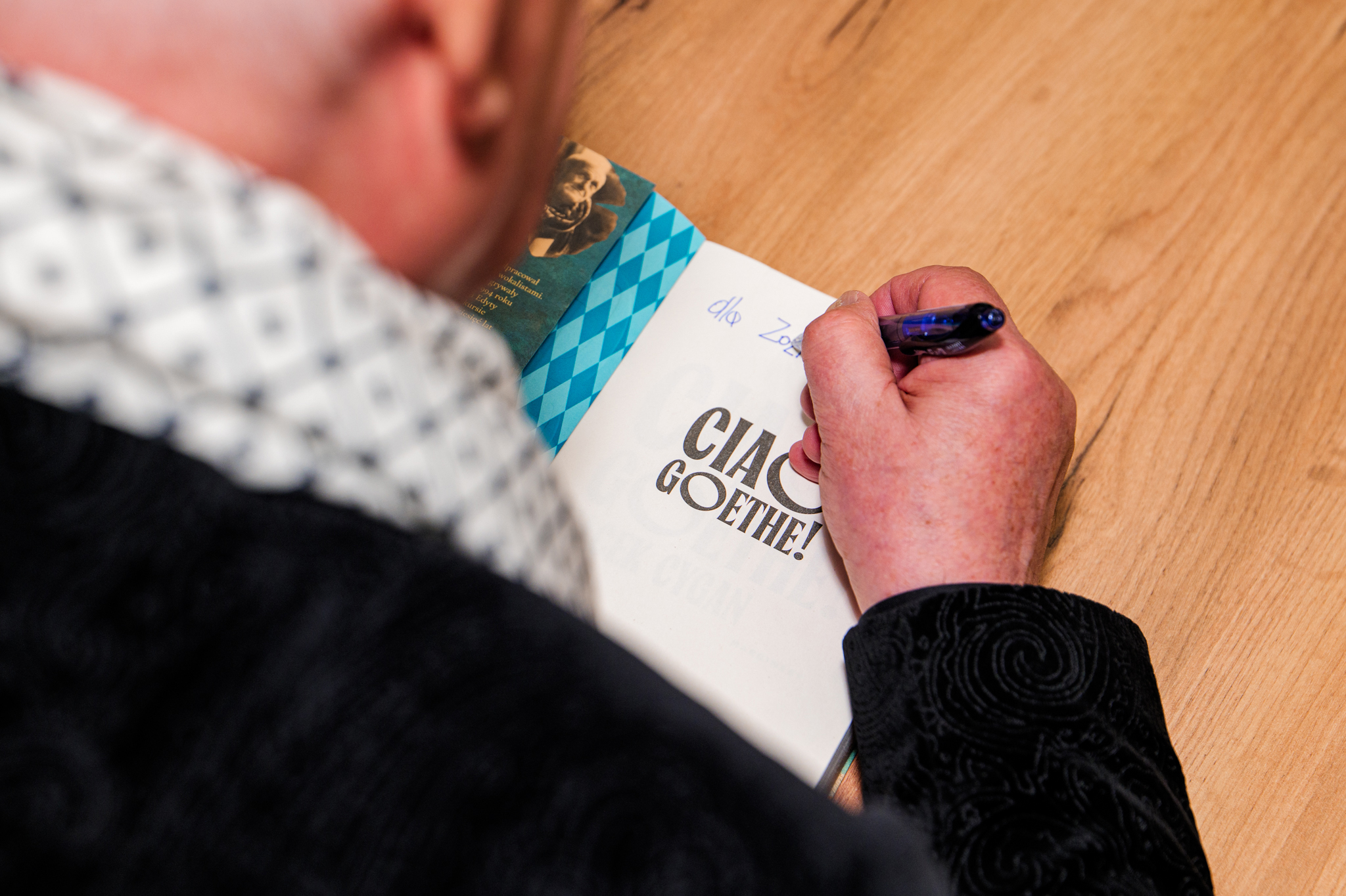 Spotkanie miało również wymiar artystyczny. Na scenie pojawił się „Młody Goethe”, w którego wcielił się Marcin Januszkiewicz, wprowadzając publiczność w świat emocji i twórczości bohatera książki.