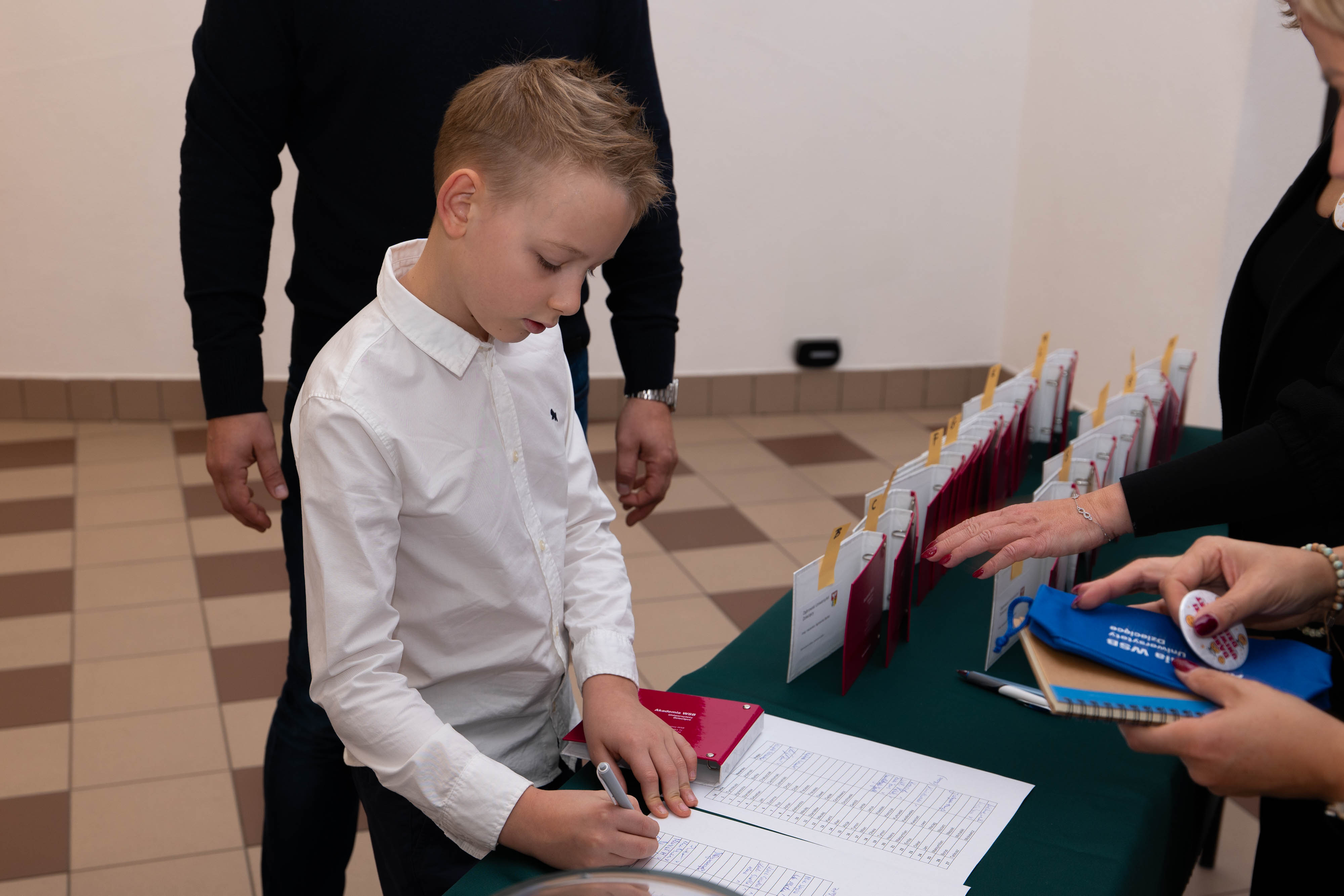 Podczas uroczystej immatrykulacji mali studenci złożyli ślubowanie studenckie, stając się pełnoprawnymi członkami społeczności akademickiej Dąbrowskiego Uniwersytetu Dziecięcego. To wyjątkowy i symboliczny moment, który od lat stanowi nieodłączny element inauguracji – pełen emocji, radości i dumy zarówno wśród dzieci, jak i rodziców.