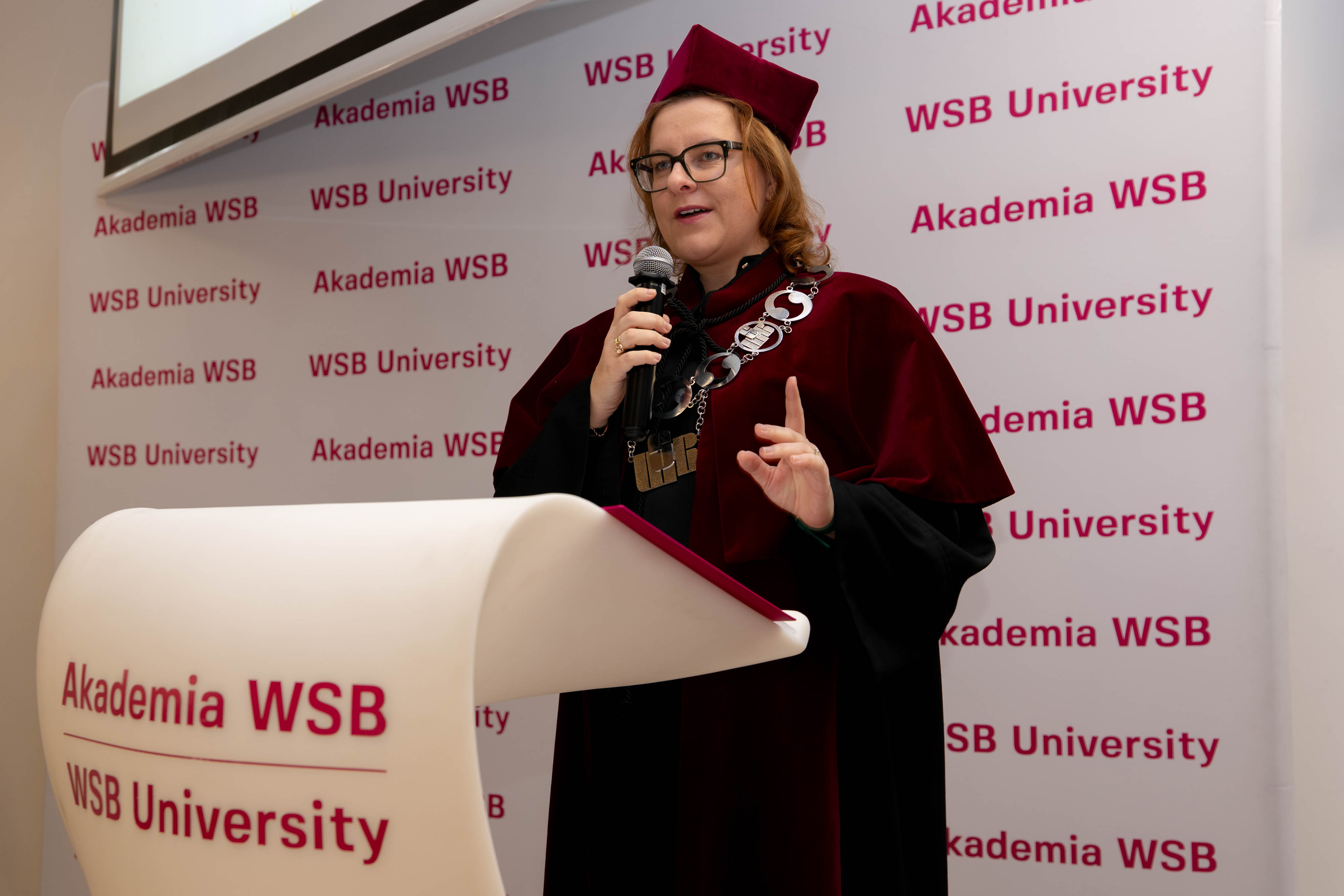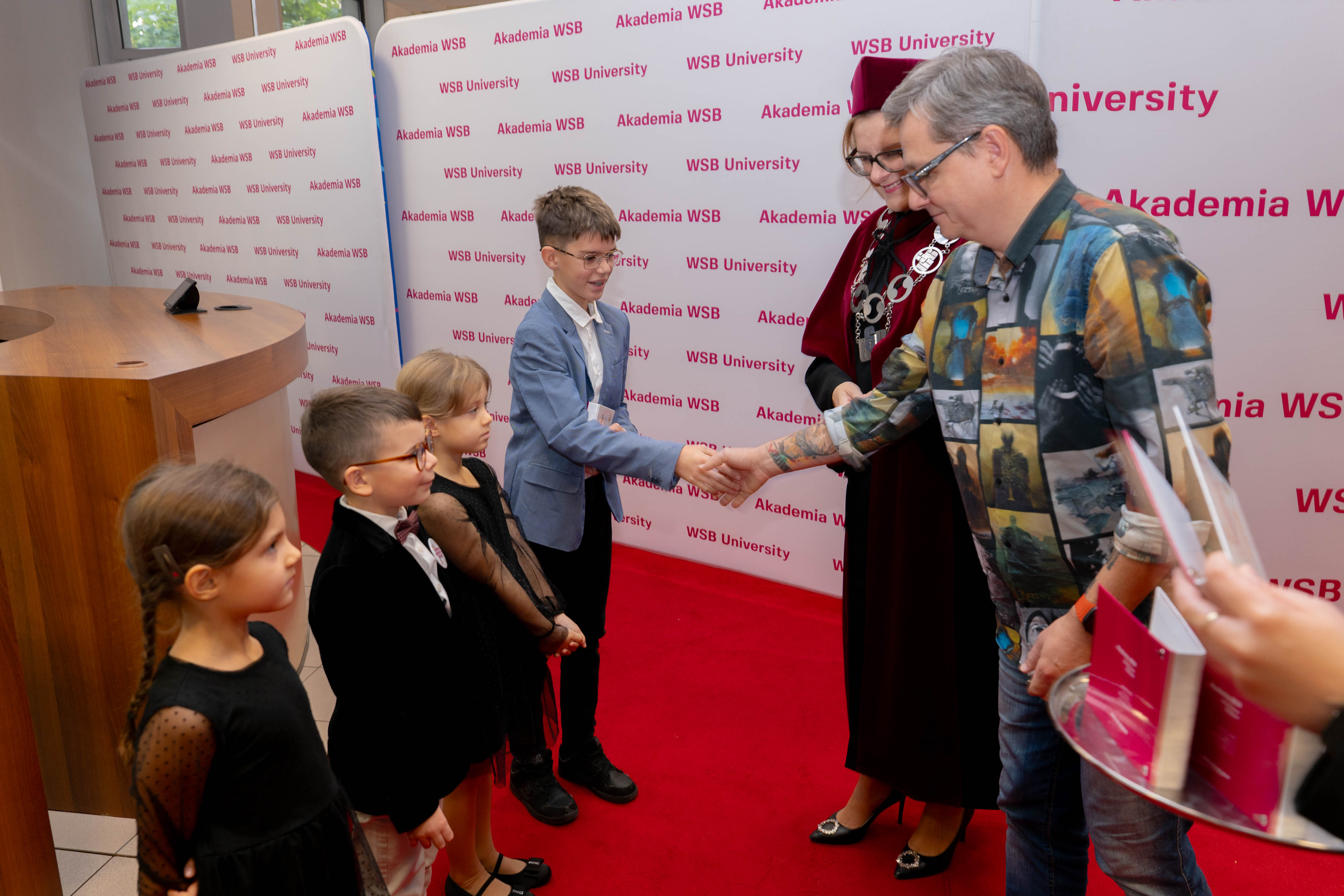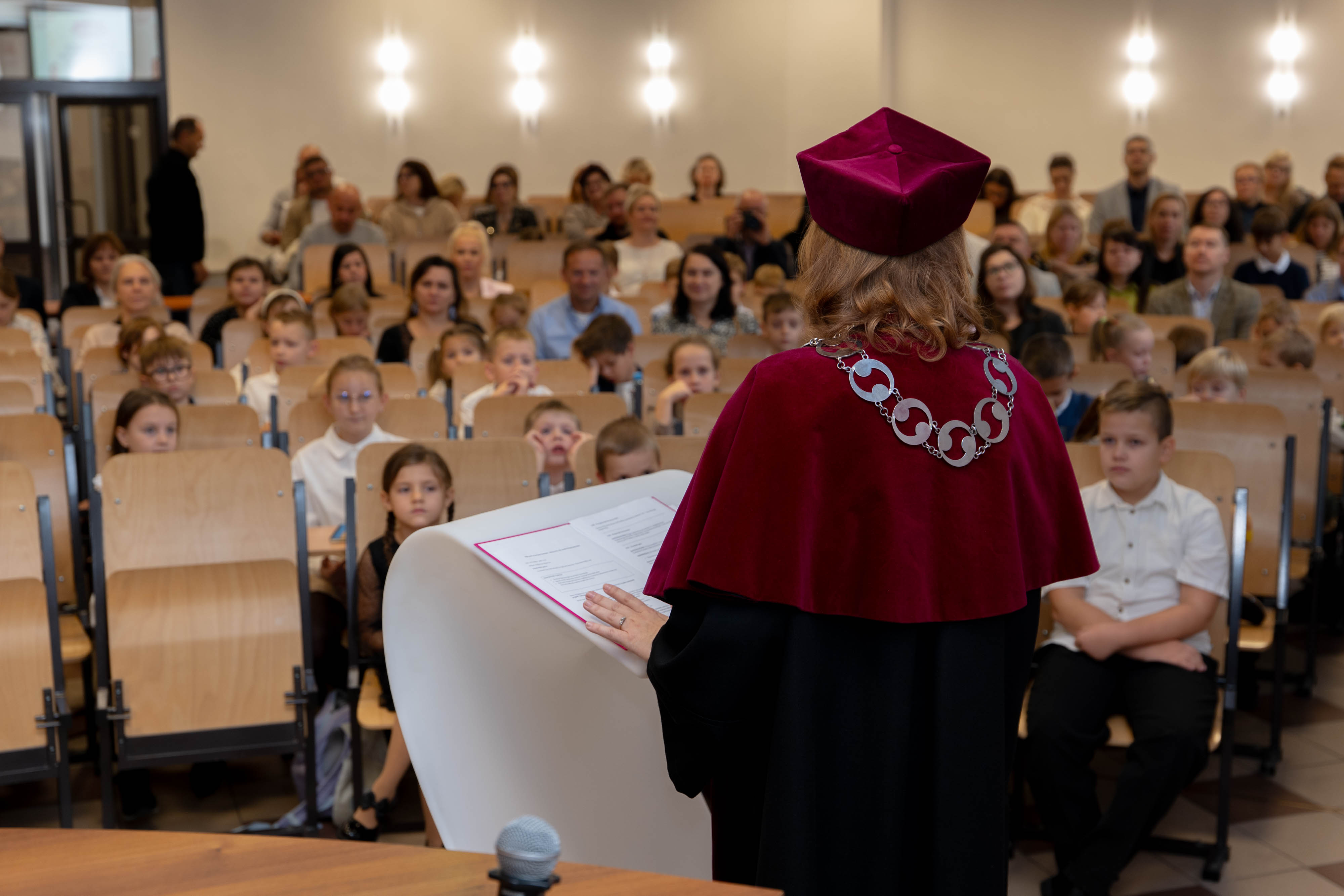 W wydarzeniu udział wzięła dr Edyta Antoniak-Kiedos, Prodziekan Wydziału Nauk Stosowanych Akademii WSB, która w imieniu władz uczelni powitała najmłodszych studentów oraz ich rodziców, życząc im pasji w odkrywaniu świata i wielu inspirujących spotkań w nadchodzącym roku.