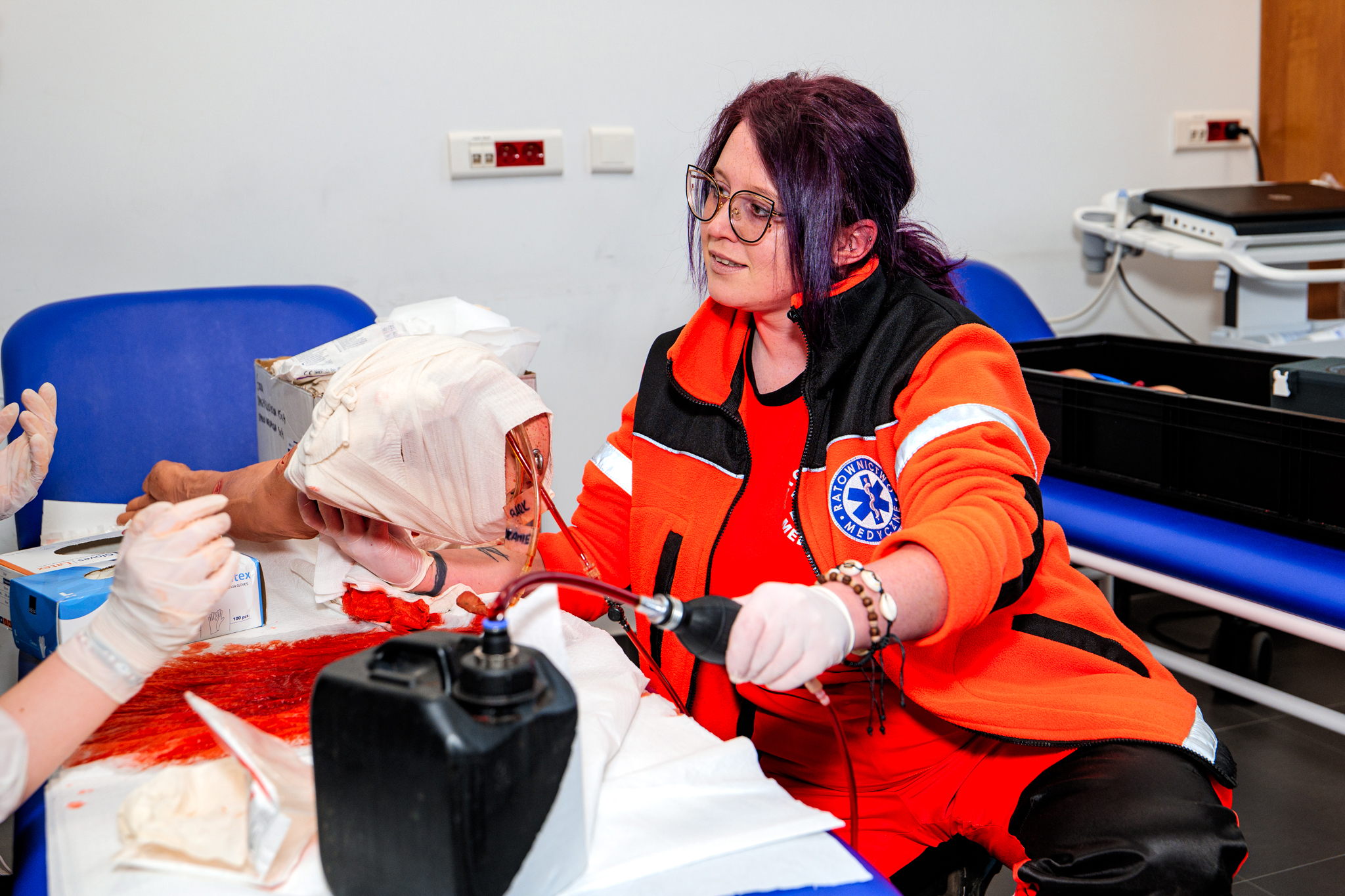 - pierwsza pomoc i elementy medycyny taktycznej – uczestnicy uczyli się, jak reagować w stanach zagrożenia życia, prowadzić resuscytację krążeniowo-oddechową oraz korzystać z automatycznego defibrylatora zewnętrznego (AED),