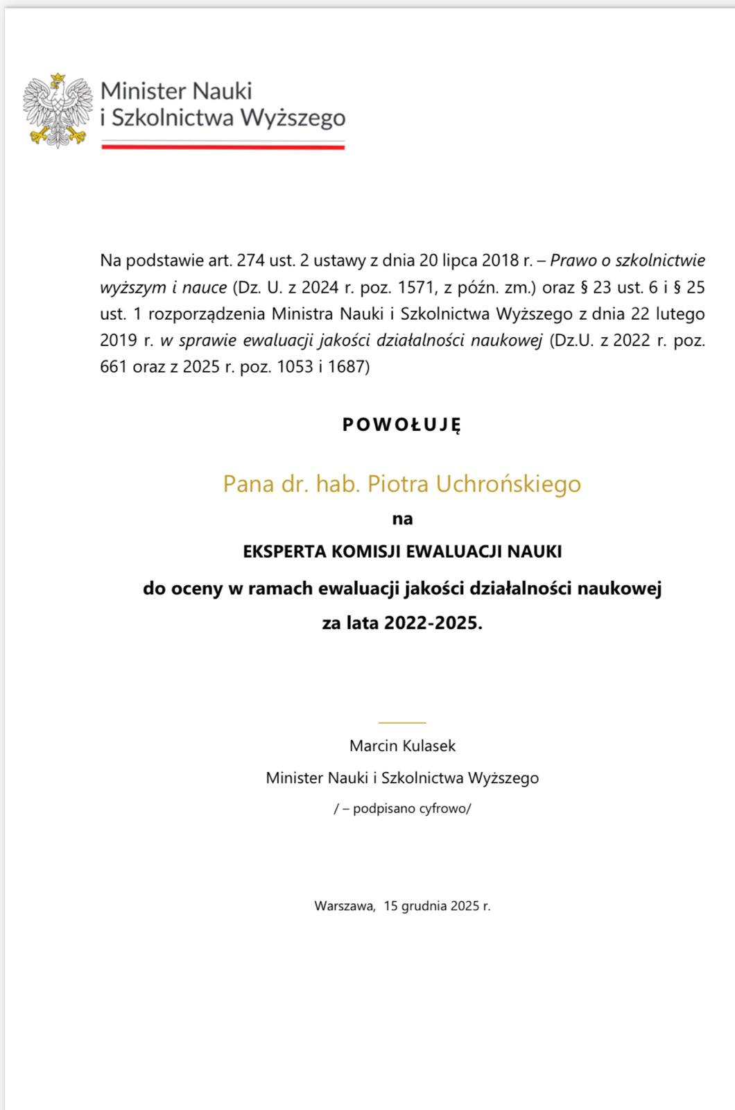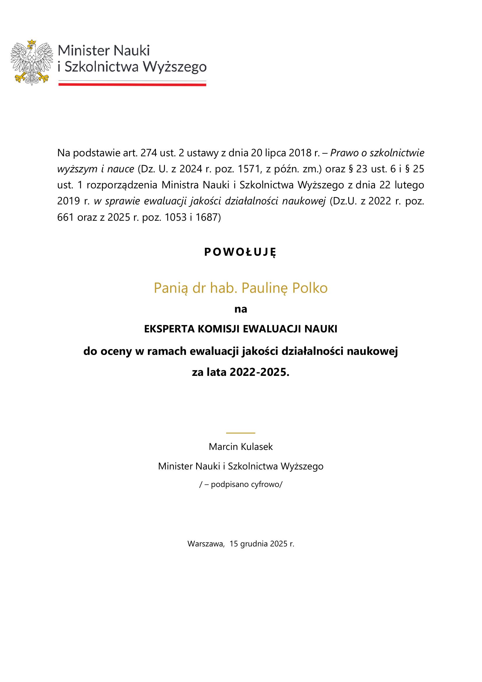Minister Nauki i Szkolnictwa Wyższego powołał ekspertów Akademii WSB do Komisji Ewaluacji Nauki — ciała, które ocenia jakość działalności naukowej jednostek akademickich w Polsce.
