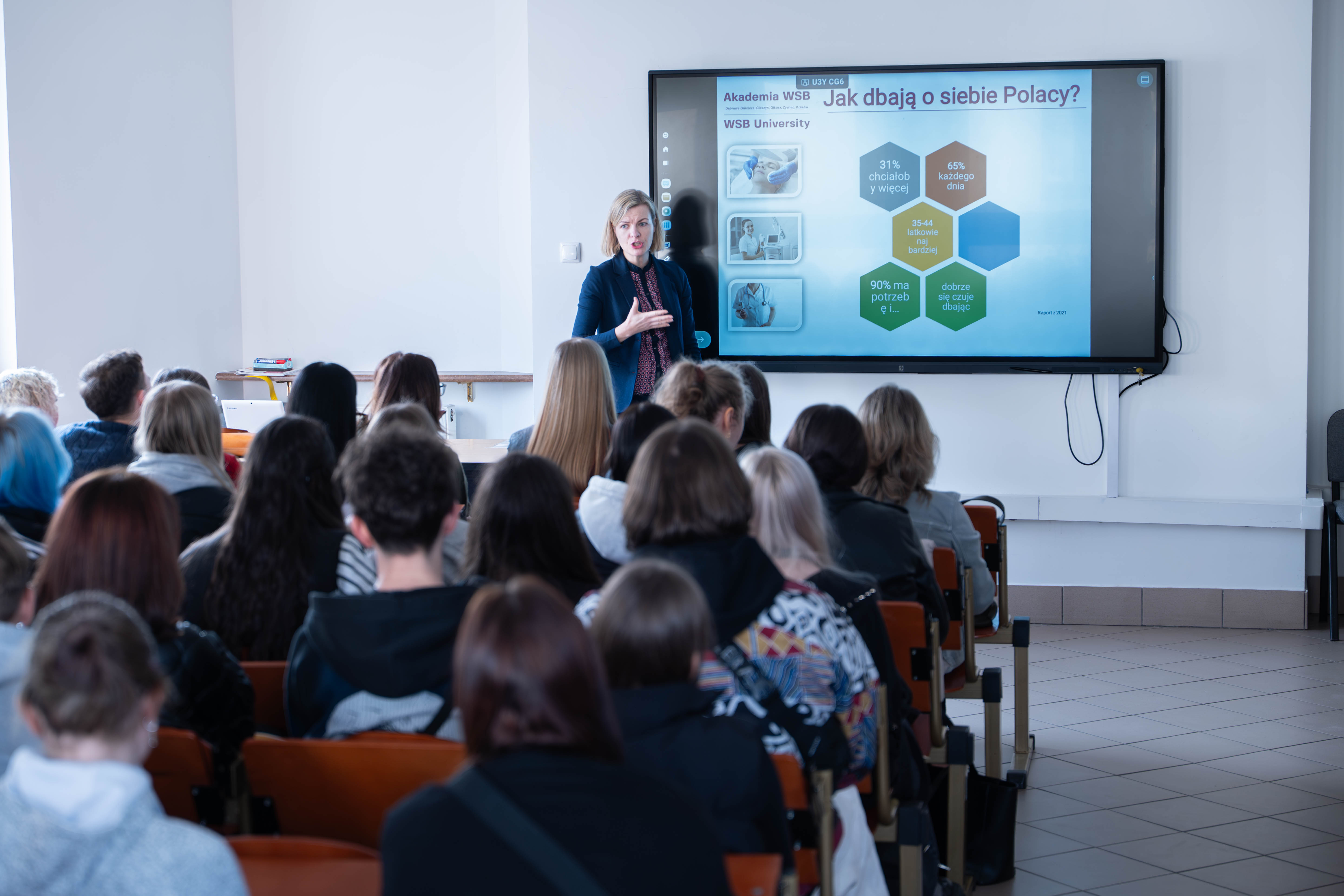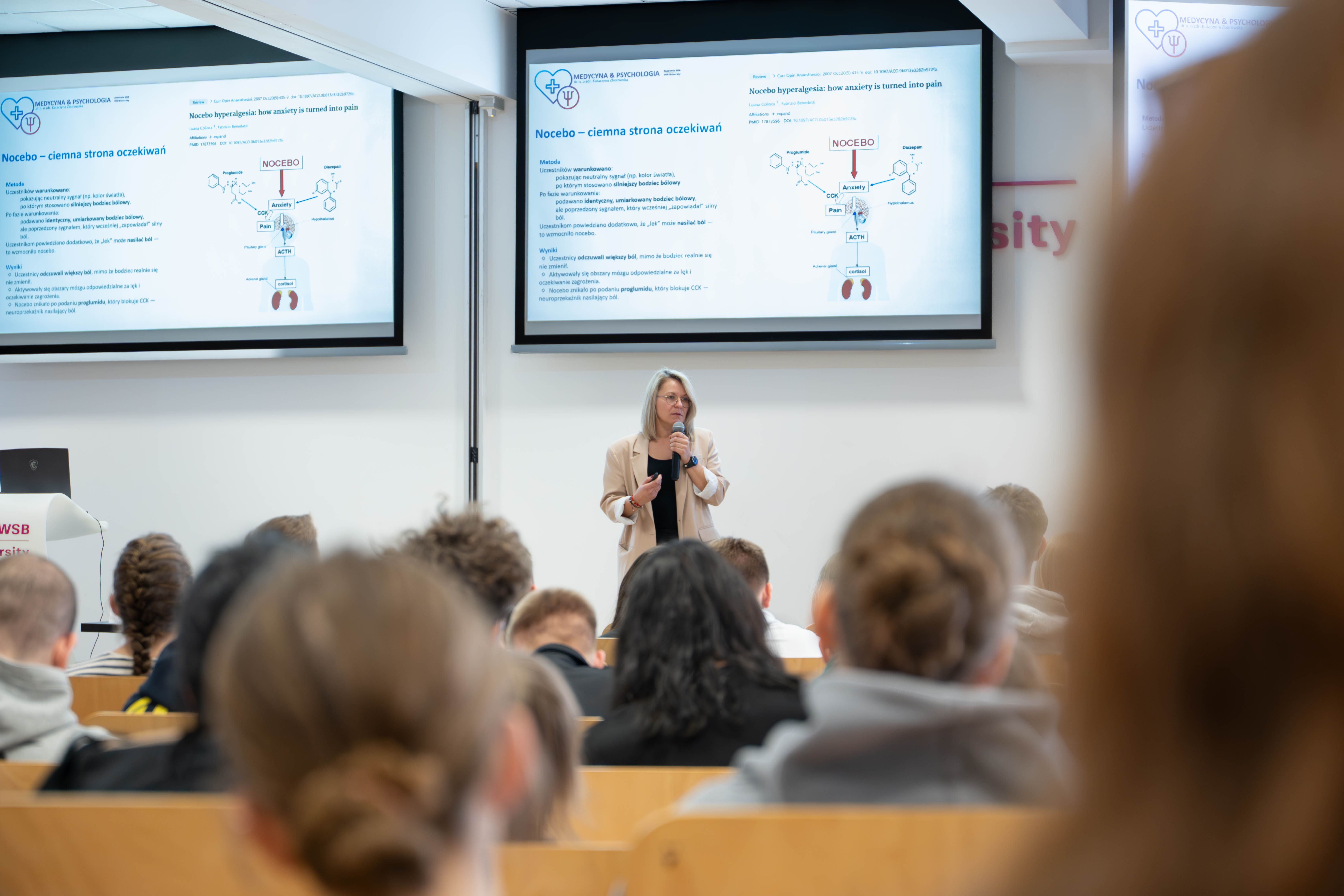 Spotkanie rozpoczęło się w Audytorium Maximum, gdzie uczestników powitał prof. Marcin Lis, Prorektor ds. Studenckich i Współpracy z Otoczeniem. W programie znalazł się także konkurs dla uczestników oraz wykład „Medycyna & psychologia – czyli jak ciało i umysł prowadzą niekończącą się rozmowę”, który wygłosiła dr n. o zdr. Katarzyna Zborowska, Prodziekan Wydziału Nauk Stosowanych.
