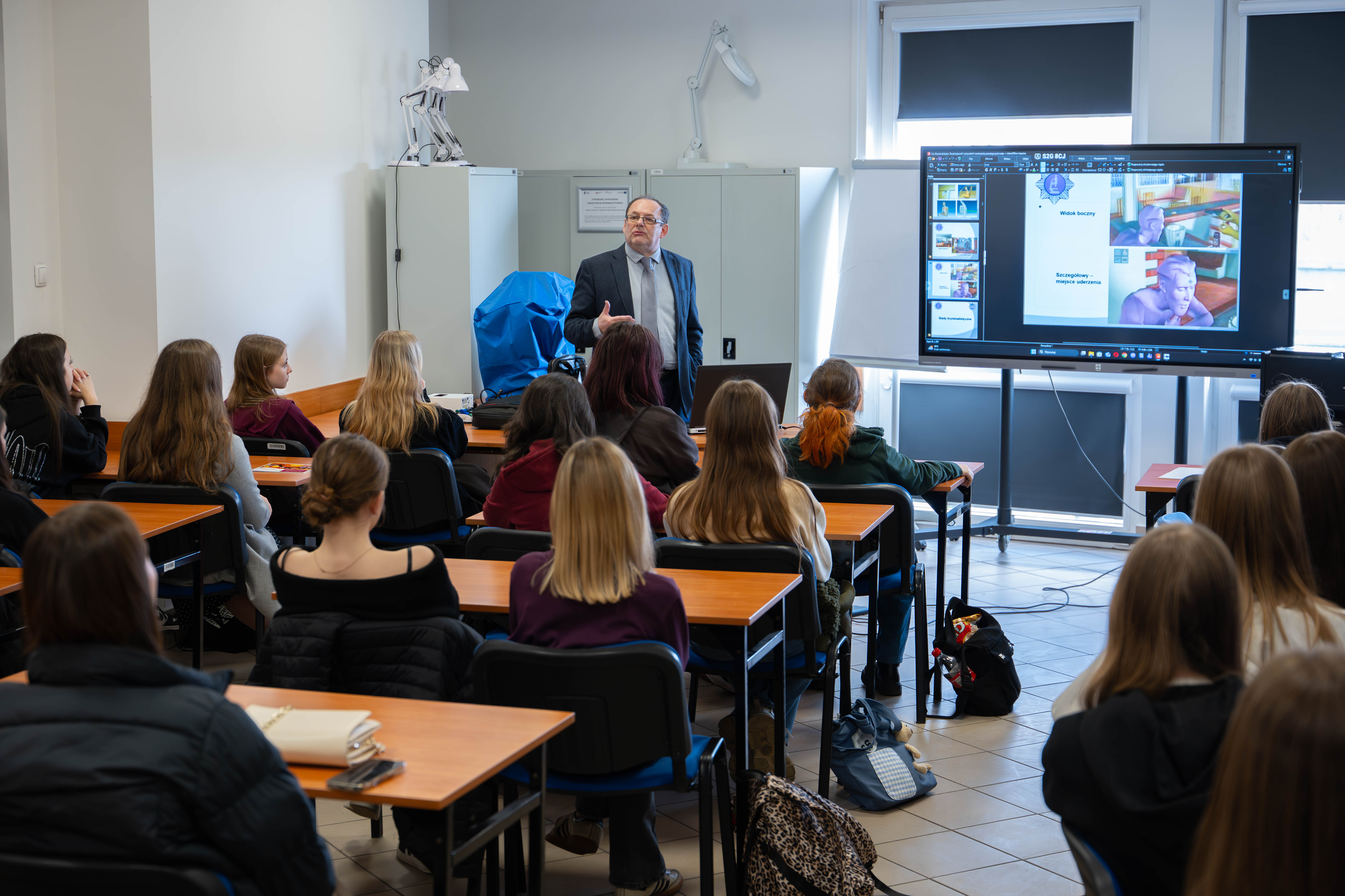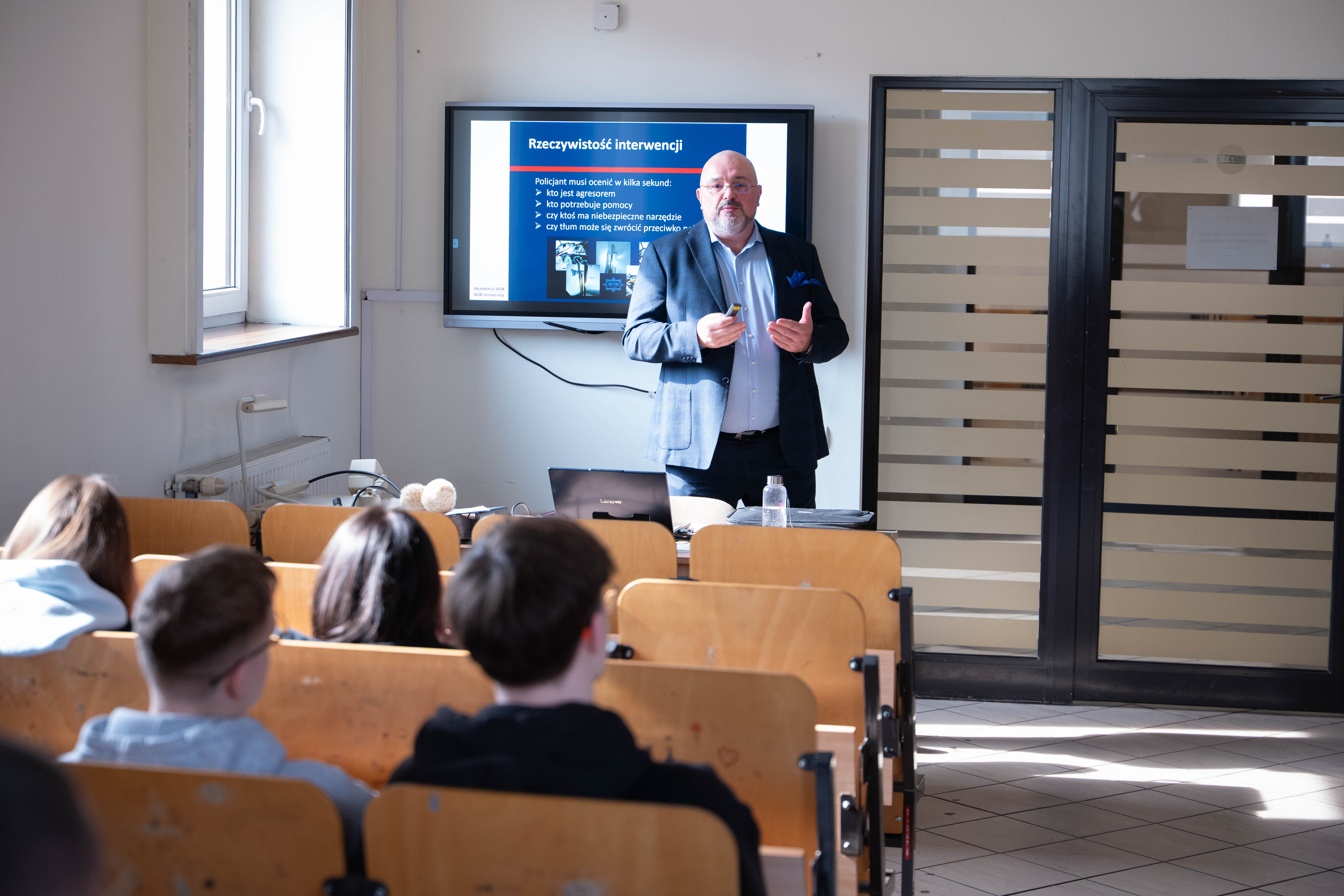 Kolejną część wydarzenia stanowiły warsztaty tematyczne prowadzone przez wykładowców Akademii WSB. Uczniowie mogli wybrać zajęcia odpowiadające ich zainteresowaniom i sprawdzić, jak wyglądają studia w różnych obszarach. Wśród przygotowanych propozycji znalazły się m.in. warsztaty z zakresu udzielania pomocy przedmedycznej, kryminalistyki w zwalczaniu przestępczości, wykorzystania sztucznej inteligencji w tworzeniu filmów, arteterapii, a także zajęcia dotyczące prawa w codziennym życiu, nowoczesnych technologii wykorzystywanych w zarządzaniu kryzysowym, pracy w służbach mundurowych czy metod kreatywnego rozwiązywania problemów.
