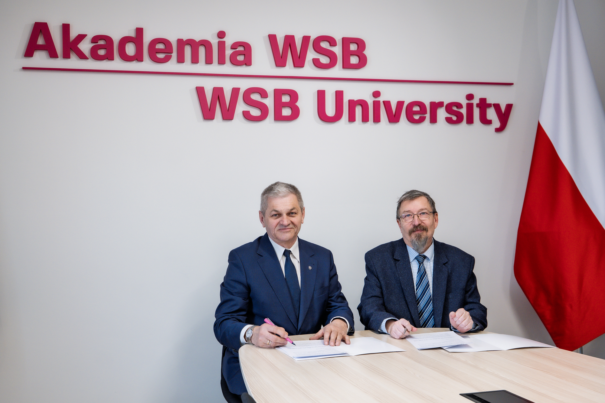Porozumienie zostało zawarte 10 kwietnia 2026 r. w Akademii WSB w Dąbrowie Górniczej. Dokument podpisali dr hab. Marek Walancik, prof. AWSB – Dyrektor Centrum Badań i Edukacji Służb Mundurowych Akademii WSB oraz dr Andrzej Kita – Dyrektor Zespołu Katolickich Szkół Ogólnokształcących nr 1 w Katowicach. W spotkaniu uczestniczyli również Barbara Woźniak – Dyrektor Centrum Promocji i Informacji Akademii WSB oraz dr Krzysztof Justyński – Prodziekan ds. Kształcenia Akademii WSB.