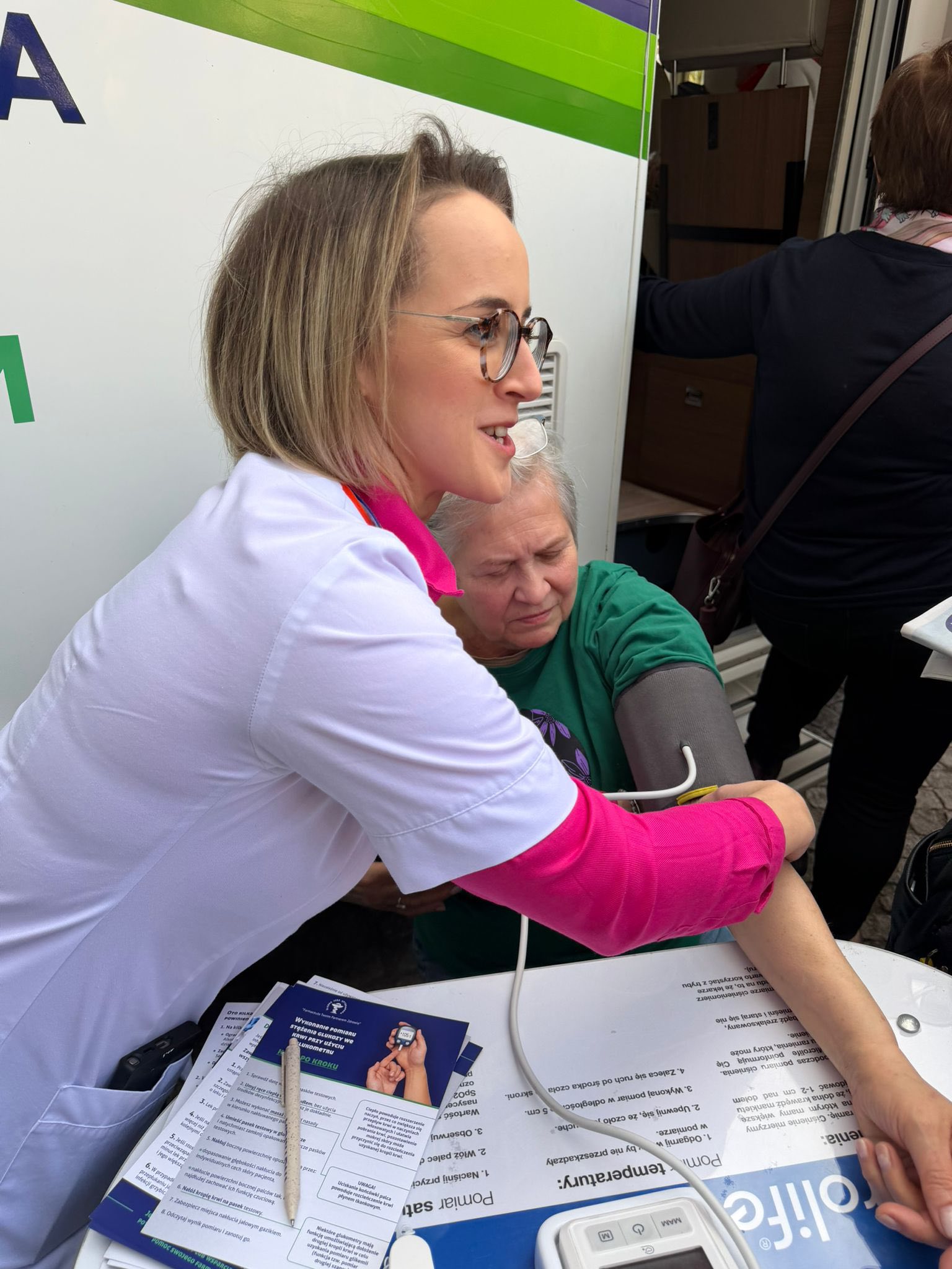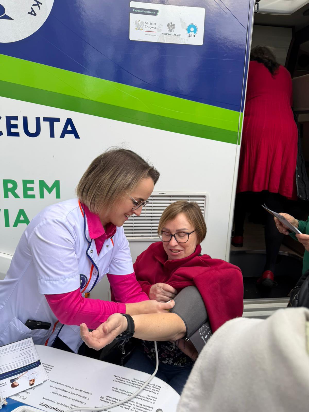 Dzień rozpoczął się od spotkania w ramach SeniorCafe – przestrzeni sprzyjającej rozmowom, wymianie doświadczeń oraz dzieleniu się pomysłami na kolejne inicjatywy. Była to doskonała okazja do integracji słuchaczy oraz zapowiedzi nadchodzących wydarzeń i działań planowanych w ramach Uniwersytetu Trzeciego Wieku. Następnie uczestnicy mogli skorzystać z wizyty Farmakobusa, który przyjechał do uczelni dzięki współpracy z Śląska Izba Aptekarska. Podczas mobilnych konsultacji zdrowotnych słuchacze mieli możliwość wykonania podstawowych badań profilaktycznych, takich jak pomiar poziomu cukru we krwi czy kontrola ciśnienia tętniczego. Nie zabrakło również rozmów ze specjalistami, którzy udzielali porad dotyczących zdrowia, profilaktyki oraz codziennej troski o dobrą kondycję organizmu. Działania te spotkały się z dużym zainteresowaniem uczestników i stanowiły ważny element promowania świadomej profilaktyki zdrowotnej wśród seniorów.