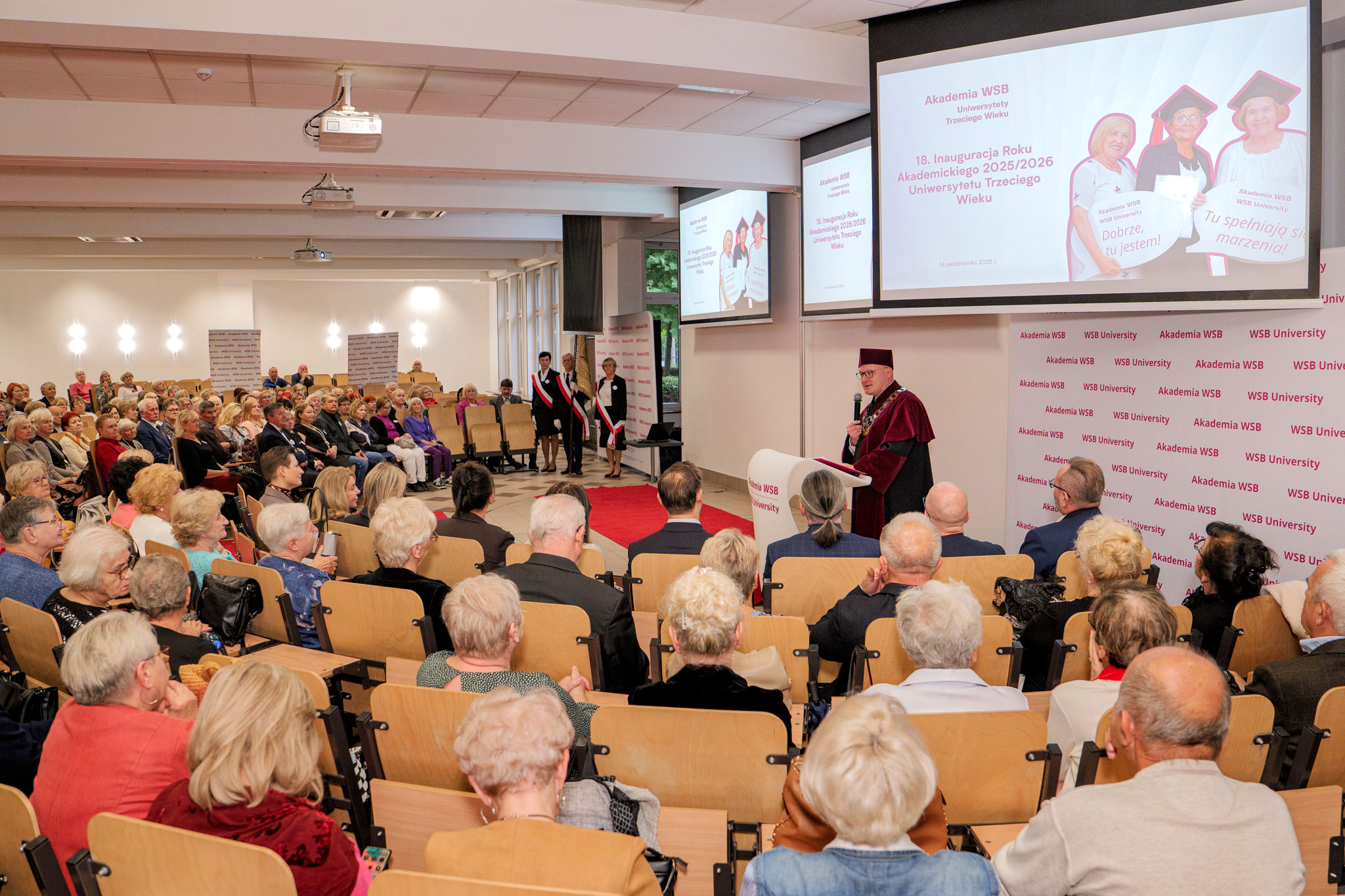 14 października 2025 roku w Audytorium Maximum Akademii WSB w Dąbrowie Górniczej uroczyście zainaugurowano nowy Rok Akademicki 2025/2026 Uniwersytetu Trzeciego Wieku. Wydarzenie to miało szczególny charakter, ponieważ był to już osiemnasty rok działalności UTW Akademii WSB w Dąbrowie Górniczej – jednostki, która od lat konsekwentnie promuje ideę uczenia się przez całe życie oraz aktywizację osób starszych poprzez edukację, kulturę i integrację społeczną.