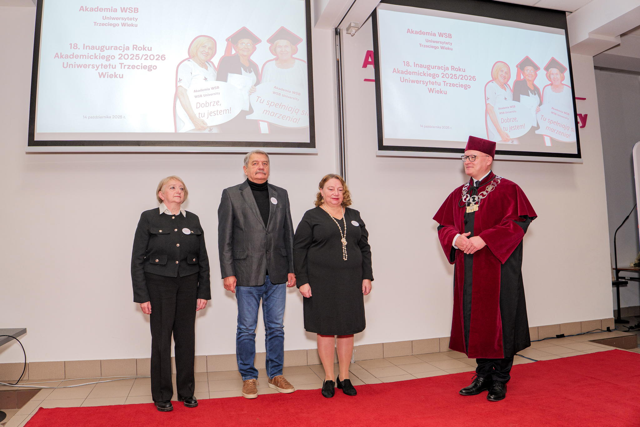 Uroczystość rozpoczął prof. Marcin Lis – Prorektor ds. Studenckich i Współpracy z Otoczeniem, który w imieniu JM Rektor Akademii WSB prof. Zdzisławy Dacko-Pikiewicz powitał zgromadzonych gości i oficjalnie otworzył wydarzenie. Jak podkreślono podczas inauguracji, w roku akademickim 2025/2026 społeczność UTW Akademii WSB tworzy ponad 500 słuchaczy w Dąbrowie Górniczej oraz 3500 studentów-seniorów w ramach całej sieci 14 oddziałów UTW Akademii WSB działających w różnych miastach.