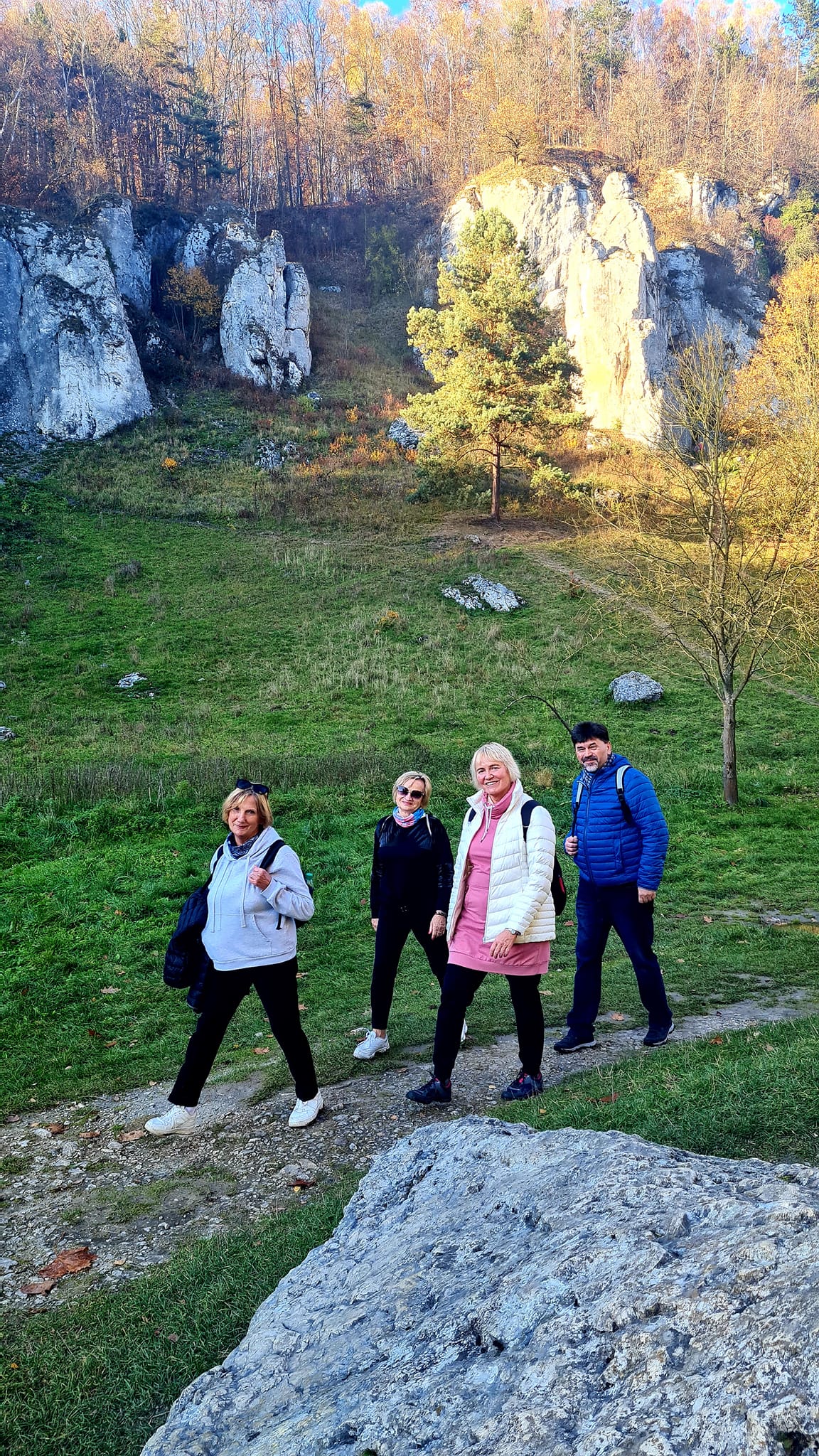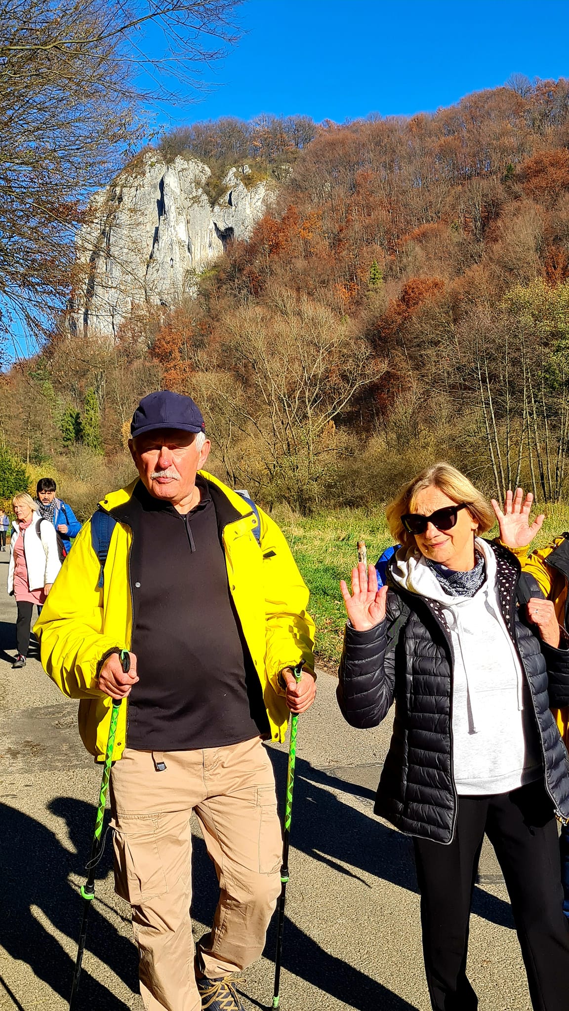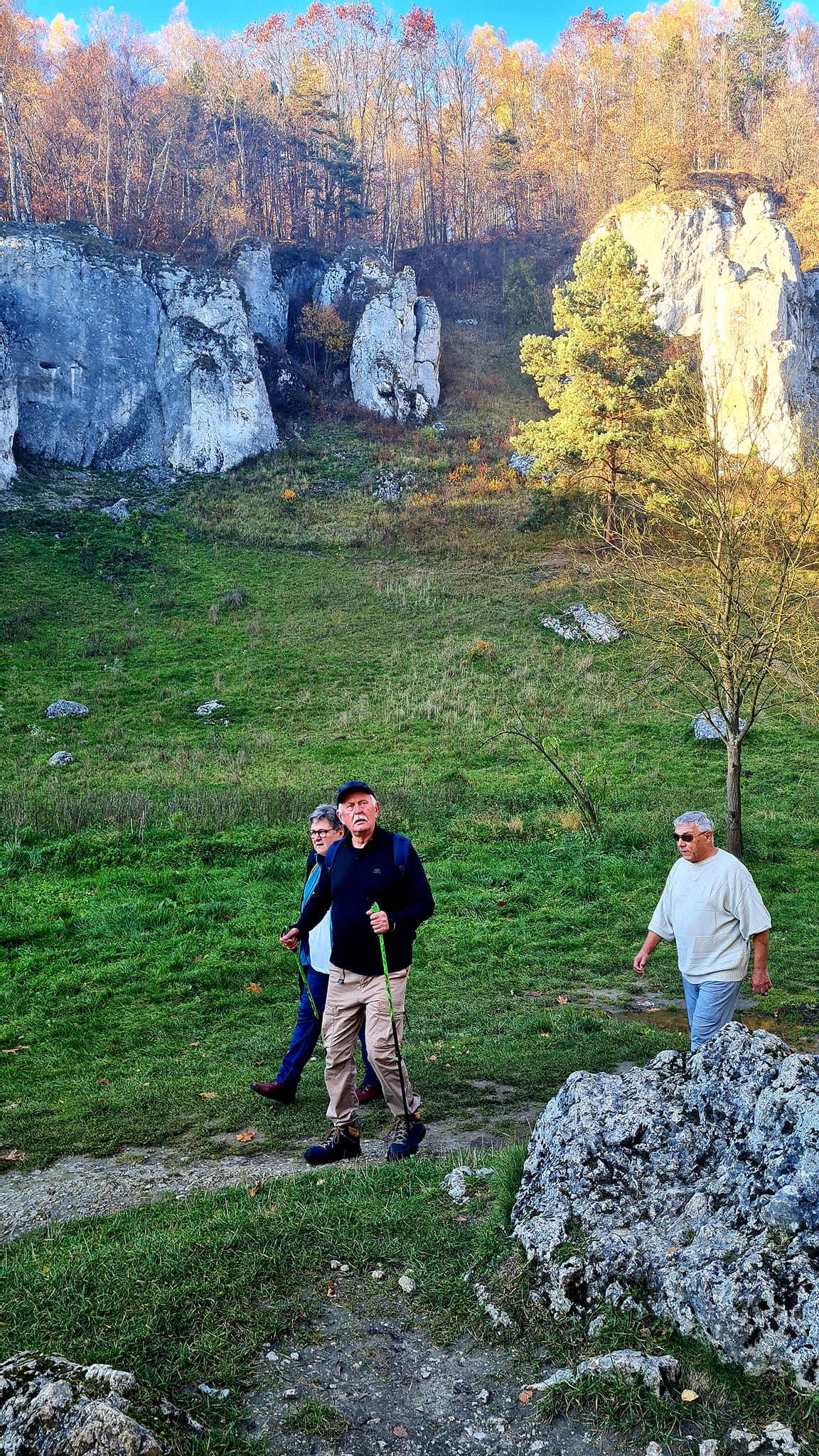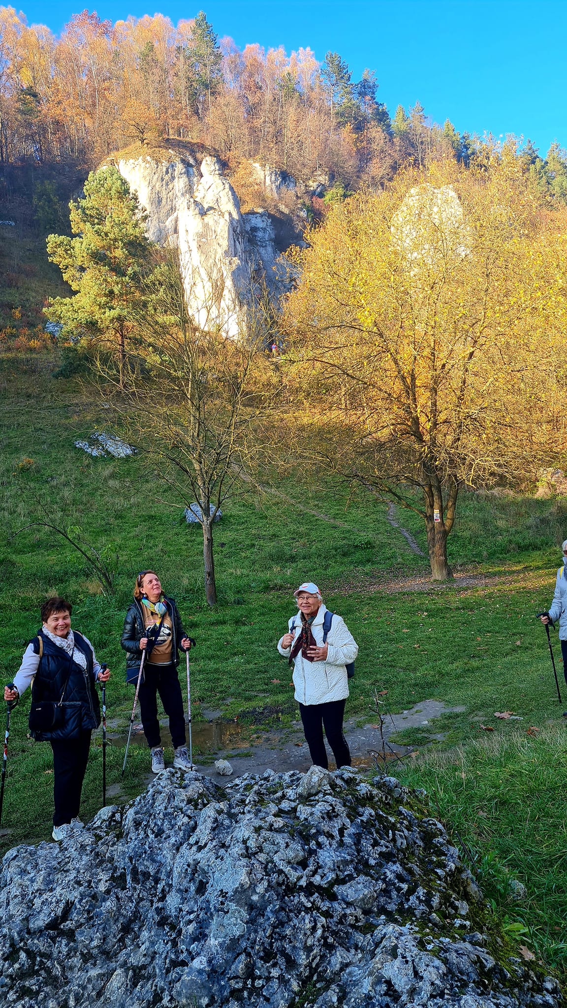 Tym razem celem wędrówki były malownicze dolinki – Będkowska, Kobylańska i Bolechowicka, które zachwycały swoim urokiem nawet o tej porze roku. Pogoda dopisała – delikatne, jesienne promienie słońca rozświetlały szlaki, a uczestnicy z radością chłonęli piękno przyrody i cieszyli się wspólnym towarzystwem. Spacer wśród wapiennych skał, szumiących potoków i kolorowych drzew był nie tylko okazją do ruchu na świeżym powietrzu, lecz także do rozmów, uśmiechów i dzielenia się pozytywną energią. Takie chwile najlepiej oddają ideę naszych wypraw – aktywnie, w naturze i w znakomitej atmosferze.