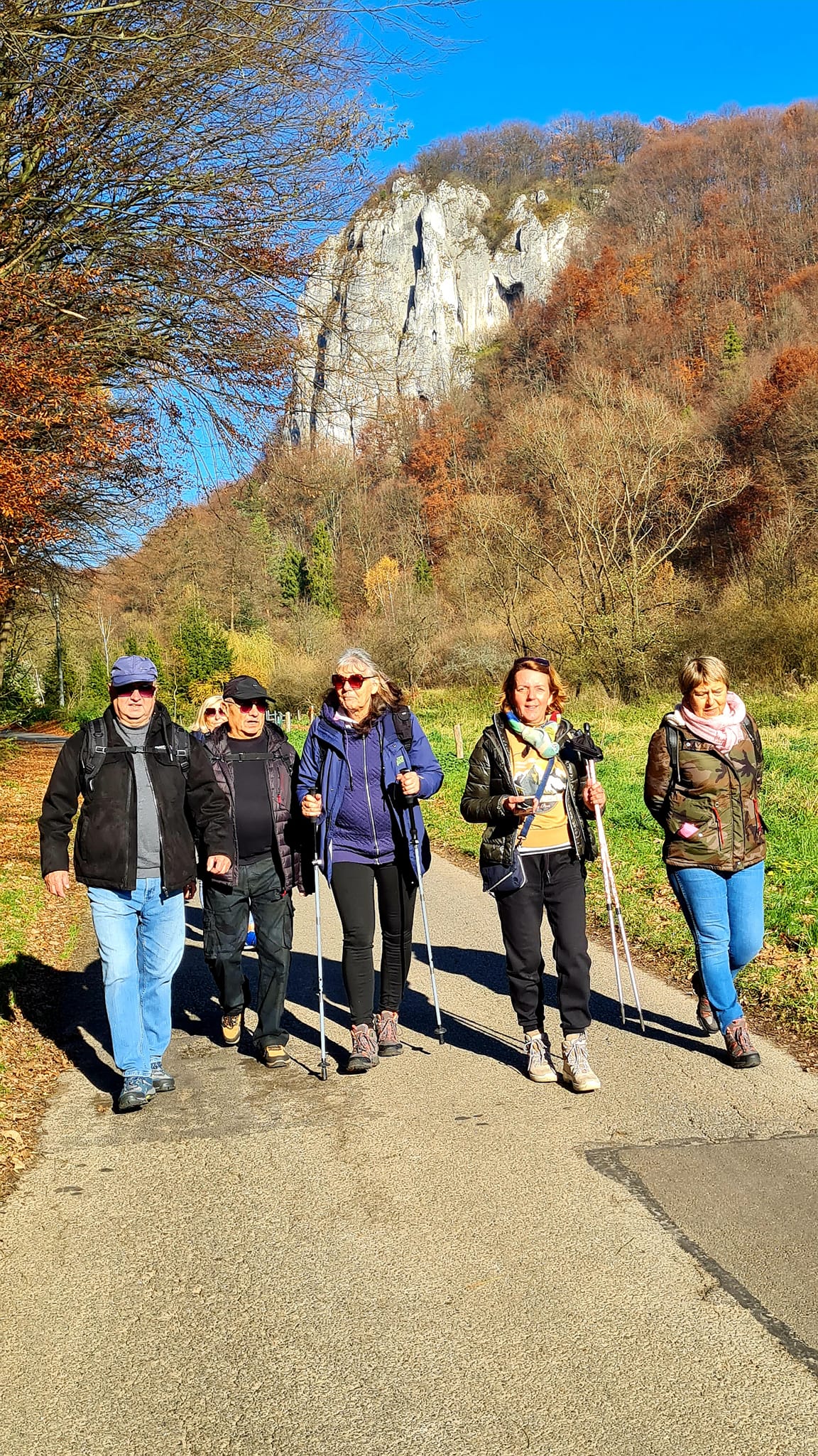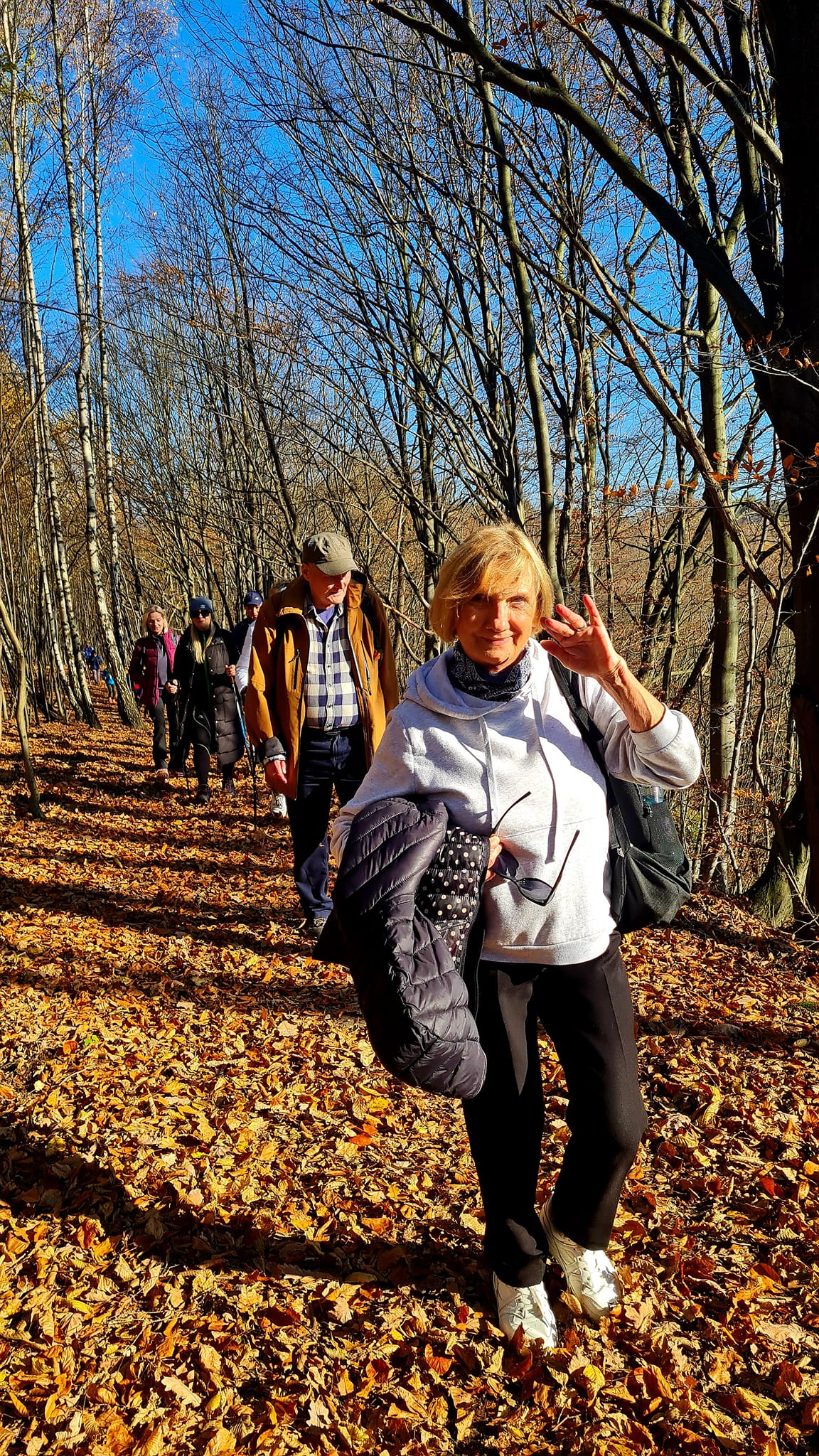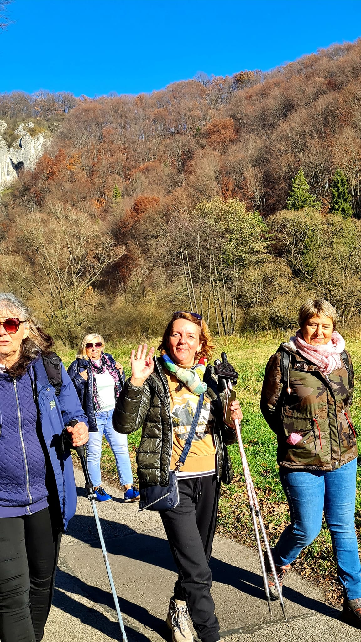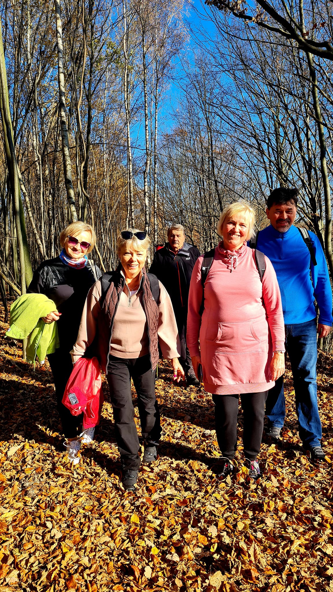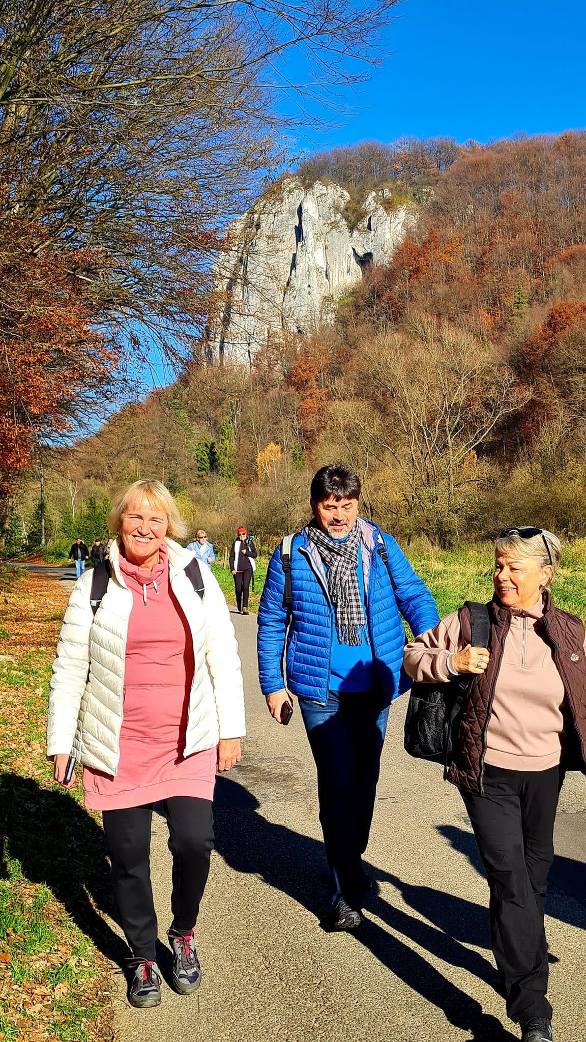 Tym razem celem wędrówki były malownicze dolinki – Będkowska, Kobylańska i Bolechowicka, które zachwycały swoim urokiem nawet o tej porze roku. Pogoda dopisała – delikatne, jesienne promienie słońca rozświetlały szlaki, a uczestnicy z radością chłonęli piękno przyrody i cieszyli się wspólnym towarzystwem. Spacer wśród wapiennych skał, szumiących potoków i kolorowych drzew był nie tylko okazją do ruchu na świeżym powietrzu, lecz także do rozmów, uśmiechów i dzielenia się pozytywną energią. Takie chwile najlepiej oddają ideę naszych wypraw – aktywnie, w naturze i w znakomitej atmosferze.