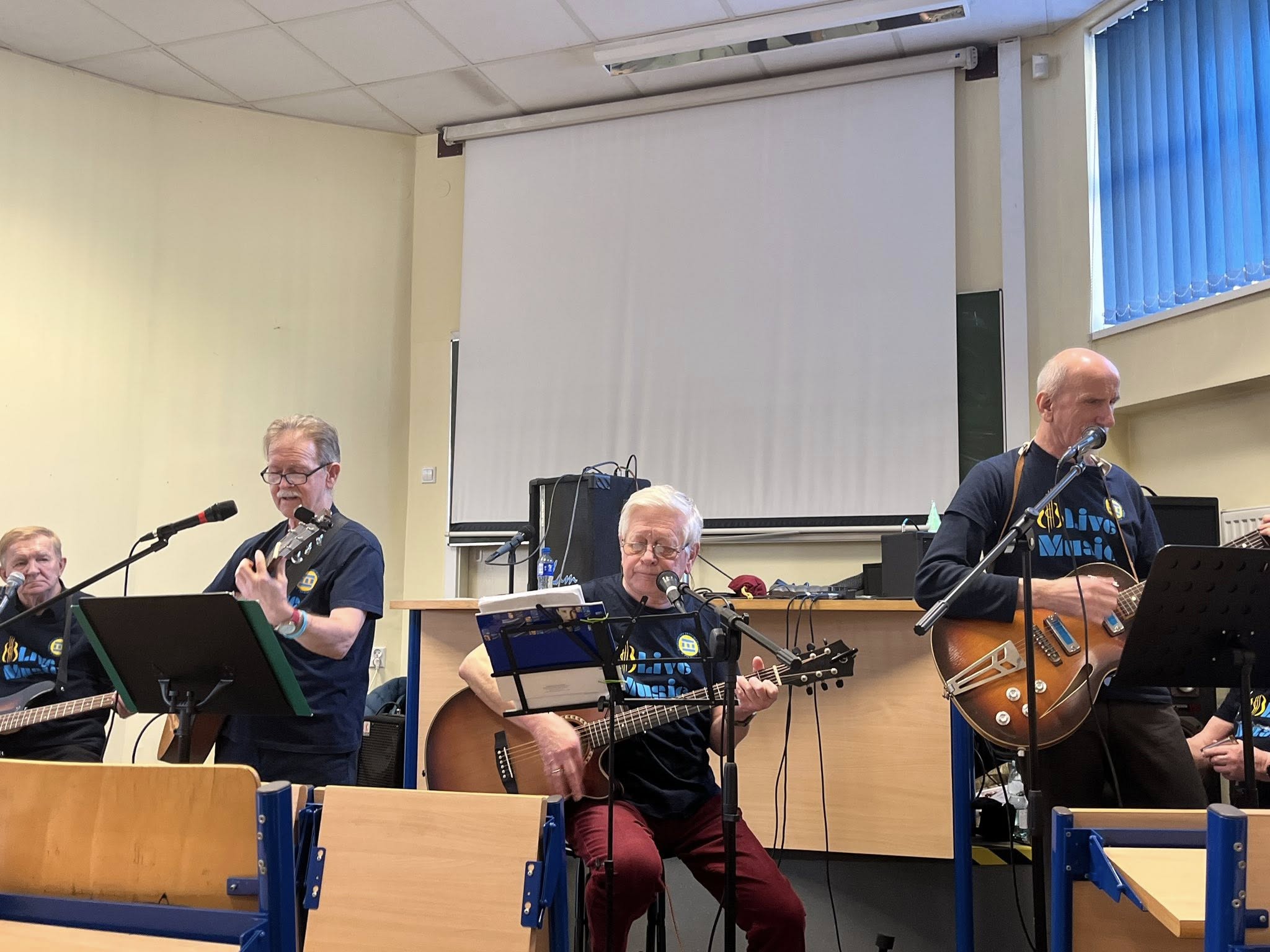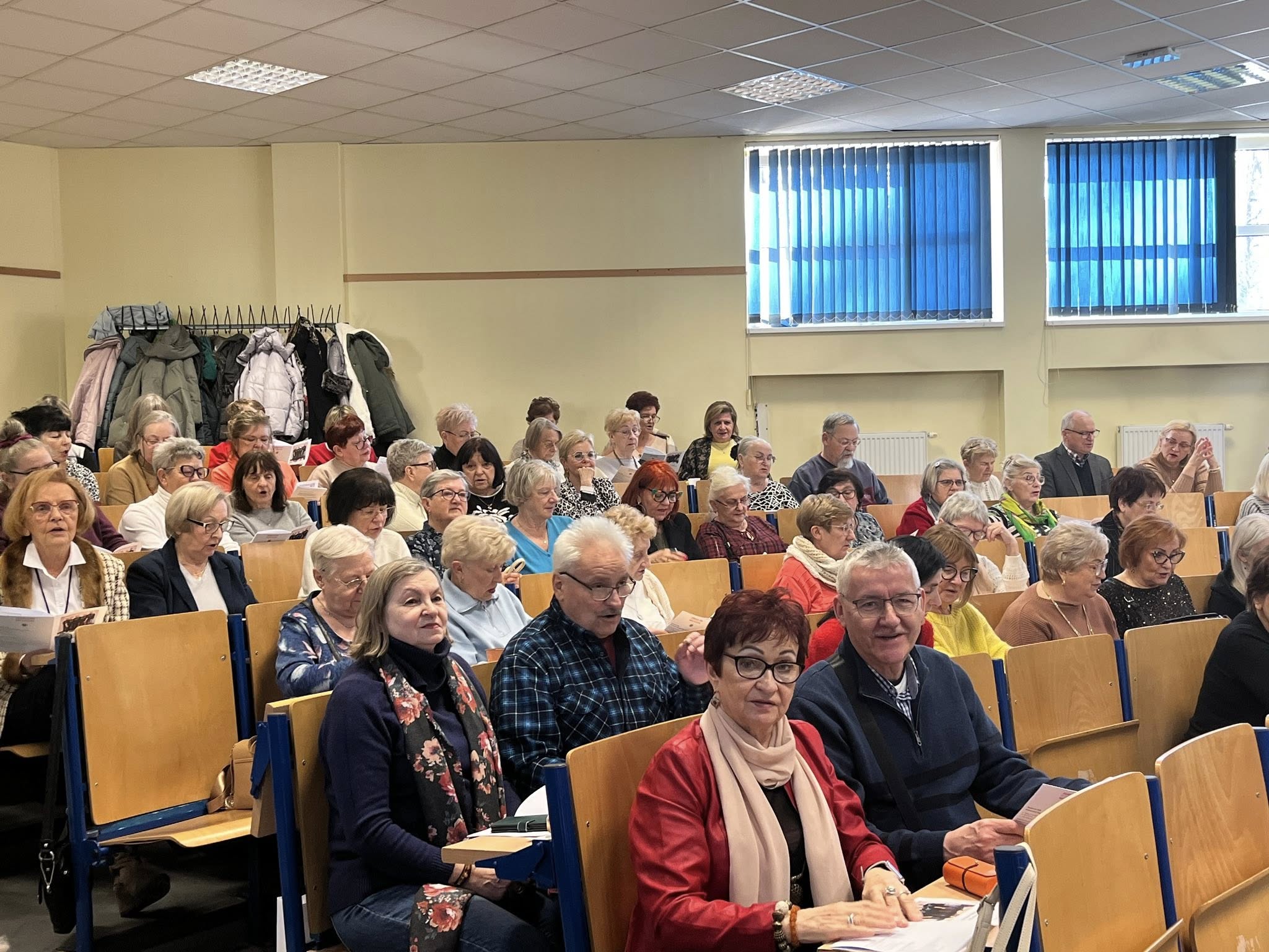 Grupa słuchaczy Uniwersytetu Trzeciego Wieku Akademii WSB wzięła udział w niezwykłej wycieczce, która rozpoczęła się w Teatrze Małym w Tychach. To właśnie tam uczestnicy mieli okazję sprawdzić swoją wrażliwość słuchową i wyobraźnię, wsłuchując się w słuchowisko Witolda Gombrowicza „Iwona, księżniczka Burgunda”, które dostarczyło wielu refleksji i artystycznych wrażeń. Kolejnym punktem programu była gościnna wizyta w Uniwersytecie Trzeciego Wieku w Tychach, gdzie wspólnie z tyskim UTW oraz zespołem Live Music uczestnicy oddali się radosnemu muzykowaniu i wspólnemu śpiewaniu, tworząc niezwykle serdeczną i pełną energii atmosferę.