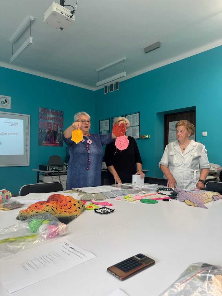 Warsztaty prowadzone będą dla kolejnych klas CKZiU w Dąbrowie Górniczej. Klub „Szydełko” UTW Akademii WSB rozpocznie także swoje spotkania od listopada 2025 roku – już dziś serdecznie zapraszamy do udziału.