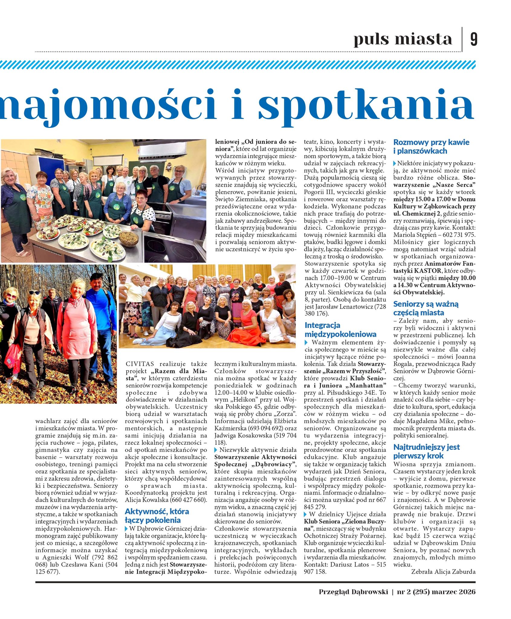 Na stronach 8 i 9 znajduje się wyjątkowy dodatek zatytułowany „Czas na nowe pasje, znajomości i spotkania”, poświęcony aktywności seniorów. W artykule zaprezentowano różnorodne grupy senioralne, w tym również Uniwersytet Trzeciego Wieku Akademii WSB. To doskonała okazja, aby przekonać się, jak wiele możliwości rozwoju, integracji oraz aktywnego spędzania wolnego czasu czeka na osoby starsze. Publikacja stanowi inspirację do podejmowania nowych wyzwań, rozwijania zainteresowań oraz budowania relacji społecznych. Serdecznie polecamy lekturę i zachęcamy do odkrywania nowych pasji.