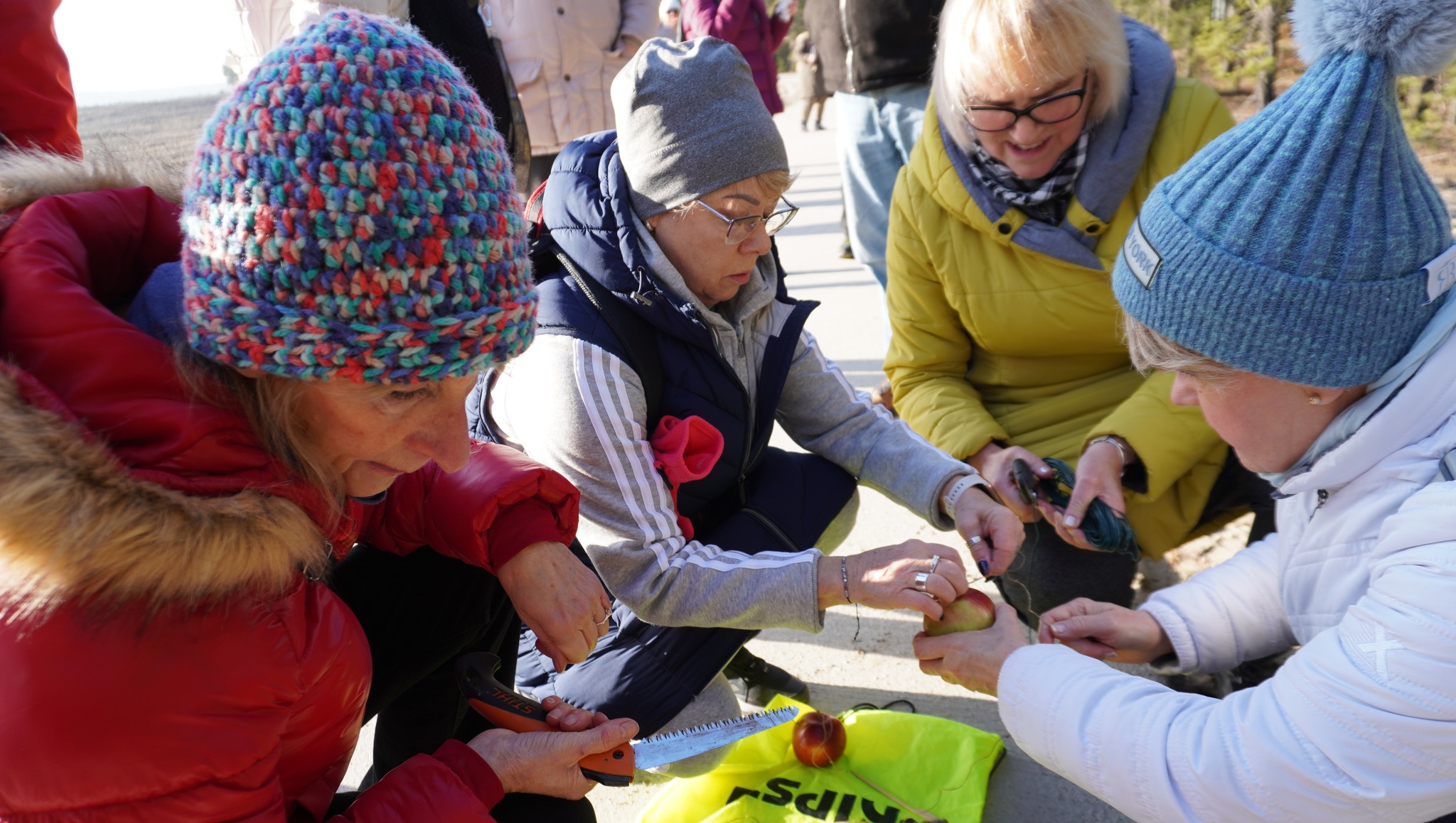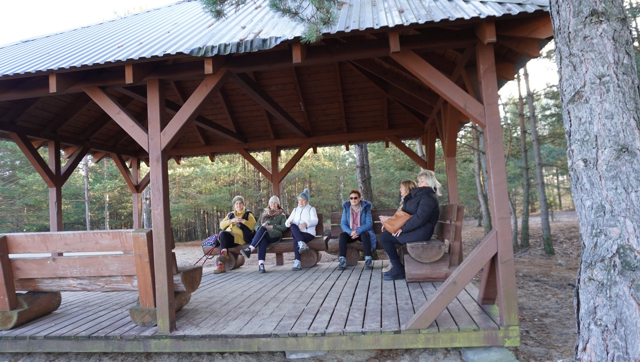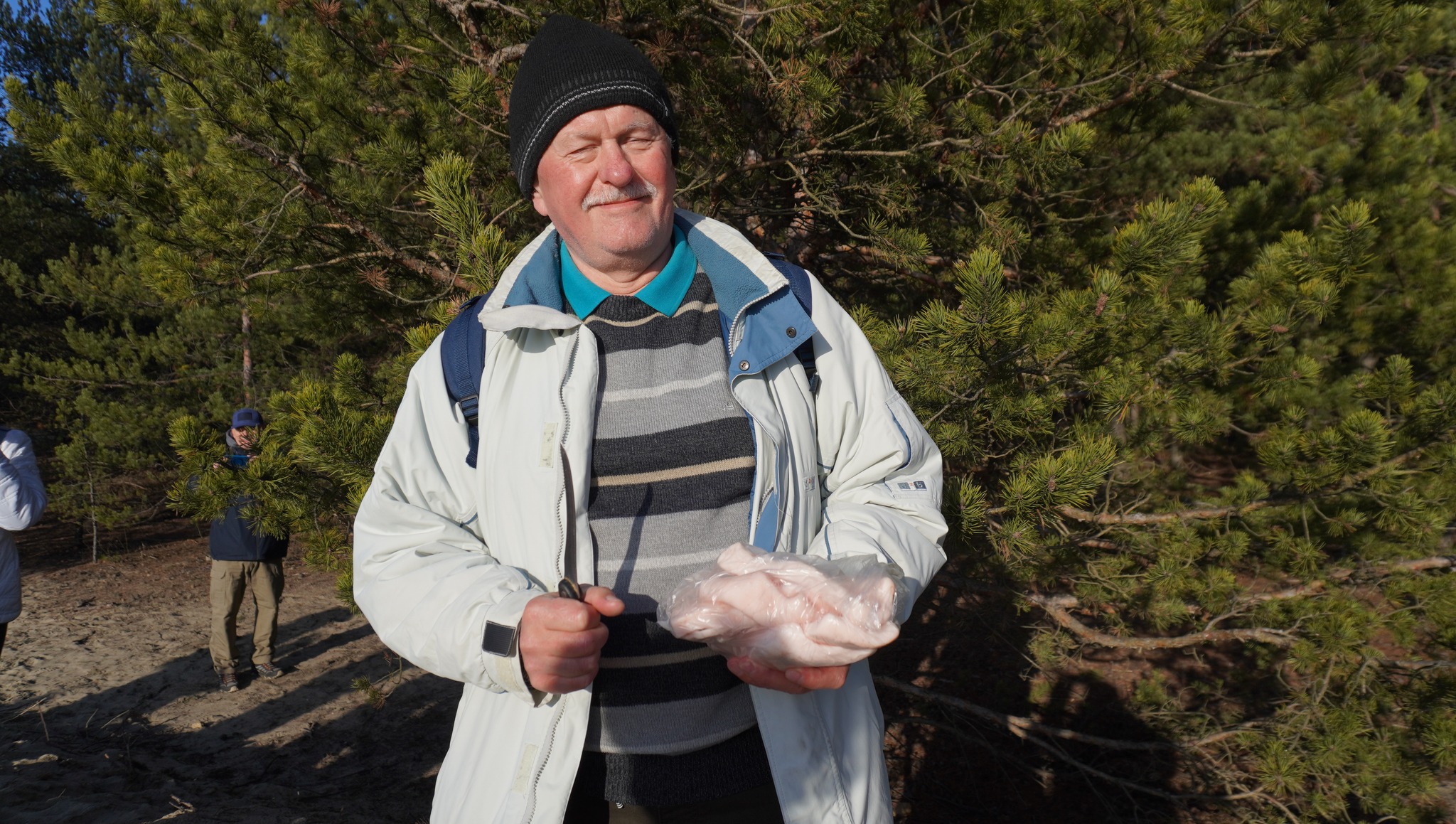 Uczestnicy mieli okazję spędzić ten szczególny czas w otoczeniu natury, w spokojnej i serdecznej atmosferze sprzyjającej rozmowom, wspomnieniom oraz integracji. Wspólny spacer po Pustyni Błędowskiej pozwolił nie tylko podziwiać zimowy krajobraz, ale również poczuć magię zbliżających się Świąt Bożego Narodzenia. Jednym z najbardziej wzruszających momentów wycieczki było wspólne ubieranie ekologicznej choinki, ozdobionej owocami i warzywami, które stanowią naturalny i bezpieczny poczęstunek dla dzikich zwierząt. Była to piękna lekcja troski o przyrodę oraz doskonały przykład, jak w prosty sposób można połączyć świąteczną tradycję z działaniami proekologicznymi. Miłym zwieńczeniem spotkania była możliwość zabrania choinki do domu, aby stała się wyjątkową, świąteczną ozdobą i pamiątką prosto z Pustyni Błędowskiej, wprowadzającą do domów ciepło, radość i świąteczną atmosferę.
