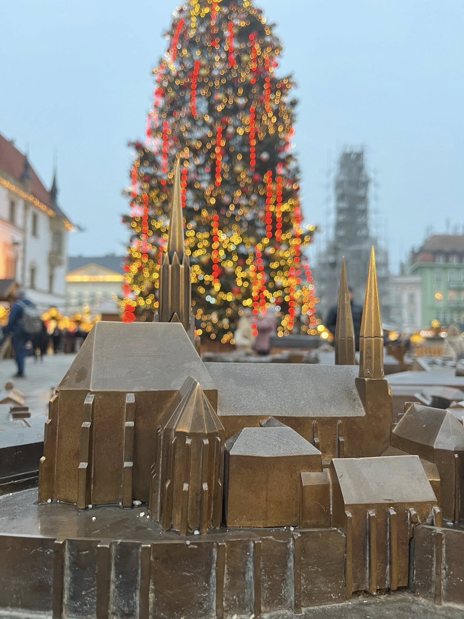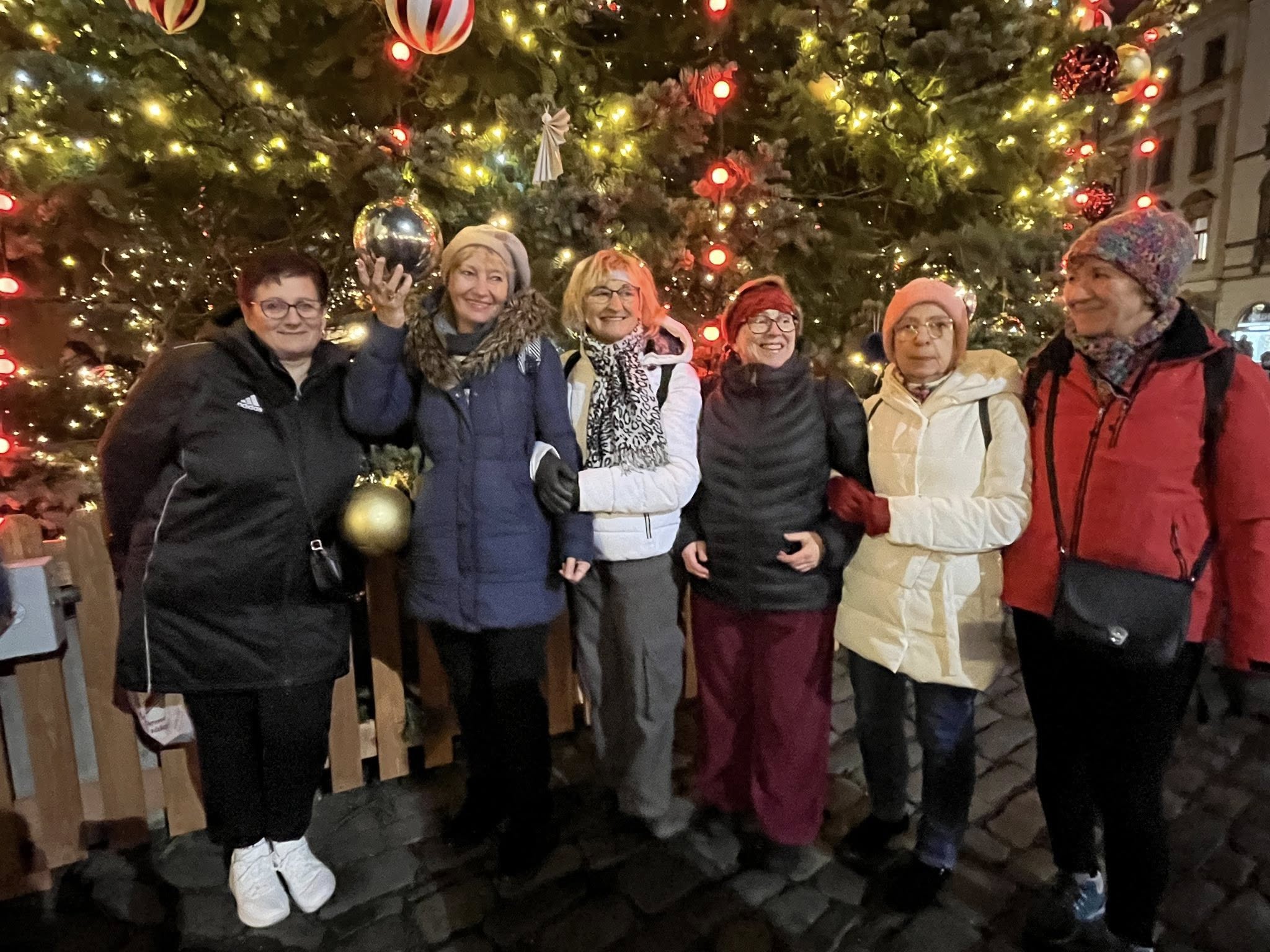 To urokliwe miasto przywitało nas niezwykłą atmosferą, pełną świątecznych dekoracji, kolorowych świateł i zapachów, które od pierwszych chwil wprowadzały w bożonarodzeniowy nastrój. Podczas spaceru po historycznym centrum, w towarzystwie naszego przewodnika Pawła Kaprala, mieliśmy okazję poznać fascynującą historię miasta, odkryć jego najcenniejsze zabytki oraz poczuć niepowtarzalny klimat starego rynku. Szczególną atrakcją okazał się Jarmark Świąteczny, tętniący życiem i wypełniony stoiskami z rękodziełem, regionalnymi przysmakami oraz aromatycznymi napojami. Nie mogło zabraknąć degustacji lokalnych specjałów – spróbowaliśmy tradycyjnych knedliczków, rozgrzewającego kremu czosnkowego, a także słynnego ołomunieckiego grzanego wina, które doskonale dopełniło zimową aurę. Ołomuniec w świątecznej odsłonie zachwycił nas swoją architekturą, barwami i niezwykle ciepłą, radosną atmosferą, sprzyjającą wspólnemu przeżywaniu tego wyjątkowego czasu. Wyjazd stał się nie tylko okazją do zwiedzania, lecz także do integracji, rozmów i wspólnego celebrowania magii nadchodzących świąt.