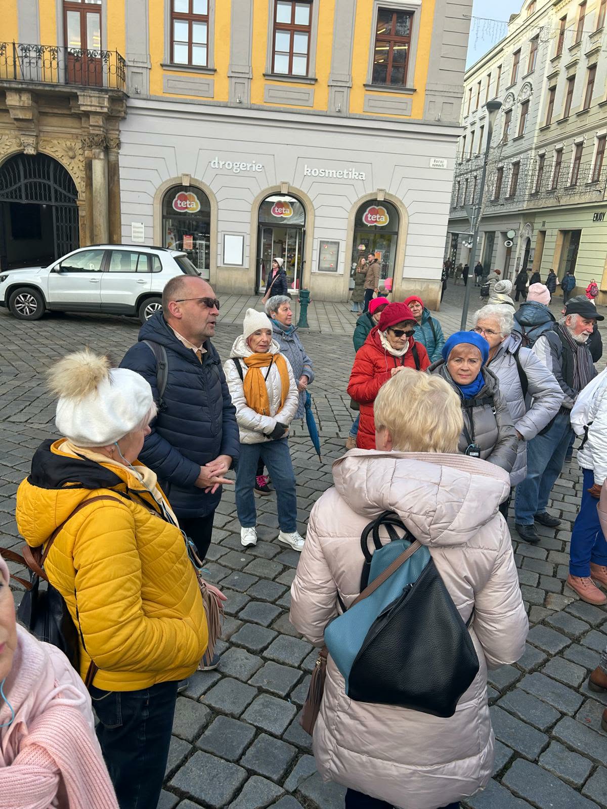 Po środowej wizycie pierwszej grupy, w czwartek, 11 grudnia druga tura słuchaczy wyruszyła do tego niezwykłego czeskiego miasta, by odkrywać jego zimowy, bożonarodzeniowy urok. Ołomuniec przywitał nas świąteczną atmosferą, migoczącymi dekoracjami i zapachem przypraw unoszącym się nad jarmarkiem bożonarodzeniowym, który stał się sercem zimowych spotkań. Spacerując urokliwymi uliczkami zabytkowego starego miasta, w towarzystwie przewodnika Pawła Kaprala, uczestnicy mieli okazję poznać historię i wyjątkowy klimat tego miejsca, podziwiając architekturę, place i zabytki. Ważnym elementem wyprawy były również lokalne smaki, które doskonale dopełniły świąteczne wrażenia – tradycyjne knedliczki, aromatyczny krem czosnkowy oraz słynne ołomunieckie grzane wino skutecznie rozgrzewały w chłodny, zimowy dzień.