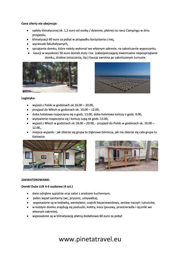 Wczasy organizowane przez Biuro Podróży Pineta Travel Mariusz Guzik ul. Dąbrowskiego 11B, 41-300 Dąbrowa Górnicza tel. 505 101 270, 603 473 885, e-mail: pinetatravel@onet.eu www.pinetatravel.eu