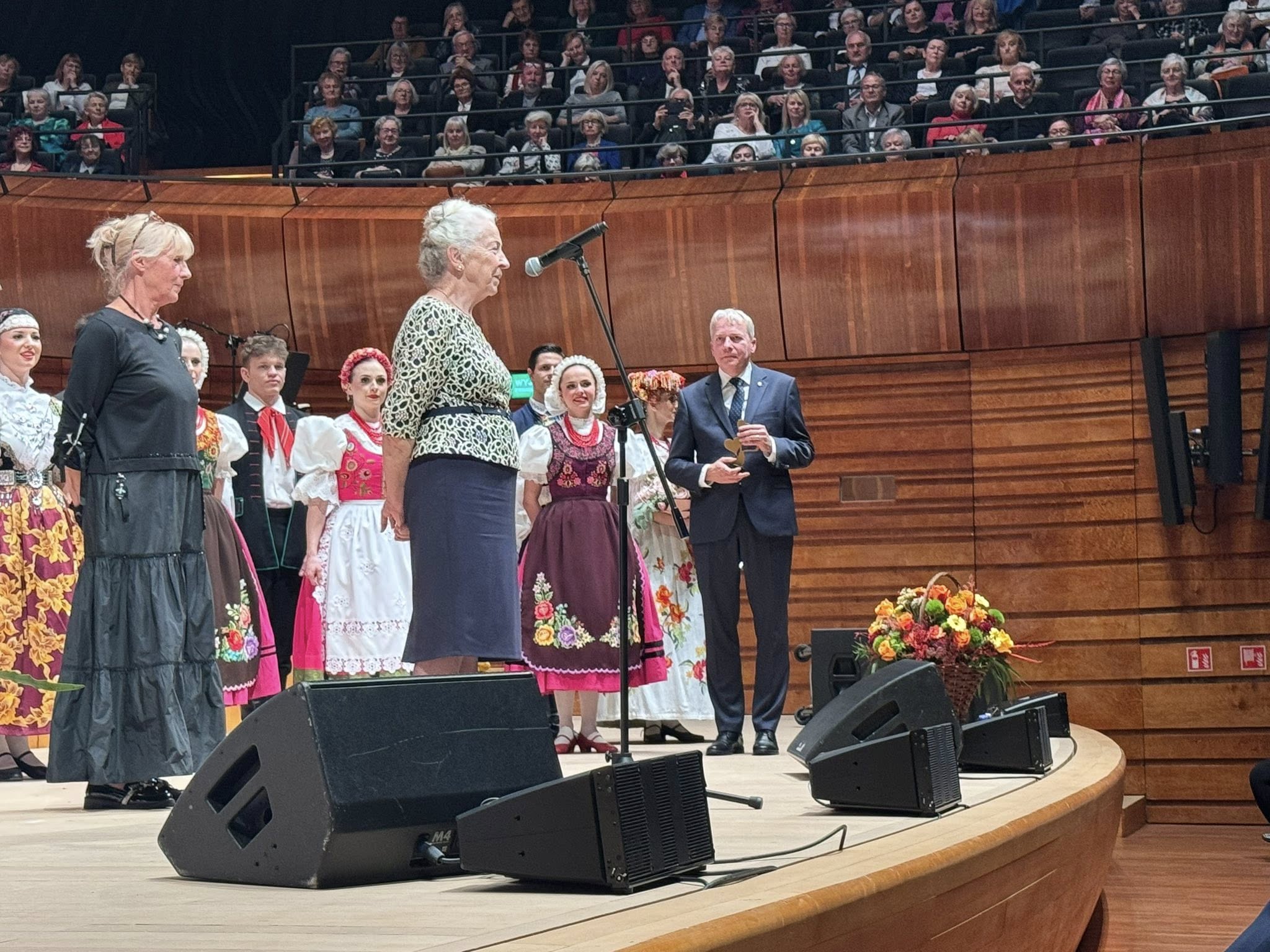 Podczas gali słuchacze UTW Akademii WSB z dumą reprezentowali naszą uczelnię, podkreślając znaczenie idei edukacji i aktywności osób starszych, które od lat stanowią fundament działalności Uniwersytetów Trzeciego Wieku. Uroczystość była pełna wzruszeń, wspomnień i radości, a jej kulminacyjnym punktem był wspaniały koncert Zespołu Pieśni i Tańca „Śląsk”. Występ artystów zachwycił publiczność rozmachem, profesjonalizmem i niezwykłą energią, tworząc niepowtarzalny klimat wspólnego świętowania.