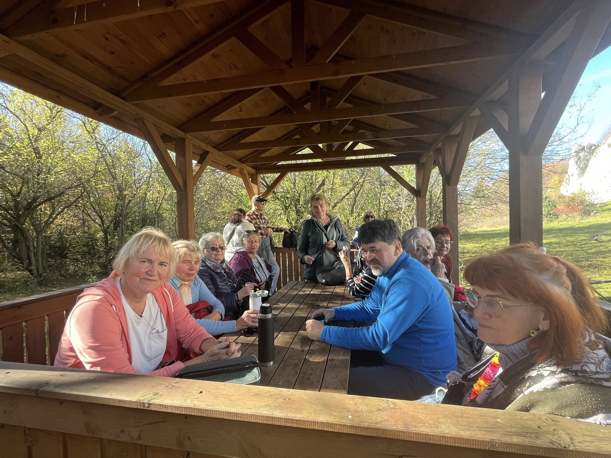W czwartek, 23.10 uczestnicy UTW wyruszyli na rajd "Przywitanie Jesieni", który odbył się w malowniczej scenerii Jury Krakowsko-Częstochowskiej. Wspaniała atmosfera, piękne widoki i mnóstwo pozytywnej energii – tak właśnie słuchacze Uniwersytetu Trzeciego Wieku Akademii WSB z Dąbrowy Górniczej powitali tegoroczną jesień. Pogoda dopisała – jesienne słońce rozświetlało kolorowe lasy, a każdy krok pośród szeleszczących liści przypominał, jak niezwykła potrafi być ta pora roku. Wędrowaliśmy wzdłuż Skałek Rzędkowickich i przez jurajskie lasy, podziwiając uroki natury oraz wspólnie ciesząc się rozmową i towarzystwem. Finałem naszej wyprawy było spotkanie w Ośrodku Wypoczynkowym Orle Gniazdo w Hucisku, gdzie czekały na nas pyszne, tradycyjne pieczonki. Rajd zakończyliśmy radosną potańcówką, którą poprowadził nasz słuchacz Zbigniew Nabiałek. Z całego serca dziękujemy również Zbigniewowi Łukasikowi za przygotowanie programu rajdu i przewodnictwo podczas wyprawy. To był dzień pełen uśmiechów, rozmów i wspólnego odkrywania piękna jesieni. Dziękujemy wszystkim uczestnikom za obecność, dobrą energię i cudowną atmosferę. Do zobaczenia na kolejnych wyprawach Uniwersytetu Trzeciego Wieku Akademii WSB!