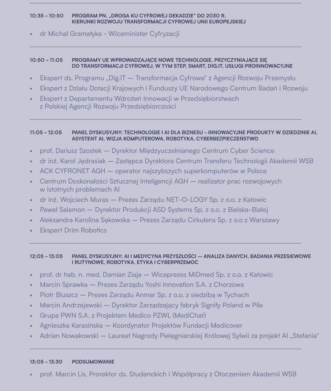 Wydarzenie będzie wyjątkową okazją do spotkania przedstawicieli nauki, biznesu i sektora medycznego, a jego celem jest wymiana doświadczeń oraz prezentacja praktycznych aspektów wdrażania sztucznej inteligencji i nowoczesnych technologii w gospodarce i ochronie zdrowia.